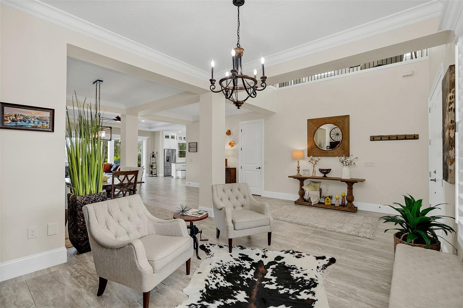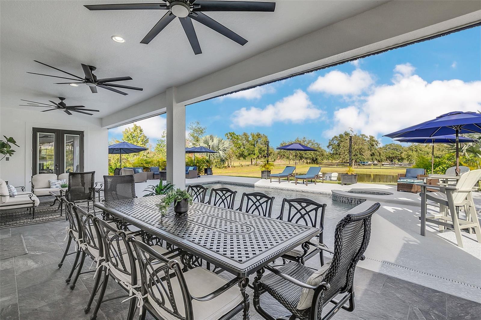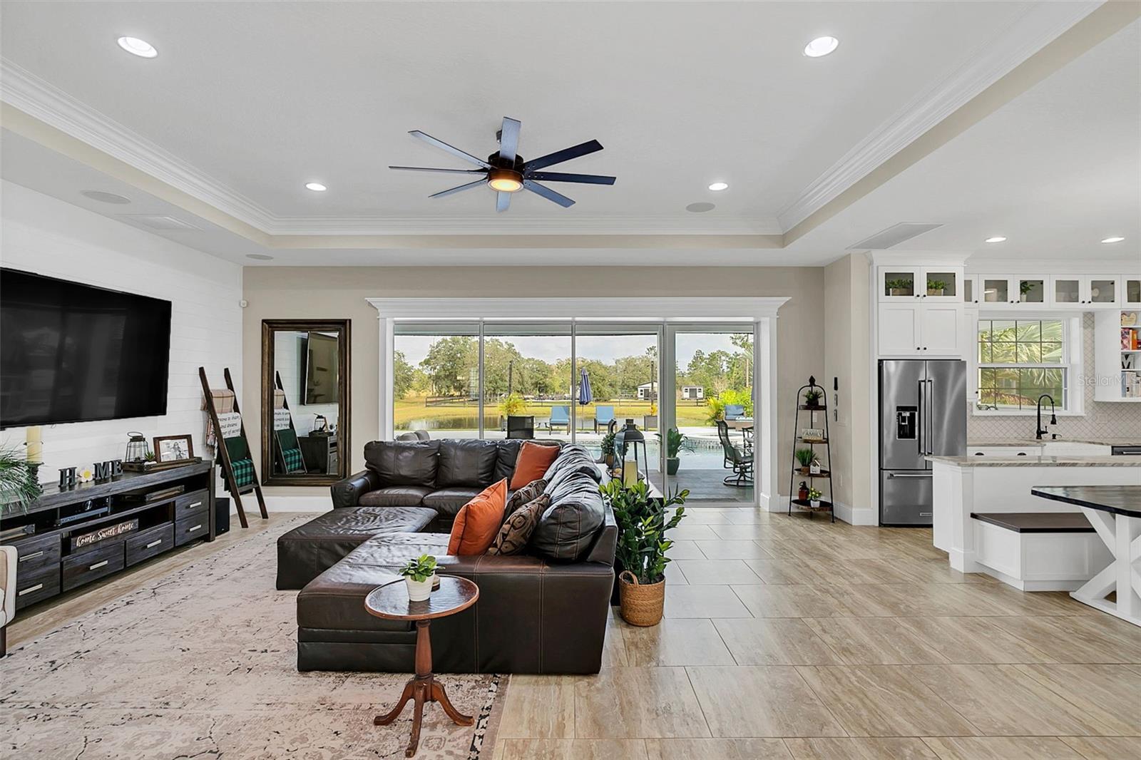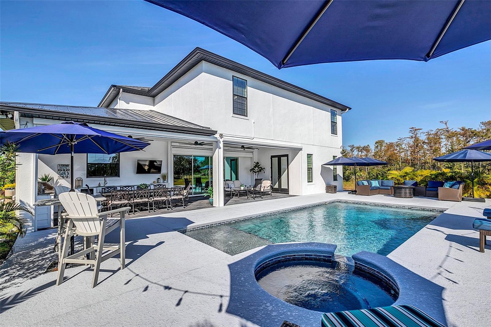 ***Crédito de credor de até $ 38.000 para cobrir os custos de fechamento do comprador se usar nosso credor preferencial!*** Esta requintada casa de fazenda moderna de 6 quartos e 4,5 banheiros fica em quase 2,5 acres de terra alta e seca com seu próprio lago! A propriedade é fechada com uma entrada estendida e possui amplas varandas frontais e traseiras, perfeitas para ver o nascer e o pôr do sol. Telas automáticas em ambas as varandas garantem conforto o ano todo. Ao entrar, você é recebido por belas portas duplas que levam a um espaço luxuoso e aberto, bem equipado para entretenimento. O andar de baixo possui uma área de estar frontal, sala de estar formal, suíte MIL ou home office com banheiro privativo, sala de jantar formal, sala de estar generosa, cozinha dos sonhos do chef com despensa, área de serviço, mudroom, lavabo e uma suíte primária digna de retiro. A suíte principal possui tetos retangulares, persianas automáticas personalizadas, paredes à prova de som e entrada privativa para a varanda. O banheiro tipo spa com vários chuveiros (incluindo chuveiro de efeito chuva) e armários customizados, equipados com central de segurança e vaporizador de roupas, agregam luxo ao espaço. A cozinha do chef possui muito espaço no balcão, armários, uma grande pia de fazenda, enchedora de panelas, adega refrigerada, despensa de mordomo com pia de vegetais e uma geladeira grande adicional. Lembrando-nos que a cozinha é o coração da casa, os assentos em estilo café criam uma atmosfera convidativa para refeições casuais ou jogos de tabuleiro. A área de serviço foi cuidadosamente projetada com pia, armários e lavabo para manter sapatos e mochilas fora da vista. Enormes portas de vidro deslizantes de 4 painéis ficam completamente atrás da parede da sala de estar, trazendo o ar livre para dentro e duplicando o espaço de entretenimento. Uma sala segura maximiza sua segurança e está disponível para visualização durante sua exibição privada. No andar de cima, uma área de estar privativa no loft, centro de jogos ou área de bilhar, home theater, home office ou academia, quatro quartos de tamanho generoso com closets (armários embutidos duplos no quarto 5), duas áreas de estudo com mesas embutidas e dois banheiros completos, e uma lavanderia adicional oferecem amplo espaço para viver e se divertir. Cinema impressionante com assentos escalonados, alto-falantes embutidos e iluminação que elevam as noites de cinema a um nível totalmente novo. A varanda tem vista para a piscina de água salgada, spa e lago privativo e possui telas automáticas na porta deslizante e na parte de trás da varanda. As comodidades adicionais incluem uma cozinha externa com churrasqueira, geladeira, máquina de fazer gelo e pia. Um curral equipado com eletricidade e água fica atrás de uma cerca separada. Pode ser facilmente convertido em um celeiro para cavalos com afluência e pasto. Estruturas adicionais incluem um galpão de armazenamento com eletricidade e um galpão menor para equipamentos de gramado. Com muito espaço para mais arrumação, estacionamento e até uma casa de hóspedes separada, esta propriedade oferece uma combinação perfeita de luxo e funcionalidade. Perfeitamente situada entre o Aeroporto Internacional de Orlando e Porto Canaveral, esta comunidade de golfe e hipismo oferece parques, trilhas, um campo de golfe de 18 buracos, calçadas e uma escola com classificação A! Não perca a oportunidade de fazer desta joia o seu novo lar doce lar!