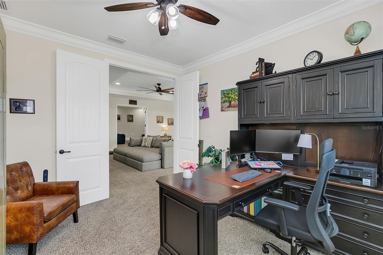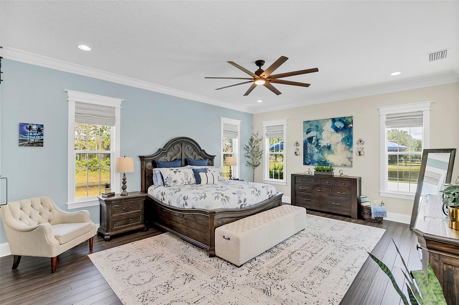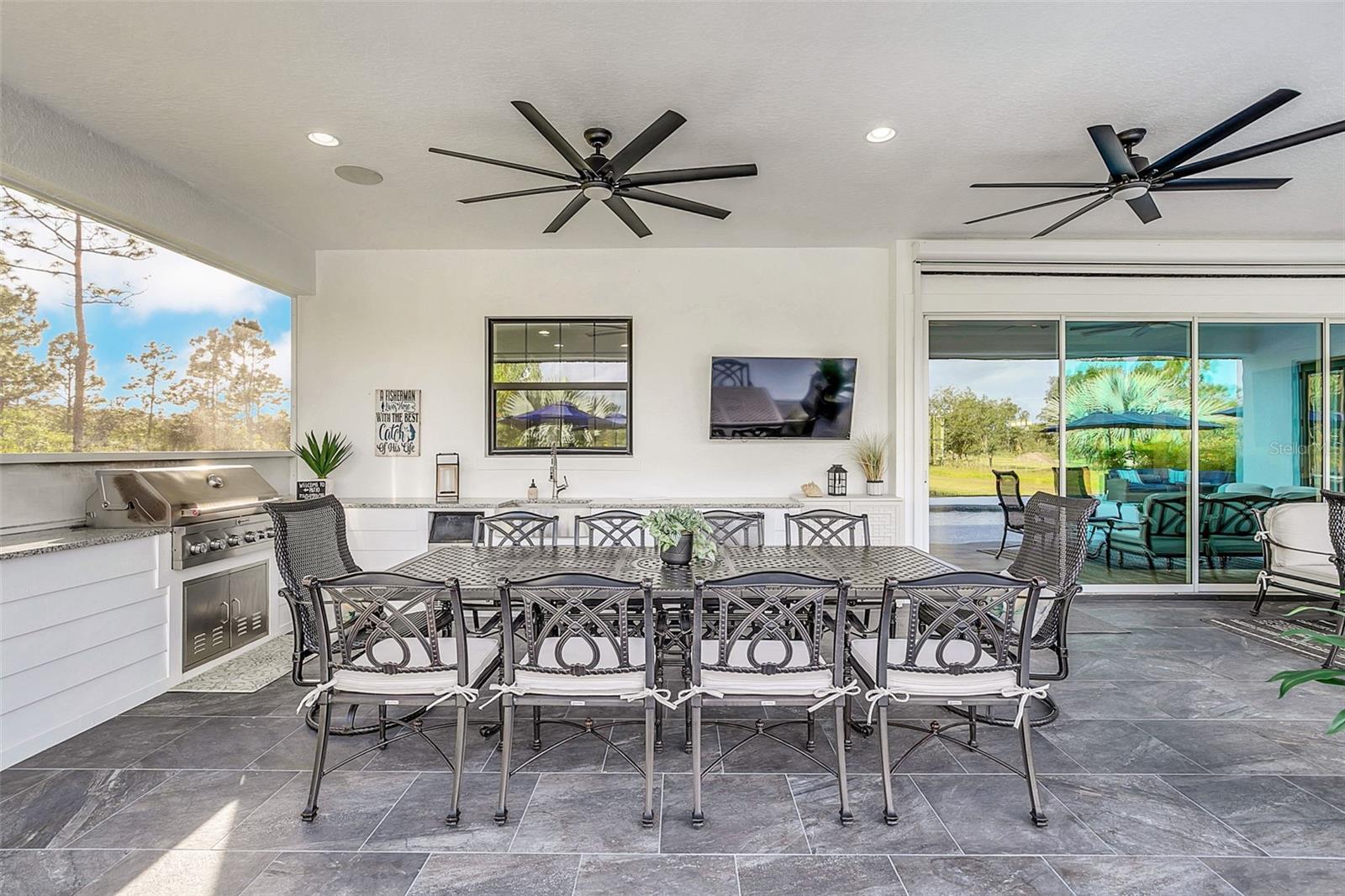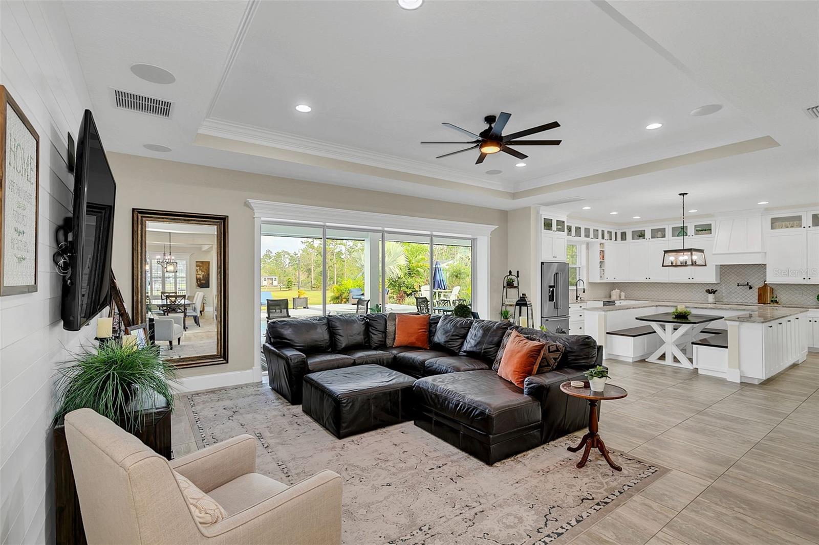 ***Crédito de credor de até $ 38.000 para cobrir os custos de fechamento do comprador se usar nosso credor preferencial!*** Esta requintada casa de fazenda moderna de 6 quartos e 4,5 banheiros fica em quase 2,5 acres de terra alta e seca com seu próprio lago! A propriedade é fechada com uma entrada estendida e possui amplas varandas frontais e traseiras, perfeitas para ver o nascer e o pôr do sol. Telas automáticas em ambas as varandas garantem conforto o ano todo. Ao entrar, você é recebido por belas portas duplas que levam a um espaço luxuoso e aberto, bem equipado para entretenimento. O andar de baixo possui uma área de estar frontal, sala de estar formal, suíte MIL ou home office com banheiro privativo, sala de jantar formal, sala de estar generosa, cozinha dos sonhos do chef com despensa, área de serviço, mudroom, lavabo e uma suíte primária digna de retiro. A suíte principal possui tetos retangulares, persianas automáticas personalizadas, paredes à prova de som e entrada privativa para a varanda. O banheiro tipo spa com vários chuveiros (incluindo chuveiro de efeito chuva) e armários customizados, equipados com central de segurança e vaporizador de roupas, agregam luxo ao espaço. A cozinha do chef possui muito espaço no balcão, armários, uma grande pia de fazenda, enchedora de panelas, adega refrigerada, despensa de mordomo com pia de vegetais e uma geladeira grande adicional. Lembrando-nos que a cozinha é o coração da casa, os assentos em estilo café criam uma atmosfera convidativa para refeições casuais ou jogos de tabuleiro. A área de serviço foi cuidadosamente projetada com pia, armários e lavabo para manter sapatos e mochilas fora da vista. Enormes portas de vidro deslizantes de 4 painéis ficam completamente atrás da parede da sala de estar, trazendo o ar livre para dentro e duplicando o espaço de entretenimento. Uma sala segura maximiza sua segurança e está disponível para visualização durante sua exibição privada. No andar de cima, uma área de estar privativa no loft, centro de jogos ou área de bilhar, home theater, home office ou academia, quatro quartos de tamanho generoso com closets (armários embutidos duplos no quarto 5), duas áreas de estudo com mesas embutidas e dois banheiros completos, e uma lavanderia adicional oferecem amplo espaço para viver e se divertir. Cinema impressionante com assentos escalonados, alto-falantes embutidos e iluminação que elevam as noites de cinema a um nível totalmente novo. A varanda tem vista para a piscina de água salgada, spa e lago privativo e possui telas automáticas na porta deslizante e na parte de trás da varanda. As comodidades adicionais incluem uma cozinha externa com churrasqueira, geladeira, máquina de fazer gelo e pia. Um curral equipado com eletricidade e água fica atrás de uma cerca separada. Pode ser facilmente convertido em um celeiro para cavalos com afluência e pasto. Estruturas adicionais incluem um galpão de armazenamento com eletricidade e um galpão menor para equipamentos de gramado. Com muito espaço para mais arrumação, estacionamento e até uma casa de hóspedes separada, esta propriedade oferece uma combinação perfeita de luxo e funcionalidade. Perfeitamente situada entre o Aeroporto Internacional de Orlando e Porto Canaveral, esta comunidade de golfe e hipismo oferece parques, trilhas, um campo de golfe de 18 buracos, calçadas e uma escola com classificação A! Não perca a oportunidade de fazer desta joia o seu novo lar doce lar!