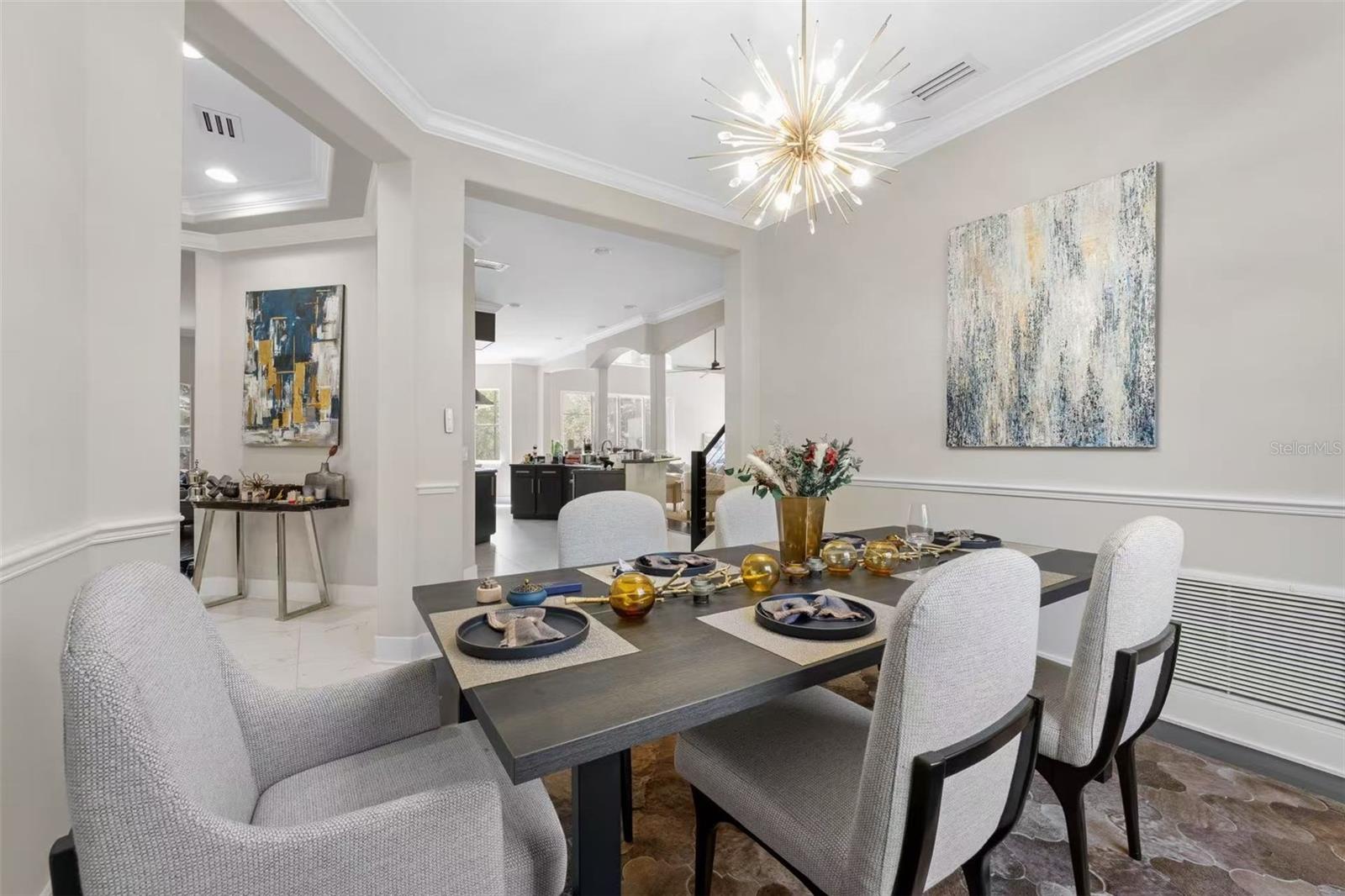 Prepare-se para se surpreender com esta propriedade primorosamente renovada, situada no exclusivo condomínio fechado de Palm Lake, que possui apenas 39 residências de luxo na cobiçada área de Dr. Phillips. Esta casa com piscina de 5 quartos e 5,5 banheiros “pronta para morar” e uma espaçosa sala de bônus oferece uma experiência de vida incomparável que certamente impressionará. Meticulosamente atualizada pelos proprietários originais, esta casa combina elegância atemporal com decoração inspirada em Calabasas, criando uma atmosfera encantadora e acolhedora. A partir do momento em que você chega, a impressionante atratividade do meio-fio, o paisagismo exuberante e a entrada meticulosamente pavimentada irão cativá-lo. Entre no grande hall de entrada, onde o piso luxuoso e um lustre de design dão o tom para toda a casa. O layout aberto guia você perfeitamente até a sala de estar formal, que oferece vistas panorâmicas da piscina cintilante. Um home office privativo e uma sala de jantar de tamanho generoso, ambos com lustres requintados, apresentam espaços ideais para trabalho e entretenimento. A cozinha gourmet é o sonho de qualquer chef, com eletrodomésticos KitchenAid de última geração, incluindo forno de convecção dupla, fogão de indução e máquina de fazer gelo - perfeita para preparar refeições para família e amigos. A sala familiar adjacente é banhada por luz natural, graças às grandes janelas de popa que inundam o espaço com calor e charme. A suíte master, convenientemente localizada no primeiro andar para maior privacidade, é um retiro sereno. Inclui armários duplos e uma luxuosa banheira inspirada em spa, completa com um lustre elegante, pias duplas, box amplo e uma bela banheira de imersão. No andar de cima, uma aconchegante área de loft leva a uma grande sala de bônus, pré-cabeada para o melhor sistema de som surround e projeção - perfeita para noites de cinema ou dias de jogos. O segundo andar também possui quatro quartos de tamanhos generosos e banheiros lindamente decorados, oferecendo amplo espaço para familiares e convidados. A área de estar ao ar livre é um paraíso para o entretenimento, com uma grande piscina estilo resort com tela fechada, cascata e uma área de estar convidativa. a casa está equipada com um sistema de termostato Nest, cabo com fio Cat-5-E e pontos de acesso, Ring Video Doorbell, câmeras de segurança e uma bomba de piscina 2020 - garantindo conforto e segurança. Esta casa é verdadeiramente uma obra-prima de design e funcionalidade, oferecendo o que há de melhor em termos de luxo.