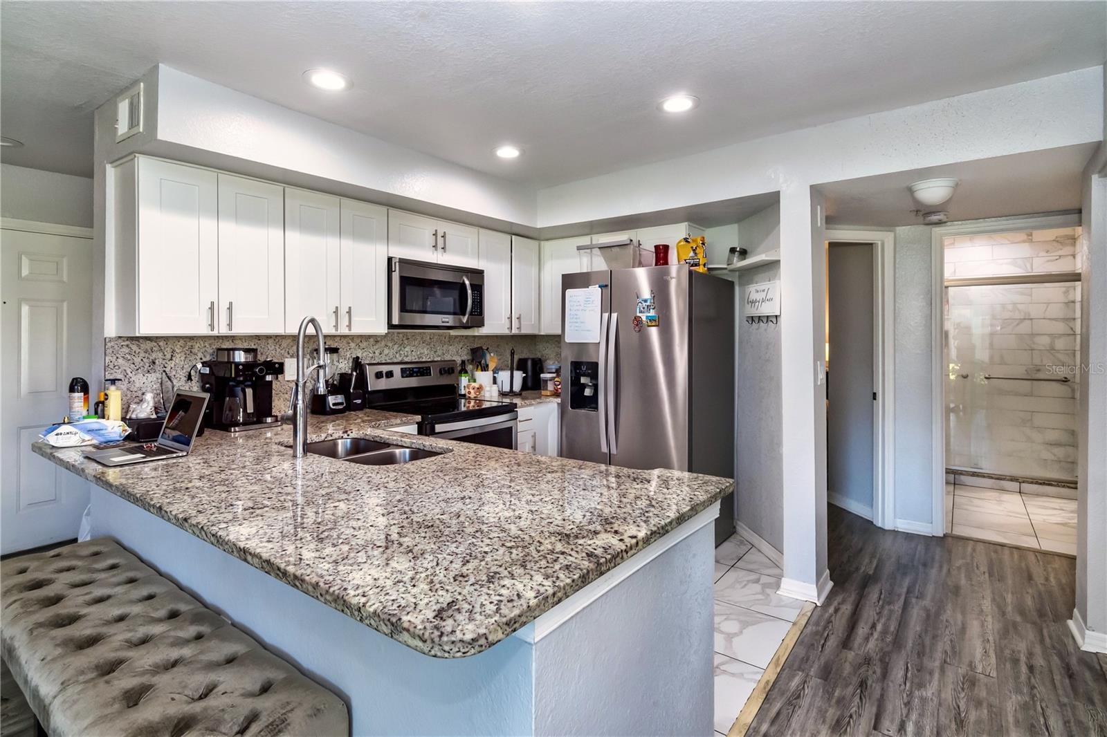 Excelente valor nesta residência de 2 BR em Bermuda Dunes, um condomínio situado ao lado do campo de golfe MetroWest. Atualizado e pronto para morar! O layout apresenta espaço de estar comum aberto e planta de quarto dividido. A sala de estar é um ótimo espaço de reunião e possui estantes embutidas – perfeitas para sua decoração ou eletrônicos. A cozinha contemporânea possui armários modernos com painel elevado em tom branco, balcões de granito, balcão para café da manhã e copa. Eletrodomésticos incluídos. Planta de quarto dividido com suíte principal nos fundos. Banheiro atualizado com (dois pontos de entrada) inclui chuveiro com azulejos atraentes e pias divididas com bancadas em granito. Você apreciará que ambos os quartos têm closets. Outras conveniências incluem: (1) lavanderia interna e (2) GARAGEM – ótima para proteção de veículos e armazenamento extra. Nos fundos, você tem uma varanda coberta com vista para um espaço verde considerável com muitas árvores frondosas - um local tranquilo para relaxar ou jantar casual. Bermuda Dunes é um condomínio fechado e seguro com uma ótima variedade de comodidades – clube atraente com academia e piscina estilo resort, tênis e muito mais! Ótima localização – locais essenciais para compras e restaurantes ficam a menos de 3 km, e Universal Studios, I4 e a rodovia ficam a apenas 15 minutos de distância. Você vai adorar morar aqui. Venha ver tudo o que torna esta casa tão especial!