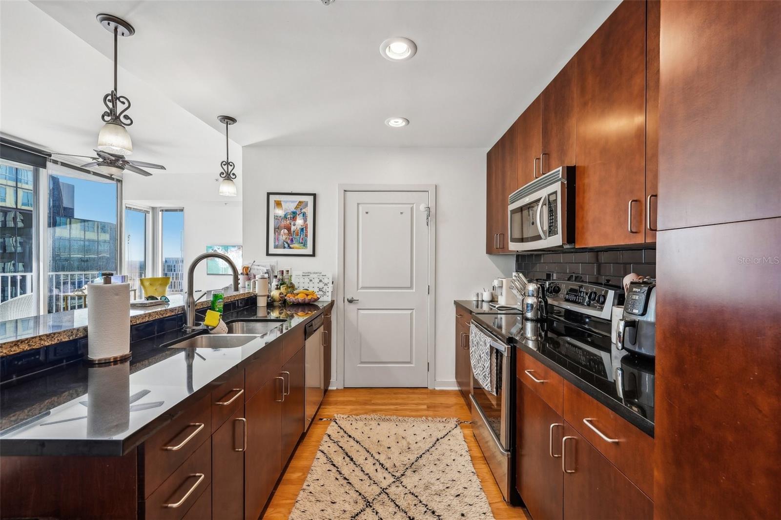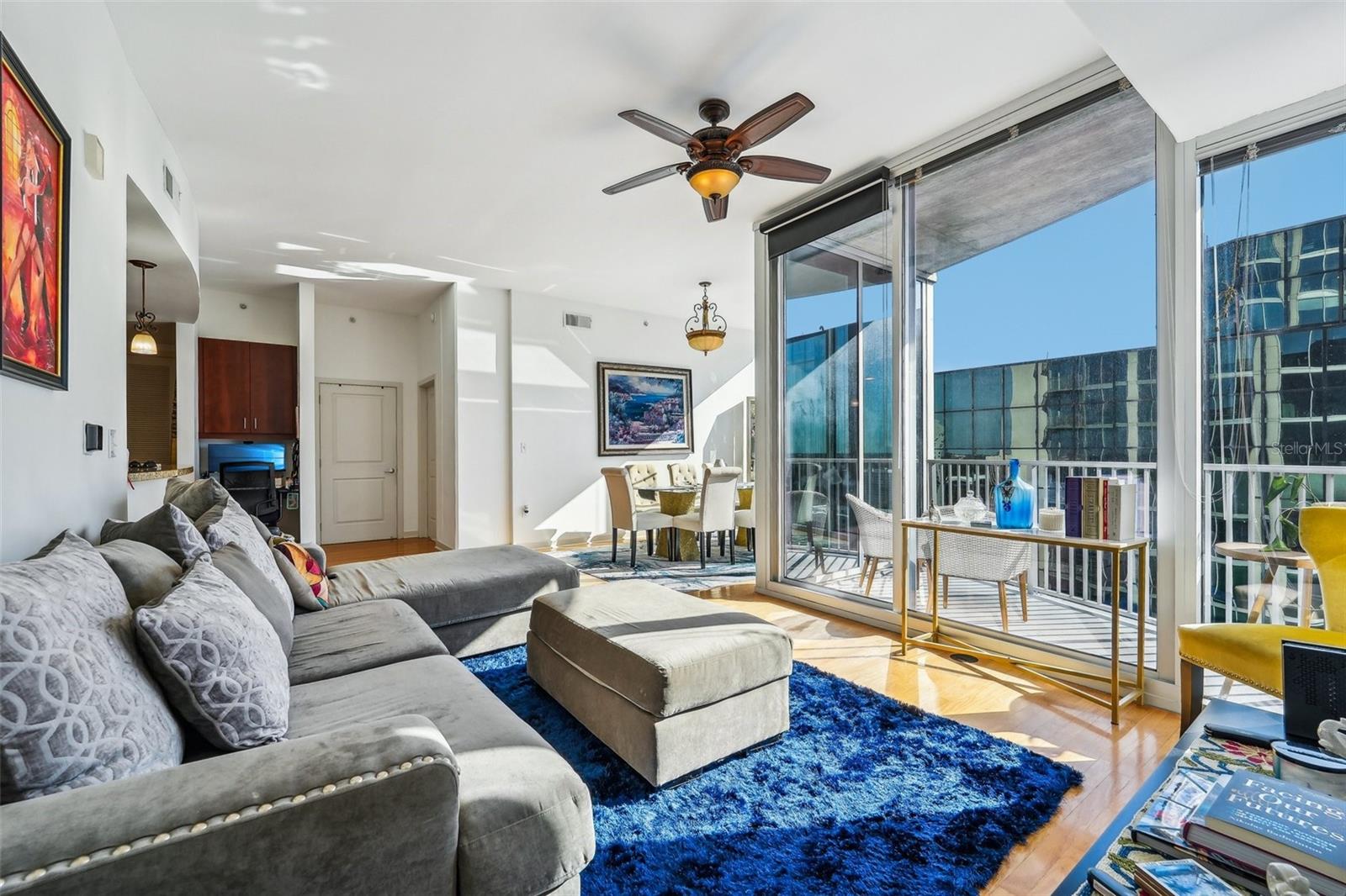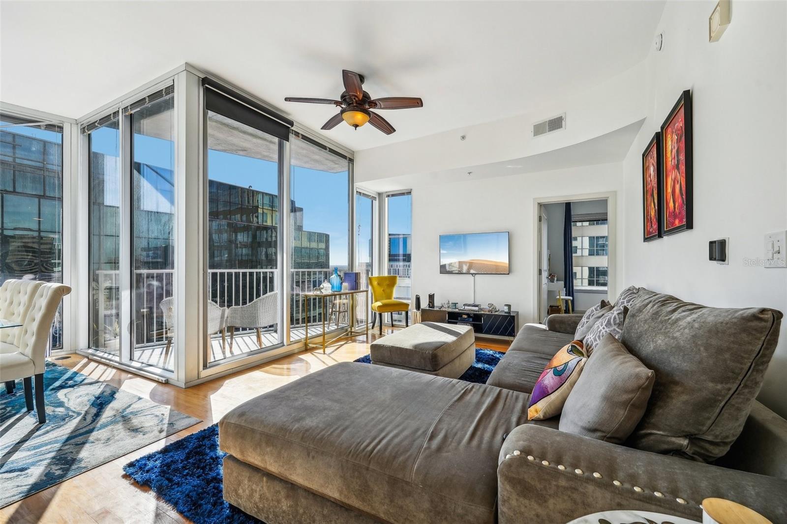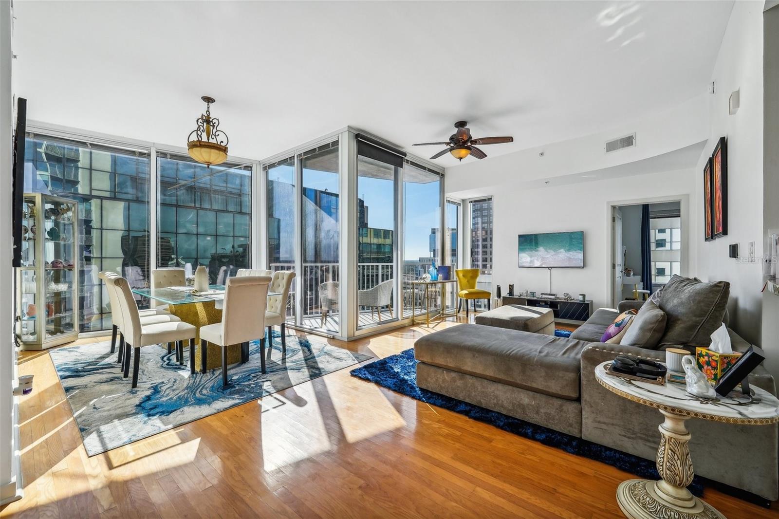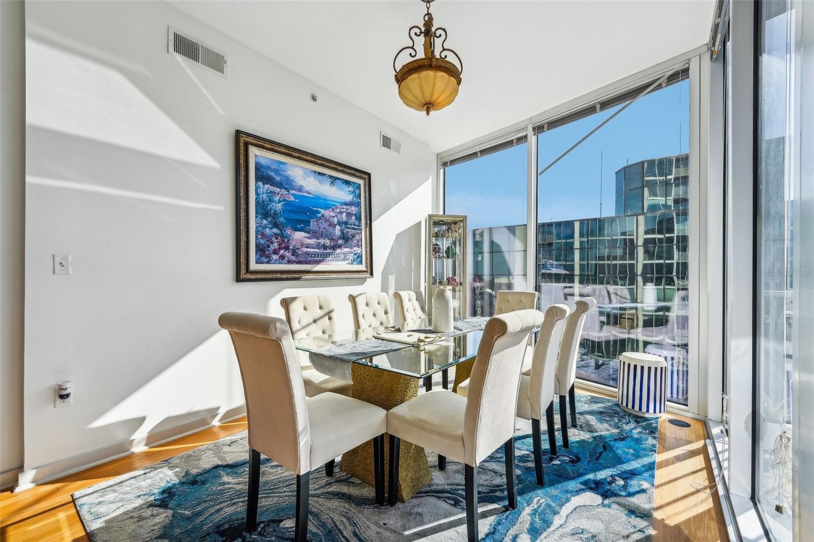 UNIDADE DE CANTO ESPETACULAR EM SOLAIRE NO PLAZA - ESTADO IMPECÁVEL Descubra o melhor da vida urbana neste condomínio exclusivo de 2 quartos e 2 banheiros localizado no prestigiado Solaire at the Plaza, o edifício mais cobiçado no coração do centro de Orlando. Não deixe passar esta oportunidade única! Esta casa deslumbrante é destacada pelas janelas do chão ao teto que oferecem vistas incomparáveis da cidade vibrante. O piso de madeira foi recentemente polido e mantido para um acabamento impecável. A cozinha possui bancadas elegantes, torneira “mãos livres” e todos os itens essenciais para um estilo de vida moderno. O design aberto e elegante deste condomínio inclui piso de madeira em todas as áreas comuns, um espaçoso closet no quarto principal e uma combinação de lavadora e secadora de tamanho normal. Além disso, você terá 2 vagas exclusivas em garagem segura, garantindo comodidade e tranquilidade. Solaire at the Plaza oferece o melhor em comodidades: acesso seguro por impressão digital, segurança 24 horas, academia totalmente equipada, piscina estilo resort e centro de mídia/espaço para reuniões com cozinha completa para até 100 convidados. As taxas HOA incluem internet e TV, tornando a vida urbana ainda mais tranquila. Localizado em uma cidade totalmente acessível a pé, você estará a apenas 2 quarteirões do Kia Center, onde poderá desfrutar dos jogos do Orlando Magic, ou a uma curta caminhada do estádio Orlando City Soccer. Para os amantes do teatro, o Dr. Phillips Center fica a apenas um quarteirão de distância, perfeito para seus shows e musicais favoritos. Você também estará cercado por uma incrível variedade de restaurantes, bares e cafés, com um Publix logo na esquina e o cinema CMX com 12 salas bem no Plaza. Este condomínio não tem paredes ou tetos de concreto aparente, oferecendo uma aparência limpa e polida. Não perca a oportunidade de morar neste cantinho icônico do centro de Orlando, onde cada detalhe foi cuidadosamente cuidado para oferecer o melhor da vida moderna. Este condomínio espetacular está esperando por você!