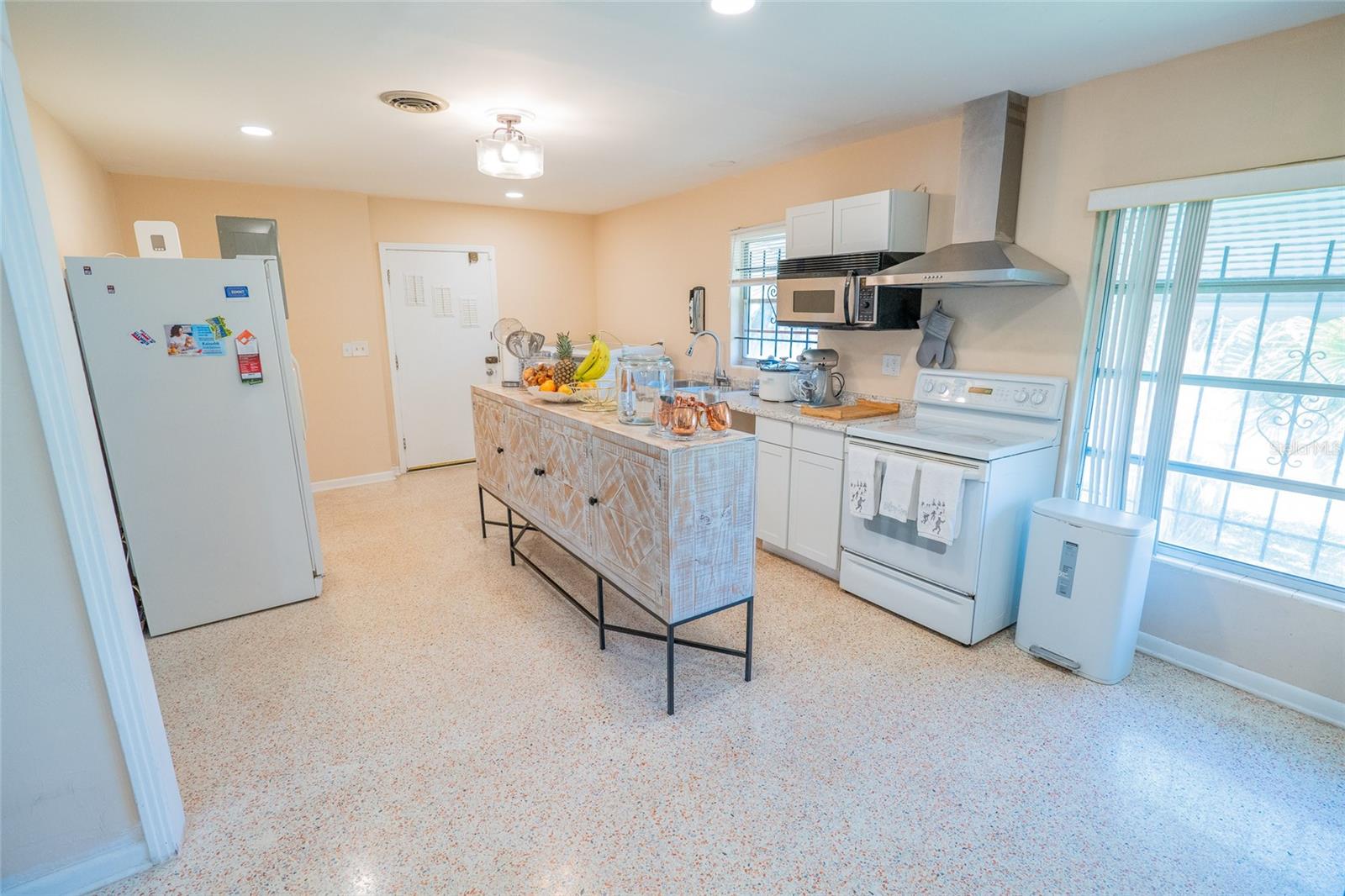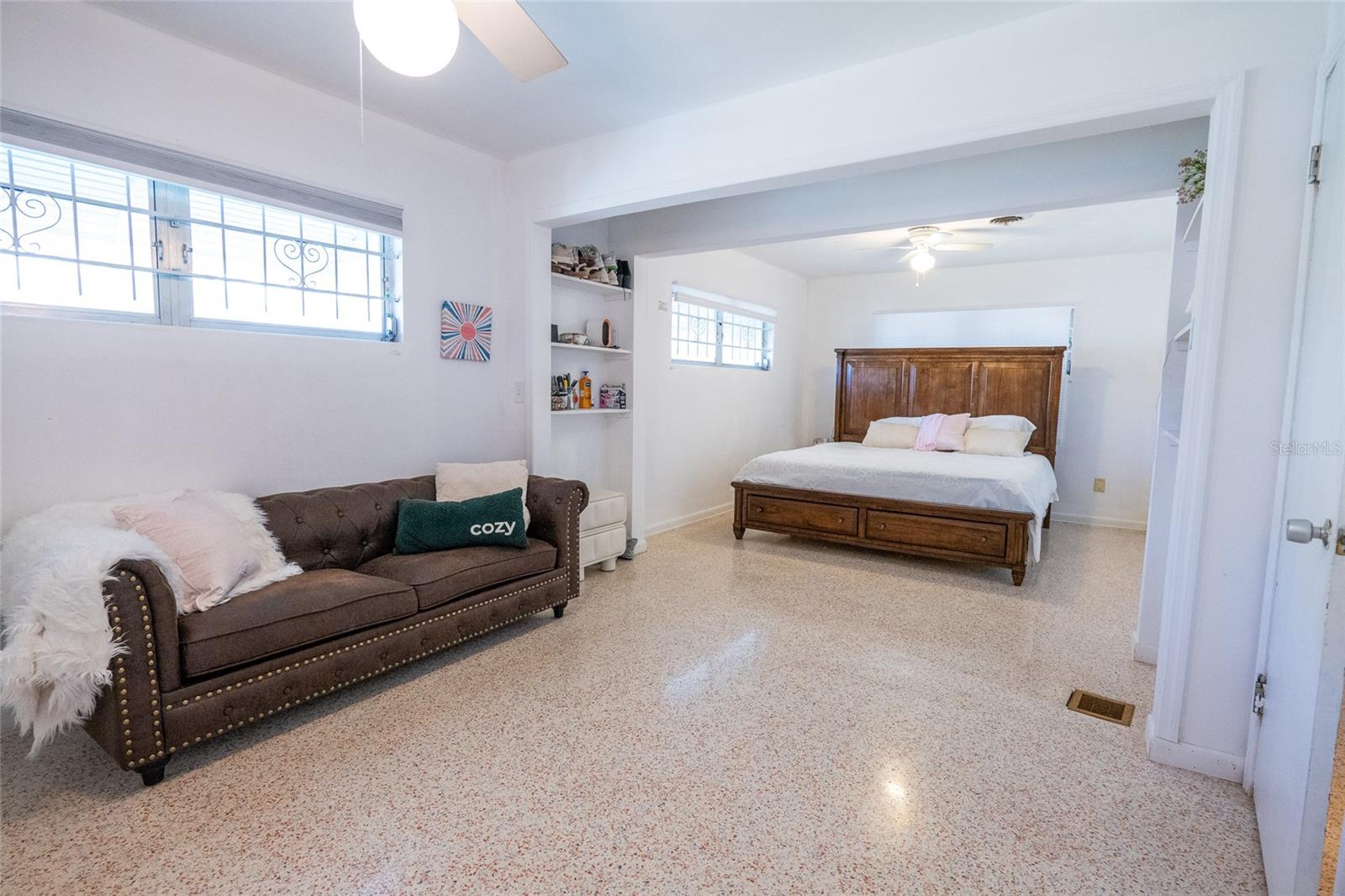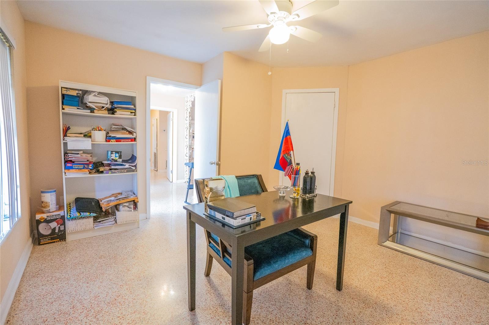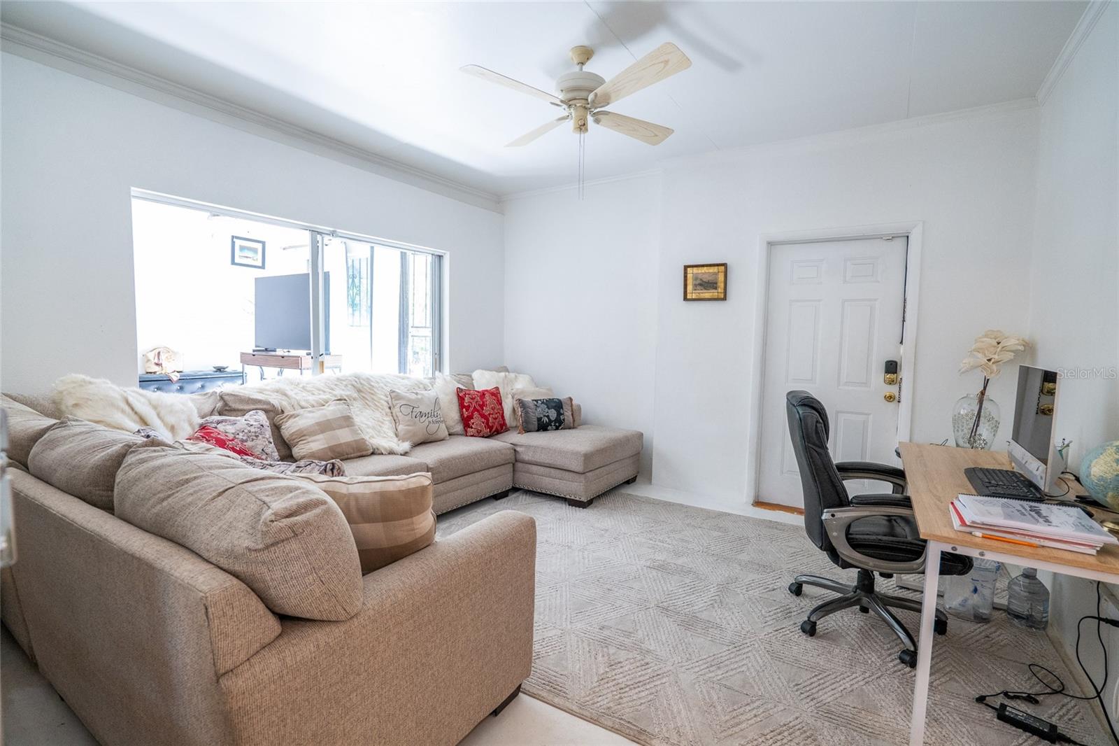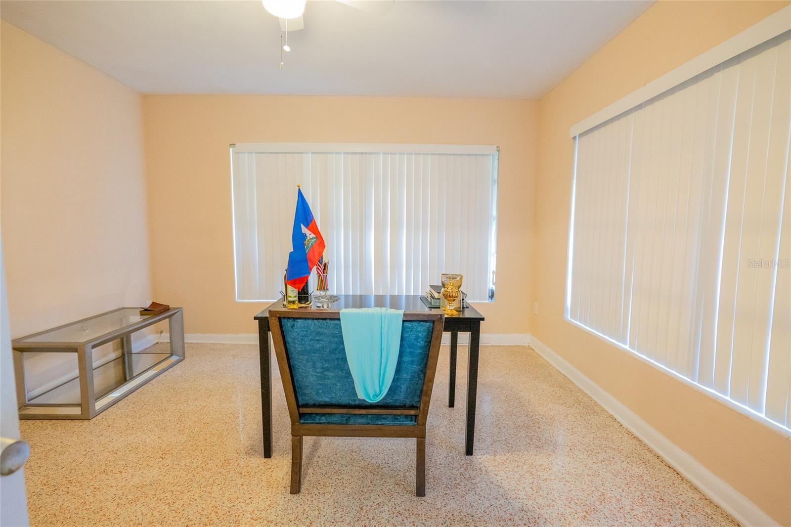 Esta encantadora propriedade possui mais de 2.000 pés quadrados de área útil, oferecendo quartos amplos, um escritório e diversas oportunidades de personalização. Situada em um terreno cercado de esquina de um quarto de acre, a casa oferece amplo espaço para a construção de um jardim sustentável ao lado das árvores frutíferas existentes - um refúgio para quem busca um toque da natureza em casa. Ao entrar no hall de entrada, você será recebido por luz natural, uma sensação arejada e aberta, tetos altos e pisos de cerâmica duráveis por toda parte. A área de estar formal oferece um espaço acolhedor para reuniões familiares, relaxamento tranquilo ou assistir seus programas favoritos. Adjacente à área de estar, a combinação de sala de jantar e cozinha é perfeita para o chef caseiro, com armários shaker, exaustor de aço inoxidável e micro-ondas. Uma sala bônus, completa com ventilador de teto, pode ser adaptada para atender às suas necessidades, seja como brinquedoteca, academia ou espaço criativo. Para quem trabalha em casa, um escritório convenientemente localizado fora da área de jantar garante privacidade e produtividade. A ampla suíte principal é um retiro luxuoso, oferecendo um enorme closet pronto para seus toques de design pessoal. Seu banheiro privativo tipo spa possui pias de pedestal duplo, um segundo armário e uma banheira independente para o máximo relaxamento. O segundo quarto foi cuidadosamente expandido para um retiro espaçoso com área de estar, embora possa ser facilmente convertido novamente em dois quartos, se necessário. O segundo banheiro inclui uma pia com pedestal e uma combinação de banheira e chuveiro, combinando estilo e funcionalidade. A casa inclui ainda um telheiro com arrecadação fechada, completa com WC e lavandaria interior, acrescentando ainda mais comodidade a esta propriedade única. Situada perto de todas as principais atrações de Orlando, do centro de Orlando, da I-4 e da East-West Expressway, esta casa oferece acesso incomparável a lojas, restaurantes e entretenimento. Quer você esteja procurando um oásis privado ou o local perfeito para criar um estilo de vida autossustentável, esta propriedade está pronta para recebê-lo em casa. Agende sua exibição hoje e visualize as possibilidades!