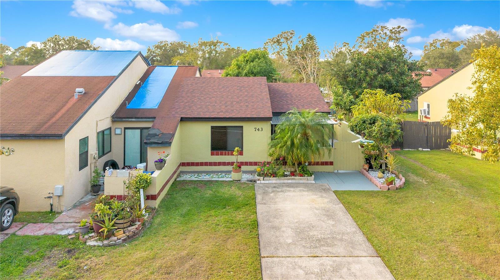 Redução de preço!!! Bem-vindo ao 743 Golden Sunshine Circle, um duplex lindamente atualizado de 2 quartos e 1 banheiro que oferece uma vida confortável e atualizações atenciosas, incluindo um TELHADO NOVO. Ao se aproximar, você é recebido por um exterior bem cuidado com paisagismo fresco e um pátio frontal aconchegante, perfeito para o café da manhã ou para relaxar à noite. Entre para encontrar toneladas de luz natural irradiando das grandes janelas que destacam o novo e luxuoso piso de pranchas de vinil de fácil manutenção em toda a casa. A espaçosa sala familiar flui facilmente para a área de jantar e cozinha, criando um layout prático e acolhedor. A cozinha foi cuidadosamente atualizada com bancadas de granito e eletrodomésticos de aço inoxidável, incluindo uma geladeira nova. Ambos os quartos têm dimensões confortáveis e amplo armário, enquanto o banheiro recentemente atualizado (2023) apresenta acabamentos modernos, incluindo vidro de segurança para maior tranquilidade. Passe pelas novas portas de vidro deslizantes para aproveitar o verdadeiro destaque desta propriedade: o espaço ao ar livre. Este amplo oásis de quintal totalmente cercado, completo com um gazebo encantador, árvores maduras e várias áreas de estar, é o local perfeito para entreter ou relaxar após um longo dia. Um galpão de jardim fornece armazenamento adicional, e a área de grama artificial de baixa manutenção garante que você passará mais tempo aproveitando seu espaço em vez de mantê-lo. Outra atualização notável para esta casa inclui uma reforma completa, aumentando sua tranquilidade nos próximos anos. Este condomínio oferece manutenção do gramado do jardim da frente e uma piscina comunitária com uma taxa HOA SUPER baixa. Esta casa está pronta para morar e é perfeita para compradores de primeira viagem, redutores ou investidores. Situada a poucos passos da Colonial High School e centralmente localizada para que tudo esteja ao seu alcance - deslocamento fácil com a 408 (8 min), uma infinidade de restaurantes e compras em Waterford Lakes (15 min), UCF e Siemens (15 min) e apenas 20 minutos para o centro de Orlando - esta propriedade realmente tem tudo, então agende sua exibição privada hoje mesmo!