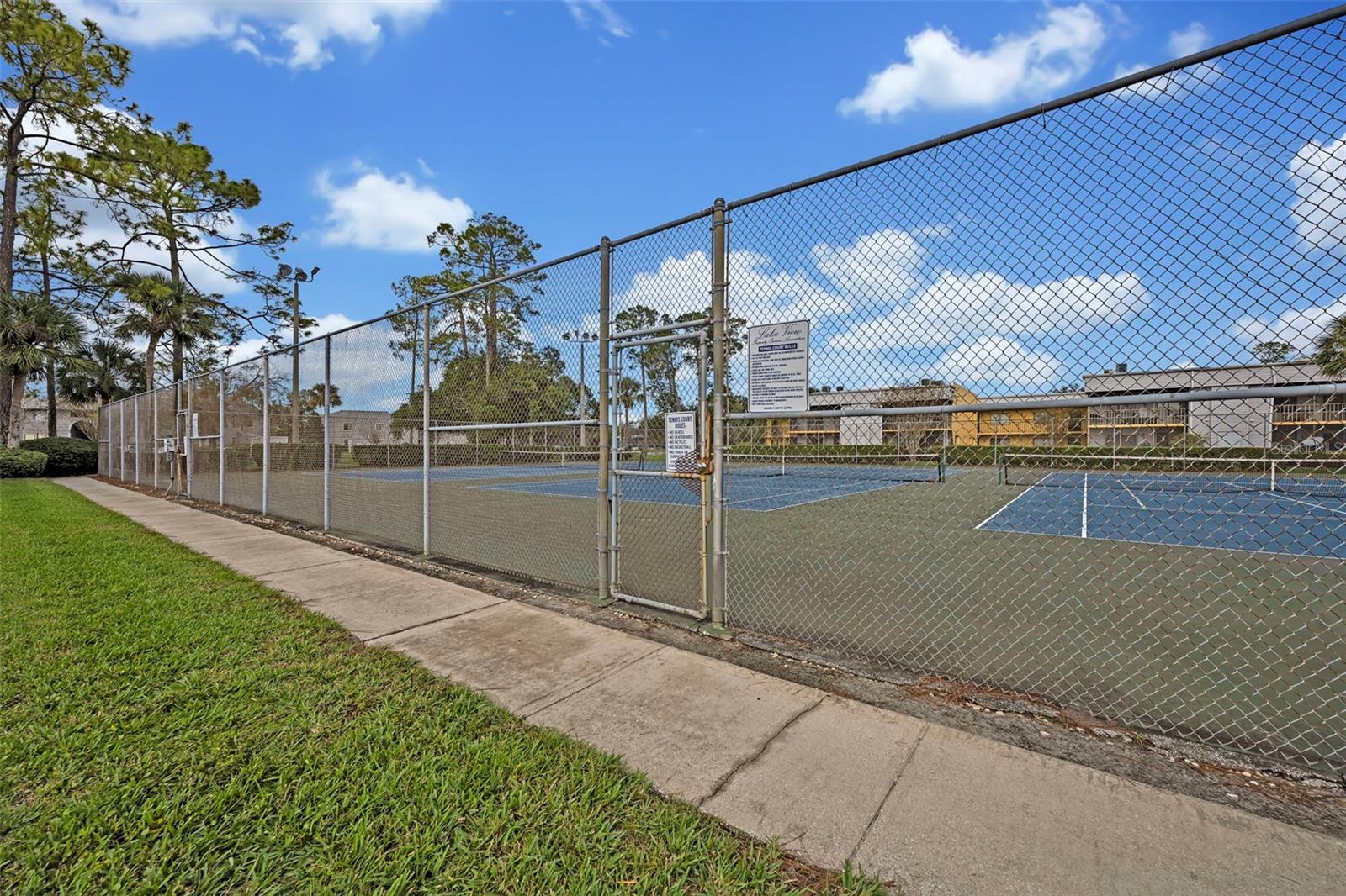 Calçada, portas de correr, quadra(s) de tênis