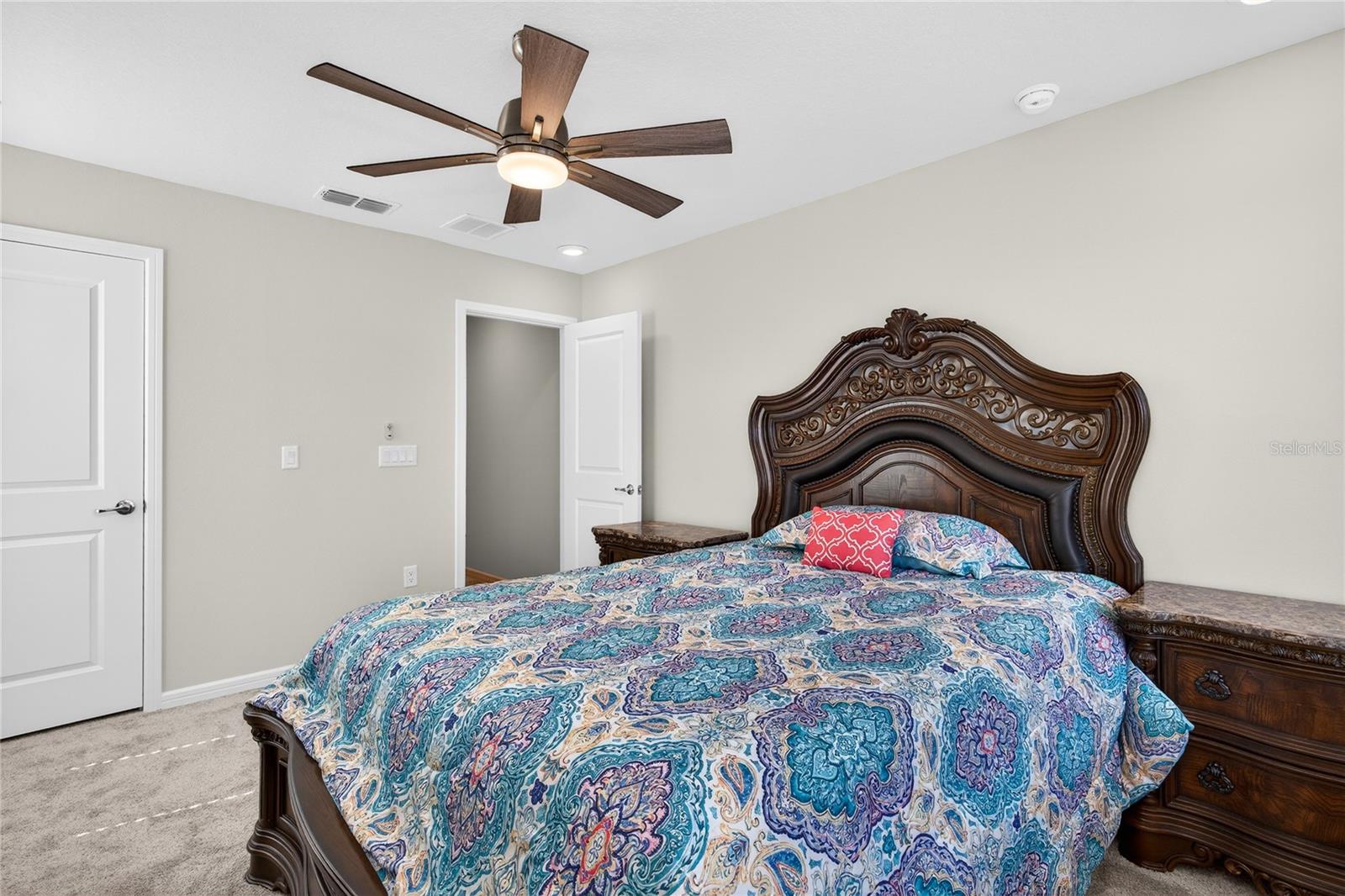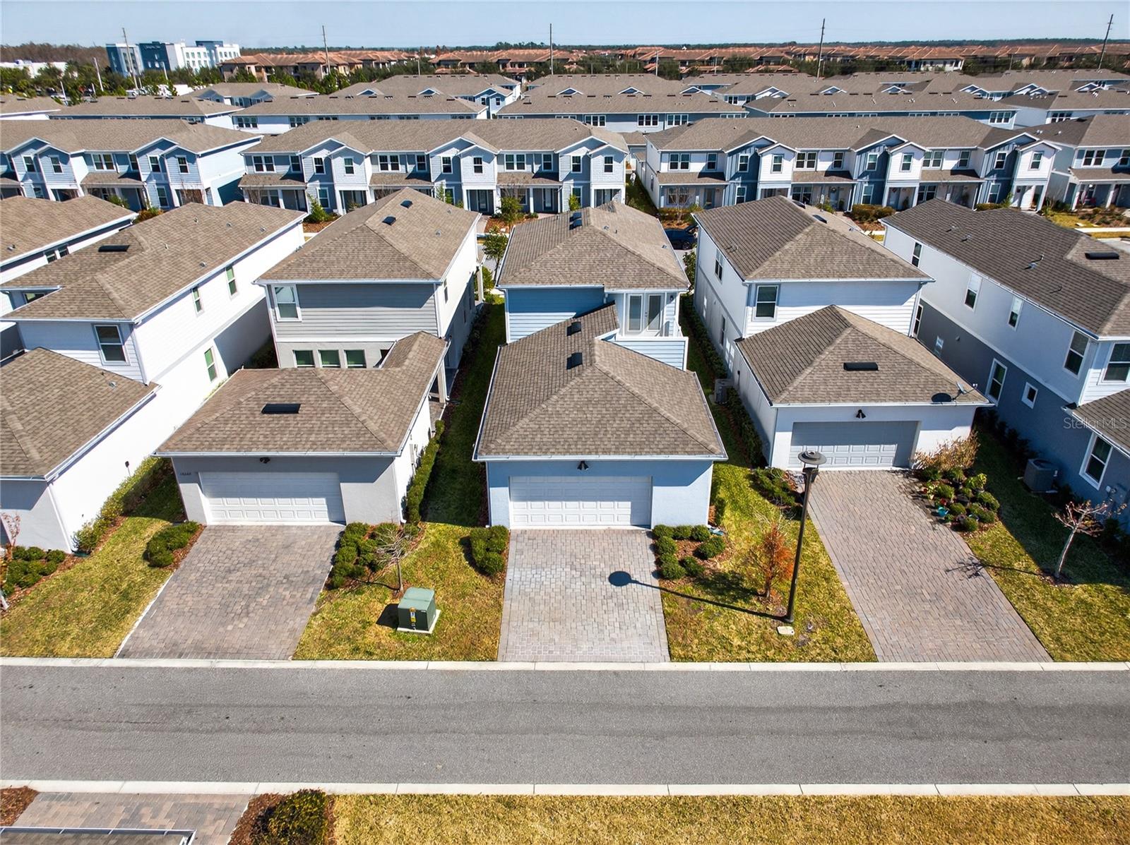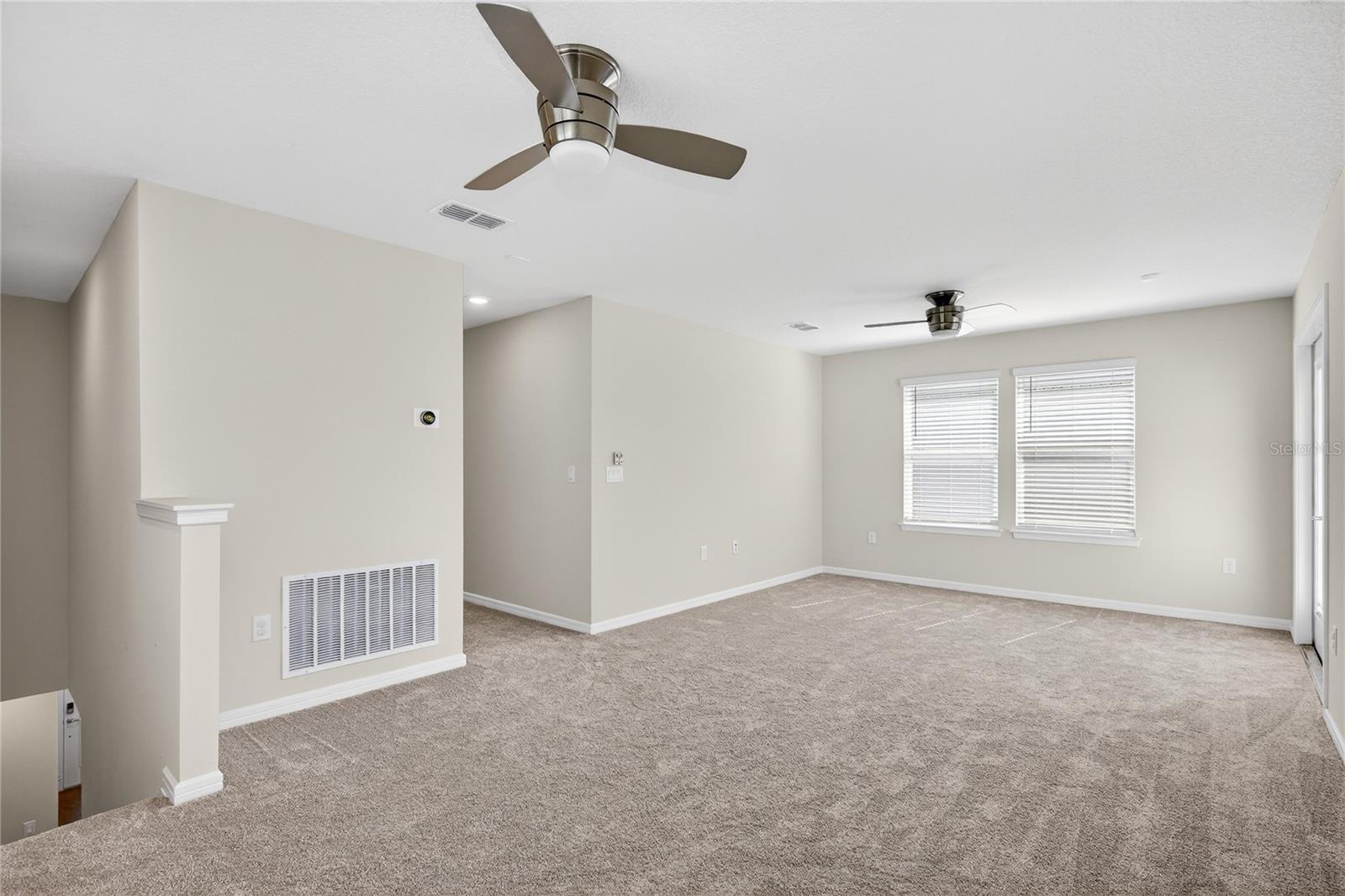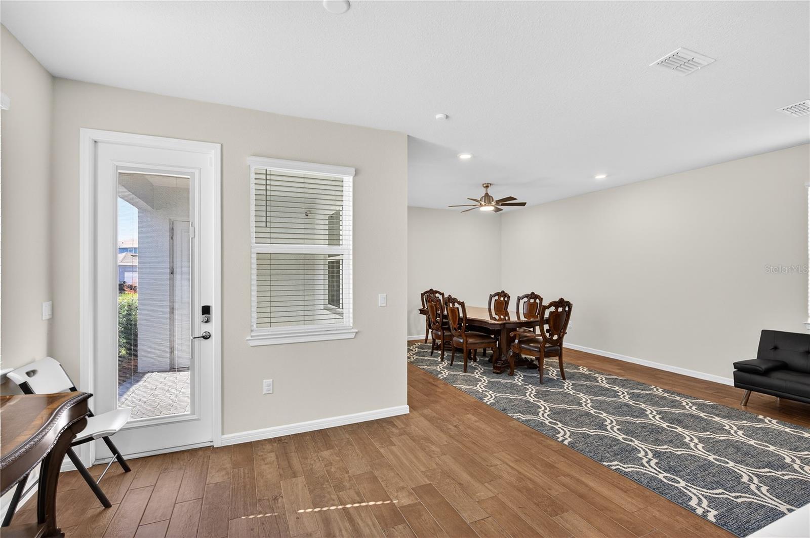 Uma ou mais fotos foram praticamente encenadas. Descubra o epítome do luxo e conforto no modelo Monterey em Isles of Lake Nona. Esta casa apresenta uma planta baixa com um vestíbulo acolhedor que leva diretamente à suíte do proprietário do primeiro andar, que inclui uma vaidade dupla, chuveiro de stand-up e closet no banheiro da suíte. The main level is designed for entertaining, showcasing an open kitchen with 42" upgraded cabinets, quartz countertops, and wood-look ceramic tile, flowing seamlessly into the dining and living areas. Step outside to enjoy the covered lanai or access the 2-car garage with its durable epoxy floor. Upstairs, a versatile loft area—perfect for game nights—complements the additional bedrooms and shared bath, with access to Um baralho de alto nível. Entrada.