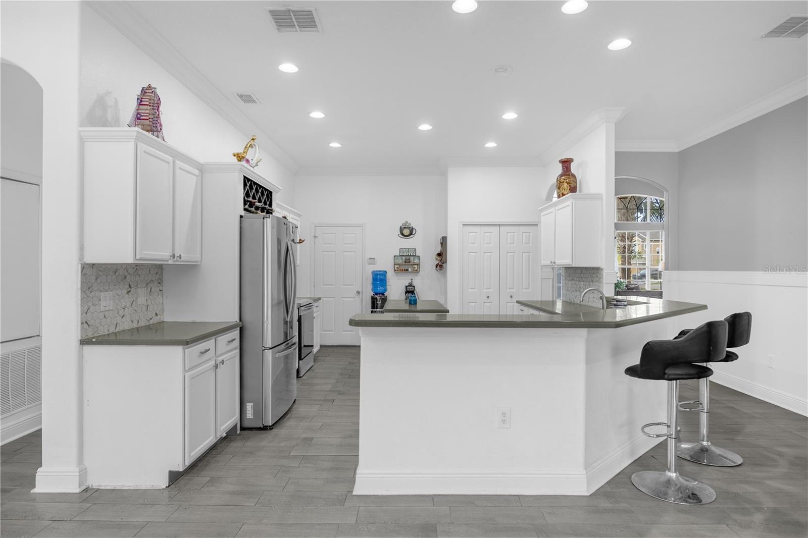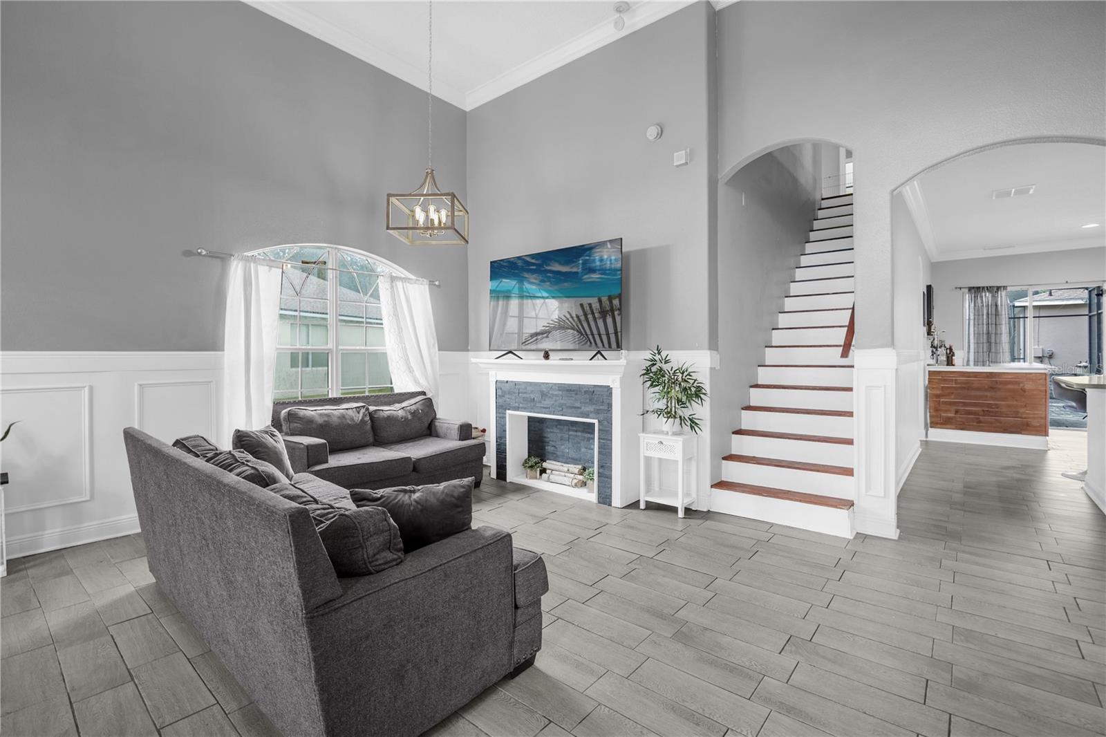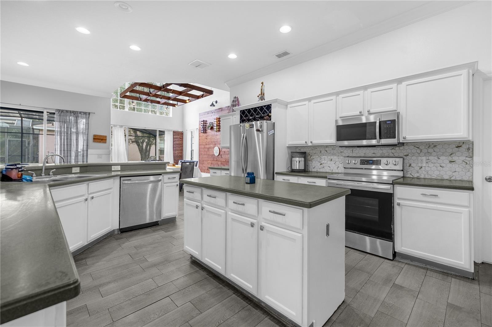 Localizada no condomínio fechado de Windcrest em Meadow Woods, esta espaçosa casa de 5 quartos e 3,5 banheiros apresenta um novo teto instalado em setembro de 2024. Situado em um lote de grandes dimensões com uma vista para lago, a propriedade inclui um pátio traseiro de tela grande, com pavimentadoras lindamente instaladas, juntamente com uma cozinha externa e uma fogueira embutida. Esta casa foi meticulosamente remodelada, com detalhes em teto e parede, acabamento na parede, piso de vinil de luxo e uma barra embutida. O nível principal oferece uma área de estar e jantar bem iluminada com uma parede de vinho personalizada, além de uma grande sala familiar. A cozinha possui uma ilha central, bar de café da manhã, armário de armário e eletrodomésticos Samsung, instalados em 2022. A suíte primária fica no primeiro andar, oferecendo um closet, vaidades duplas, uma banheira de jardim e um chuveiro. No andar de cima, quatro quartos de tamanho generoso oferecem amplo espaço no armário, incluindo um com um banho de banho. Para maior conforto e eficiência, a unidade A/C no andar de cima foi substituída em 2021, enquanto a unidade do andar de baixo foi substituída recentemente em 2025. Recursos adicionais incluem uma camada de campainha e três câmeras de segurança para segurança aprimorada. As comodidades comunitárias incluem uma piscina e playground. Convenientemente localizado perto do Aeroporto Internacional de Orlando, principais rodovias, compras, refeições e atrações de classe mundial. Agende sua exibição hoje.