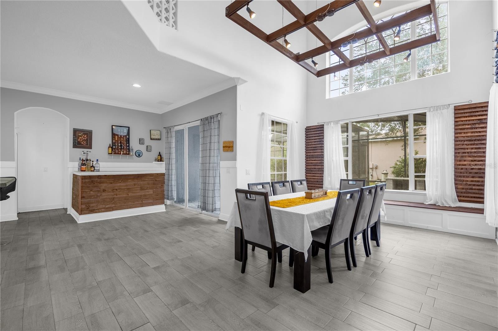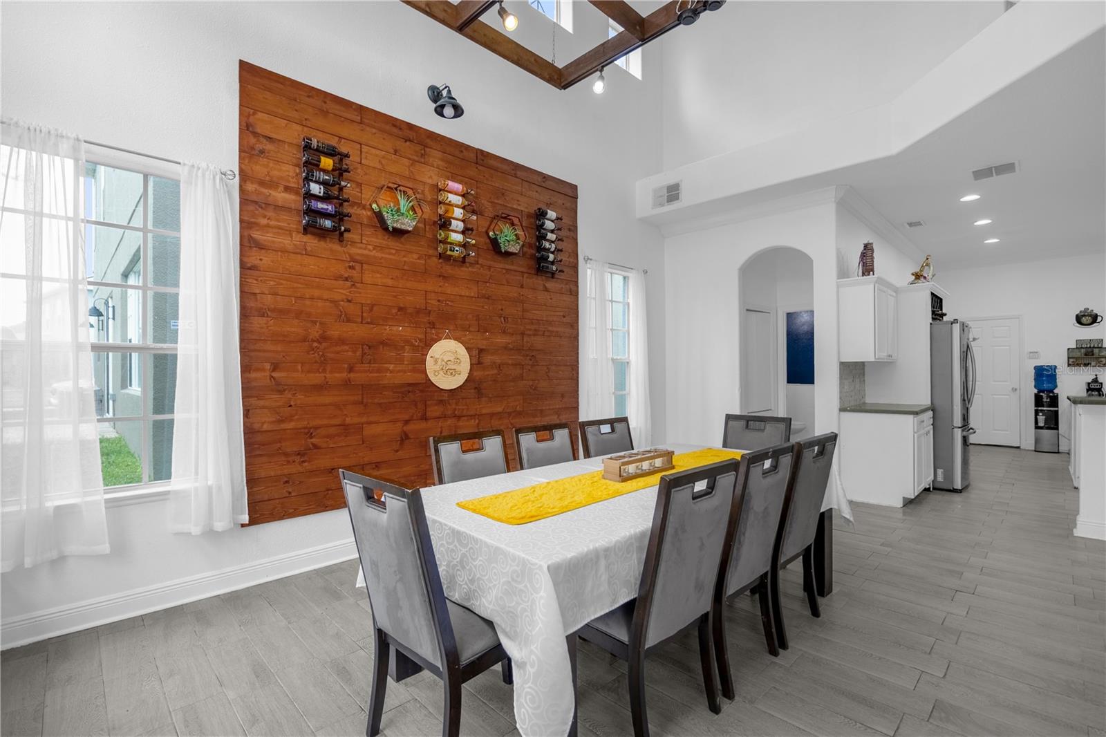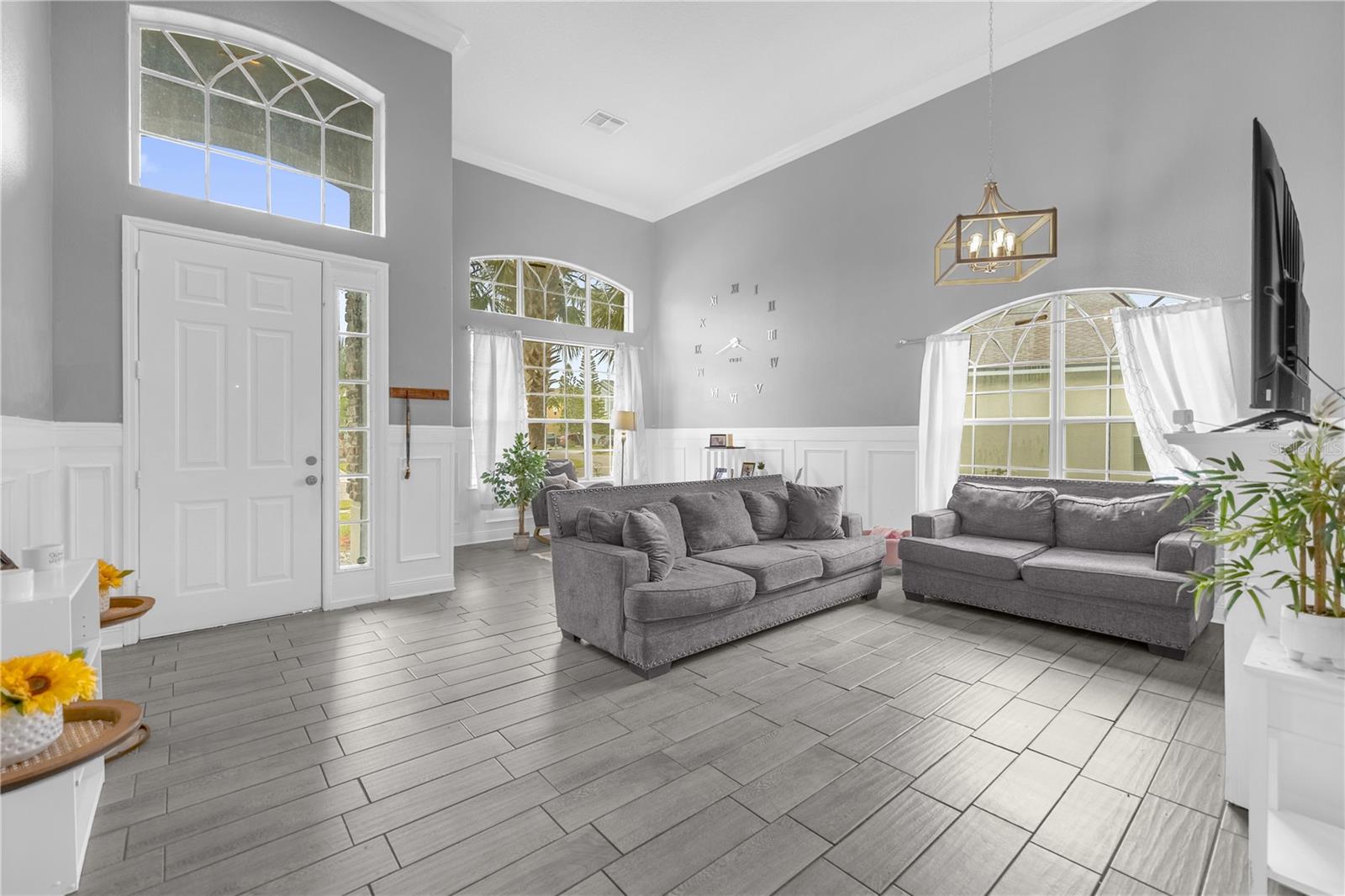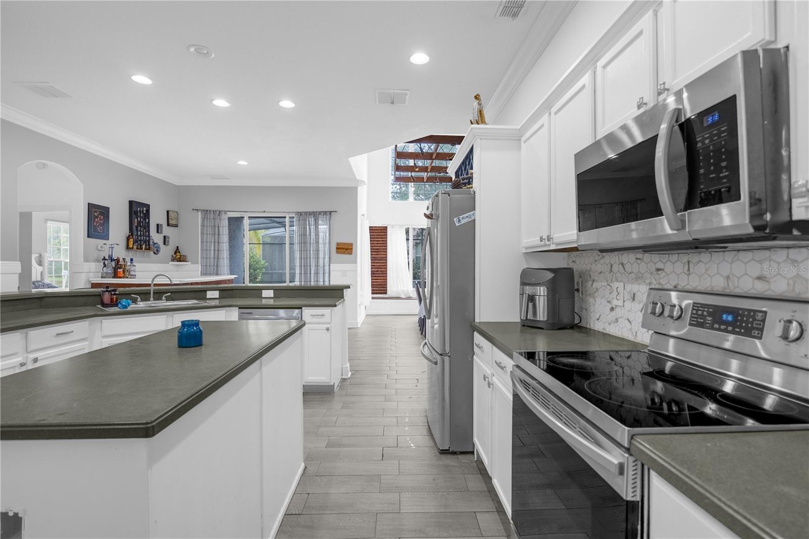 Localizada no condomínio fechado de Windcrest em Meadow Woods, esta espaçosa casa de 5 quartos e 3,5 banheiros apresenta um novo teto instalado em setembro de 2024. Situado em um lote de grandes dimensões com uma vista para lago, a propriedade inclui um pátio traseiro de tela grande, com pavimentadoras lindamente instaladas, juntamente com uma cozinha externa e uma fogueira embutida. Esta casa foi meticulosamente remodelada, com detalhes em teto e parede, acabamento na parede, piso de vinil de luxo e uma barra embutida. O nível principal oferece uma área de estar e jantar bem iluminada com uma parede de vinho personalizada, além de uma grande sala familiar. A cozinha possui uma ilha central, bar de café da manhã, armário de armário e eletrodomésticos Samsung, instalados em 2022. A suíte primária fica no primeiro andar, oferecendo um closet, vaidades duplas, uma banheira de jardim e um chuveiro. No andar de cima, quatro quartos de tamanho generoso oferecem amplo espaço no armário, incluindo um com um banho de banho. Para maior conforto e eficiência, a unidade A/C no andar de cima foi substituída em 2021, enquanto a unidade do andar de baixo foi substituída recentemente em 2025. Recursos adicionais incluem uma camada de campainha e três câmeras de segurança para segurança aprimorada. As comodidades comunitárias incluem uma piscina e playground. Convenientemente localizado perto do Aeroporto Internacional de Orlando, principais rodovias, compras, refeições e atrações de classe mundial. Agende sua exibição hoje.