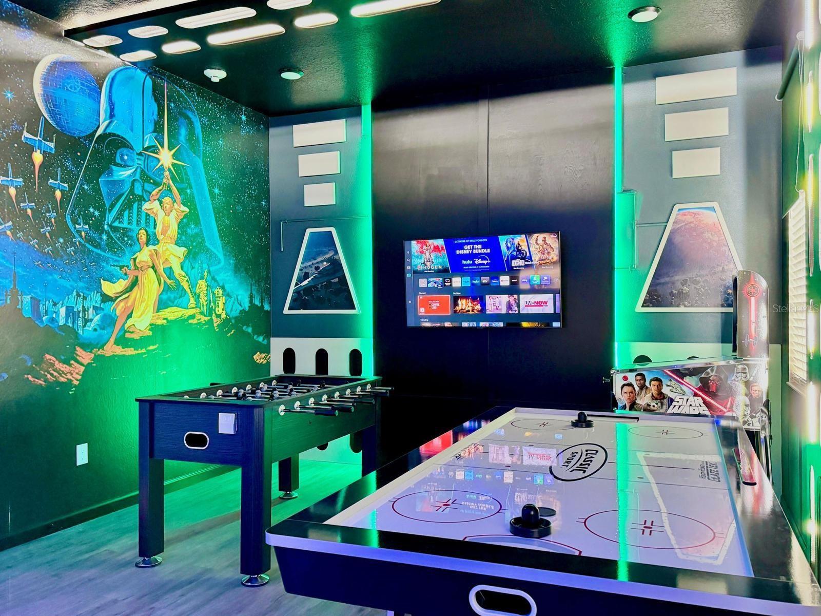 Bem -vindo à sua casa de férias dos seus sonhos na comunidade Paradiso Grande em Orlando! Esta impressionante propriedade de 5 quartos e 5 banheiros oferece a mistura perfeita de conforto, elegância e conveniência, tornando-a um retiro ideal para famílias e grupos que buscam uma escapada luxuosa. Cada um dos cinco quartos espaçosos é uma suíte particular, garantindo o conforto e a privacidade definitivos para todos os hóspedes. A casa vem totalmente mobiliada, com uma decoração elegante e sofisticada, criando uma atmosfera acolhedora e convidativa. A cozinha de verão gourmet é uma delícia de chef, com utensílios de aço inoxidável de primeira linha e tudo o que é necessário para preparar refeições deliciosas. No interior, a cozinha principal é igualmente impressionante, equipada com utensílios de aço inoxidável modernos e amplo espaço para cozinhar e divertir. Saia para o seu próprio oásis privado, completo com uma piscina espumante, churrasqueira ao ar livre e um pátio espaçoso - perfeito para relaxar sob o sol da Flórida. Desfrute de vistas deslumbrantes do lago enquanto relaxa em seu retiro tranquilo no quintal. Para entretenimento, esta casa possui uma emocionante sala de jogos, proporcionando diversão para os hóspedes de todas as idades. Além disso, a propriedade fica a uma curta caminhada do clube, onde você pode desfrutar de comodidades comunitárias de classe mundial. Idealmente localizado, esta casa de férias fica a poucos minutos do novo Epic Park da Universal, ao lado do Orlando Convention Center, e perto das lojas premium do Vineland, oferecendo fácil acesso a compras, restaurantes e entretenimento. Com uma garagem privada para dois carros e a flexibilidade para aluguéis de curto ou longo prazo, esta casa de férias Paradiso Grande é a escolha perfeita para uma estadia inesquecível de Orlando!