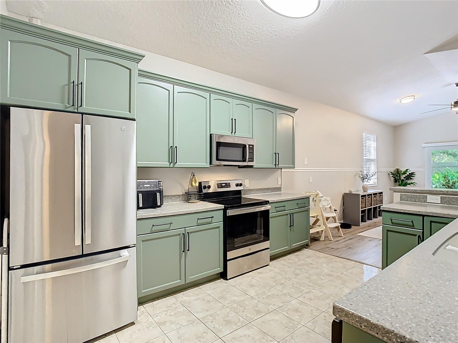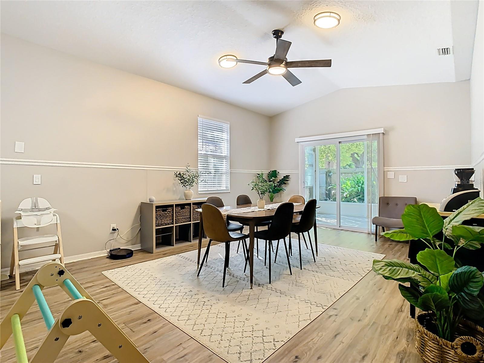 *** melhoria de preço *** Não perca esta incrível oportunidade de possuir uma casa lindamente mantida de 3 quartos e dois banheiros, com uma espaçosa garagem de 2 carros e um pátio coberto e exibido-perfeito para relaxar e desfrutar do sol da Flórida o ano todo. Entre em um piso plano aberto com tetos altos e elegante piso de tábua de vinil de luxo por toda parte, criando uma sensação brilhante e moderna. A cozinha atualizada é uma delícia de chef, com utensílios de aço inoxidável, bancadas de pedra e armários premium. Logo na cozinha, um espaço flexível versátil pode ser usado como área de jantar, escritório em casa ou segunda sala de estar para atender às suas necessidades. A suíte primária é um retiro pacífico com pias duplas, um chuveiro e um closet generoso. O quintal oferece muito espaço para entretenimento ou brincar, além de um galpão de armazenamento para sua conveniência. Para maior paz de espírito: novo telhado (2022), novo AC (2022) e novo aquecedor de água (2022). Localizada em uma área muito procurada, perto de fazer compras, jantares, parques e escolas de primeira linha, esta casa verifica todas as caixas para uma confortável vida na Flórida. Seja você um comprador pela primeira vez, reduzindo o tamanho ou procura um investimento sólido, essa propriedade é imperdível. ~ Programe sua exibição particular hoje e aproveite o crédito de custo de fechamento de US $ 5.000 do vendedor!