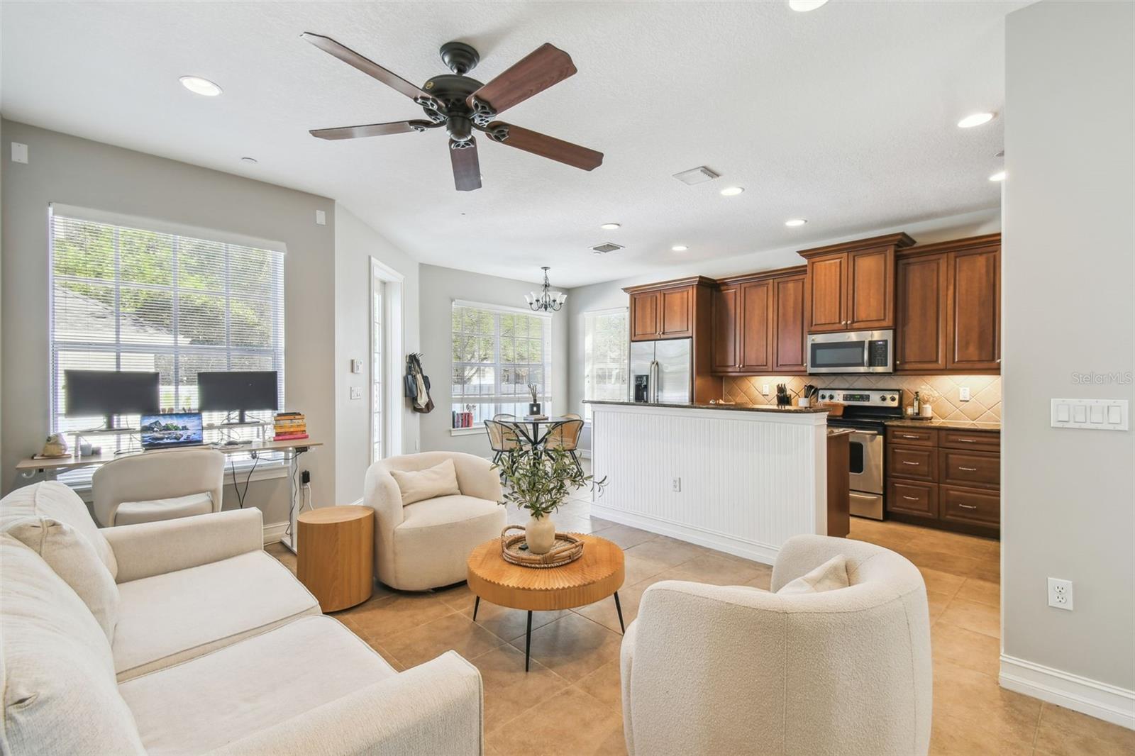 Agora é a hora! Bem-vindo a este belo quarto de dois quartos, além de um grande loft que poderia facilmente ser um terceiro quarto e um canto de 2,5 banheiros em um lote de grandes dimensões, cheio de luz natural das janelas em três lados, fazendo com que se destaque de outras unidades finais. Oferecendo 2.057 pés quadrados de espaço projetado que foi cuidadosamente criado para maximizar uma sensação leve e arejada por toda parte. Ao entrar, você percebe o grande hall de entrada junto com as espaçosas áreas de estar e jantar abertas com pisos de madeira maravilhosos e persianas de plantações por toda parte. Cozinha atualizada com utensílios de aço inoxidável, armários de madeira, bancadas em granito, molduras para coroas e uma conveniente barra de café da manhã, juntamente com a sala de covil, escritório ou área adjacente que contribui para um ótimo espaço flexível. Um recanto de café da manhã brilhante oferece o local ideal para refeições casuais, enquanto meio banho e um bar seco com um refrigerador de bebidas completa o primeiro andar. No andar de cima tem todo o novo tapete de pelúcia, onde você encontrará a espaçosa suíte do proprietário, um enorme armário e um banheiro fantástico com pias duplas, uma banheira de imersão e um chuveiro separado. No corredor está o segundo quarto, um banheiro completo, lavanderia e o grande espaço de loft, que poderia facilmente se tornar um terceiro quarto. Saia pela porta da cozinha para aproveitar seu pátio privado ao ar livre, estendendo seu espaço para relaxar ao ar livre, seja tomando café pela manhã ou se desenrolando com uma bebida no final do dia. Logo além do pátio está a garagem de dois carros anexada. Os recursos adicionais incluem um novo telhado 2025, aspersores embutidos por toda parte e um sistema de segurança. Em um distrito escolar desejável, esta casa oferece excelentes oportunidades educacionais para as famílias. A comunidade de Baldwin Park possui comodidades fantásticas, incluindo três clubes com piscinas, dois centros de fitness, playgrounds, parques e trilhas cênicas, incluindo uma ao redor do lago Sparkling na mesma rua. Aproveite a conveniência de ter um Publix, restaurantes, compras e muito mais no seu bairro. Não perca esta incrível oportunidade de viver em uma das melhores comunidades de Orlando. Ligue hoje para agendar sua exibição particular!