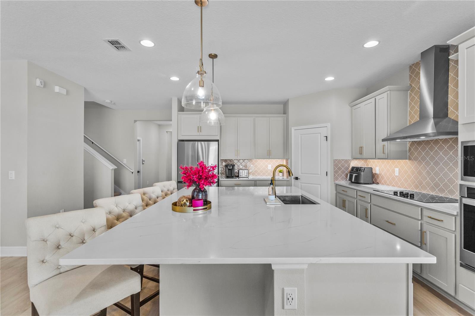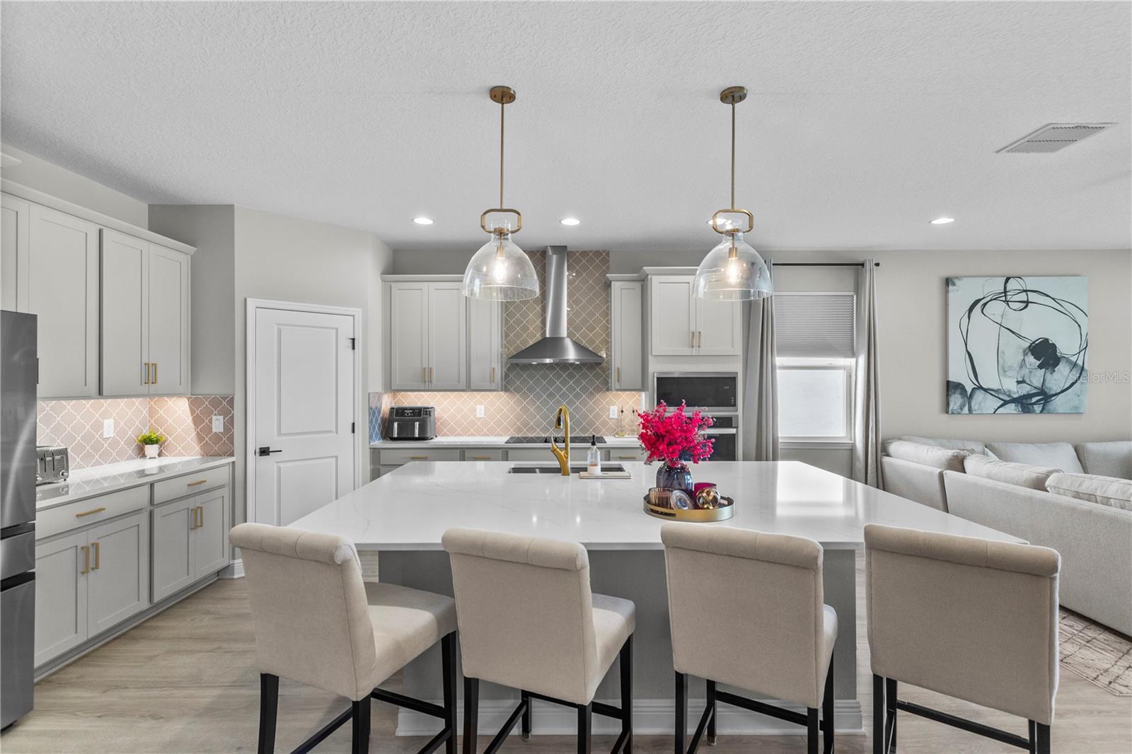 Uma ou mais fotos foram praticamente encenadas. Bem -vindo a esta residência de Anna Maria de Bônus, da Pristine Dream Finders, localizada na área desejável de Orlando. Esta casa luxuosa e funcional abrange aproximadamente 2.670 pés quadrados, com um layout atencioso com quatro quartos, três banheiros cheios e meio. No coração da casa fica uma cozinha gourmet, uma obra -prima de design e utilidade. A expansiva ilha de quartzo branca serve como uma peça central elegante e um espaço de trabalho prático, complementado pela iluminação pendente chique com compensação de ouro. Equipado com utensílios de aço inoxidável sofisticados, incluindo um cooktop de 36 ”com um exaustor elegante, um forno embutido e uma cozinheira de cerâmica de vidro, esta cozinha é ideal para refeições casuais e esforços culinários e de backsplath, com um civil de craque-de-backs, de forma geométrica, e um cush profundo. As áreas de estar e jantar em plano aberto são aprimoradas com persianas solares e resistentes ao calor personalizadas, garantindo conforto e privacidade. Portas de vidro deslizantes grandes e escondidas convidam luz natural abundante e fornecem acesso contínuo ao pátio coberto - perfeito para entretenimento ou relaxamento enquanto desfruta de vistas do quintal lindamente mantido. Desfrute de privacidade adicional sem vizinhos traseiros, criando uma atmosfera tranquila e isolada. O piso ao longo dessas áreas é uma prancha de vinil de luxo elegante e durável (LVP). Um destaque adicional é a sala familiar do segundo andar, oferecendo espaço flexível que pode servir como sala de mídia, sala de jogos ou área de hóspedes adicional. Esta 'sala de bônus' é um retiro ideal para relaxamento ou entretenimento, contribuindo para o apelo e a funcionalidade da casa. Os banheiros apresentam elegantes torneiras de Kohler de 8 ”de 8” e um chuveiro de chuva aéreo semelhante a um spa em cada um, acrescentando um toque de luxo. As adições práticas incluem um piso de garagem revestido com poliaspartic e um sistema de armazenamento aéreo seguro, maximizando a funcionalidade e armazenamento. Uso levemente como uma segunda casa, a propriedade mantém uma condição 'como nova'. Atualizações essenciais, como um telhado de 2 anos, sistema CA e aquecedor de água, garantem que a casa seja tão funcional quanto bonita. A minutos de Lake Nona Medical City, Hospital VA, Nemours e escolas de melhor classificação, você está perto de assistência médica de classe mundial, restaurantes e compras. Convenientemente localizado a poucos minutos do Aeroporto Internacional de Orlando e do campus nacional da USTA, com fácil acesso a grandes rodovias, parques temáticos e belas praias da Flórida. Experimente a vida elevada de Lake Nona - Schedule sua turnê privada hoje!