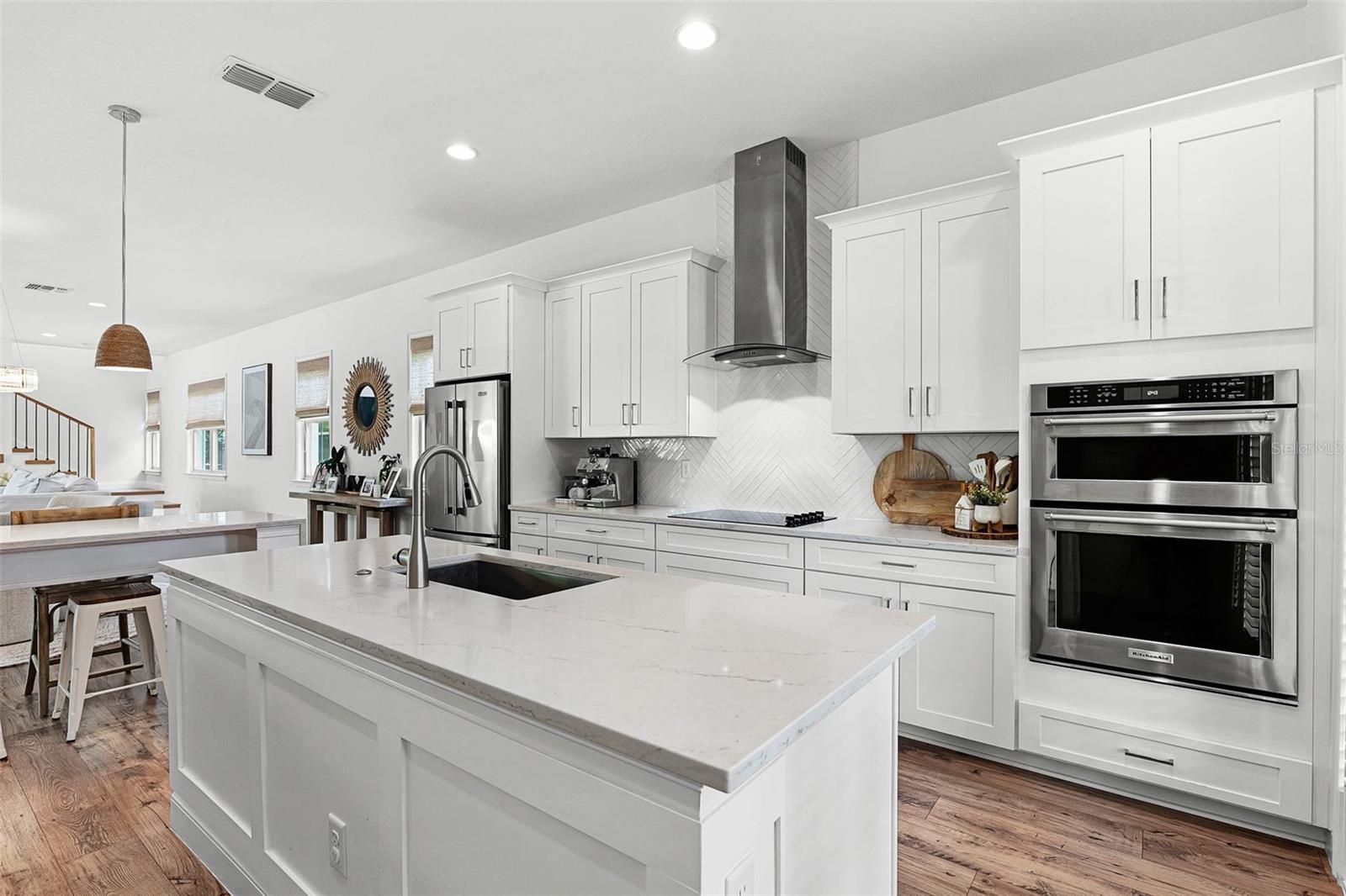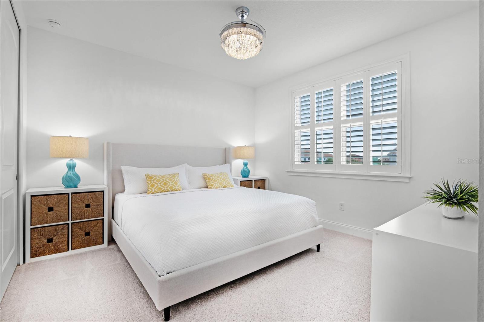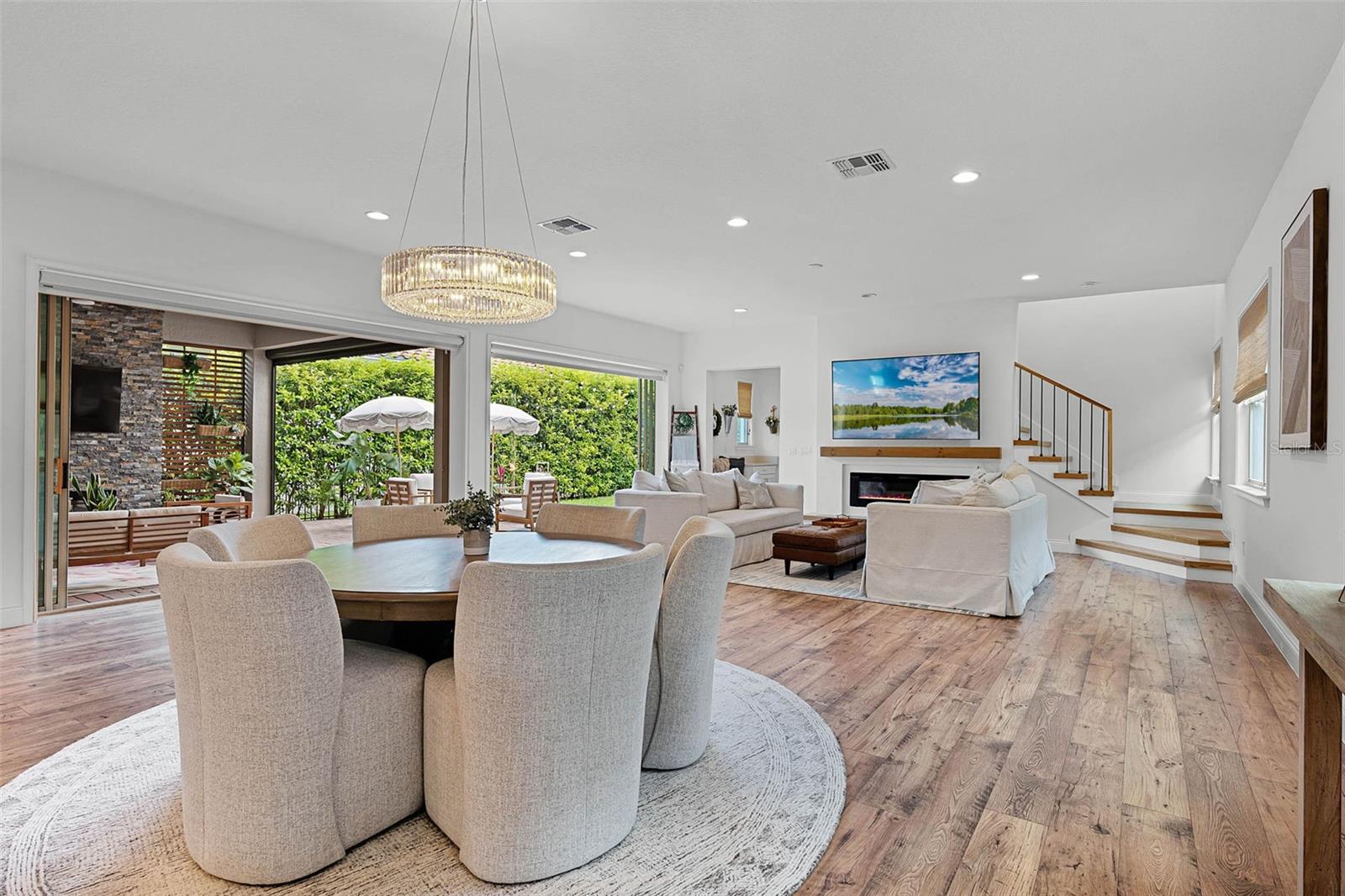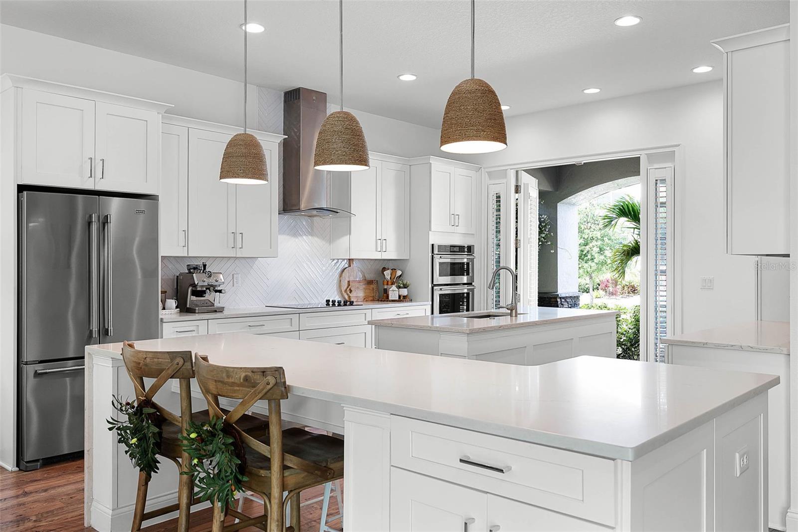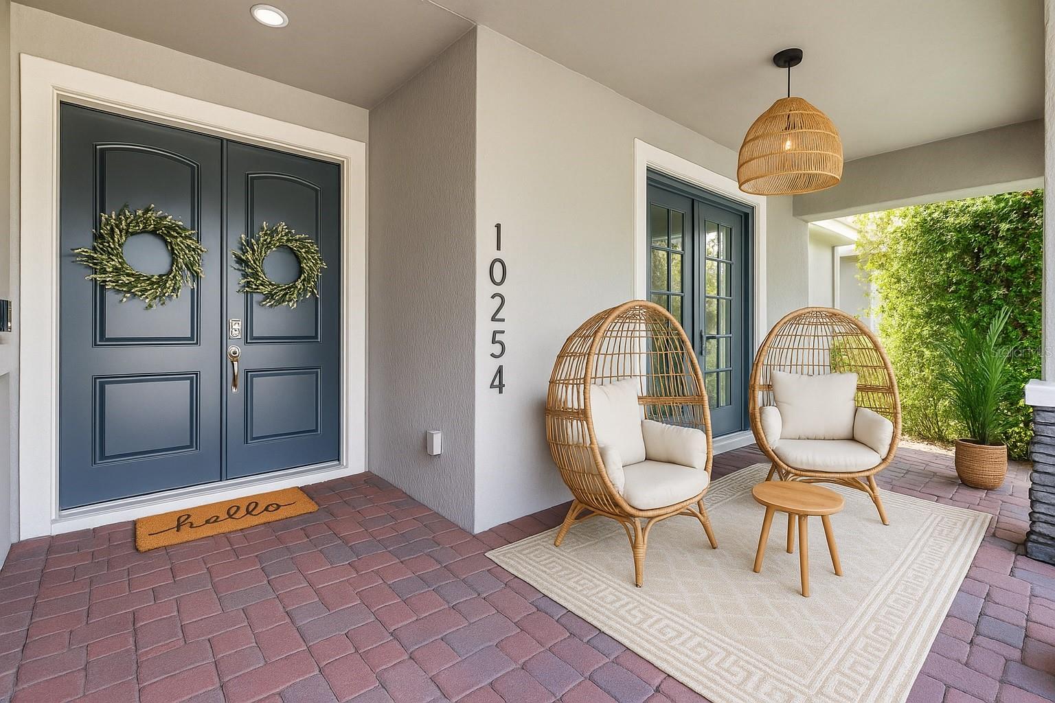 Uma ou mais fotos foram praticamente encenadas. Escondido na comunidade de golfe de Eagle Creek, esta residência impressionante reúne elegância, conforto e um retiro de quintal. Este impressionante casa de 5 quartos e 4 banheiros se estende por 4.211 pés quadrados e oferece uma mistura perfeita de luxo, conforto e design atencioso. Entre em uma varanda frontal coberta de dois andares e seja recebida por uma extensa planta aberta cheia de luz natural. O nível principal mostra o piso de Mohawk Revwood - uma superfície durável e elegante que traz calor e elegância para a casa. A cozinha gourmet é uma verdadeira peça, cuidadosamente projetada para inspirar a criatividade culinária e o entretenimento sem esforço. Possui ilhas duplas-uma dedicada a preparar e cozinhar com uma pia embutida e armazenamento abundante, e o outro ideal para refeições casuais e hóspedes. O espaço é elevado por bancadas de quartzo luxuosas, armários de agitadores brancos com hardware inoxidável e combinação de forno de parede/microondas de topo de linha de topo e geladeira, todos banhados em luz natural. Seja preparando um jantar tranquilo em família ou entretendo uma multidão, esta cozinha oferece elegância, função e fluxo. A sala da família gira em torno de uma lareira elétrica embutida com uma manto de madeira e apresenta portas deslizantes duplas completamente retráteis que se abrem para um espaço tranquilo ao ar livre. Saia de um espaço de estar ao ar livre excepcional que parece seu próprio retiro privado. O pátio coberto é perfeito para diversão durante todo o ano, com uma segunda lareira elétrica emoldurada por pedra empilhada elegante e ladeada por plantadores personalizados de madeira. A área flui sem esforço para o quintal lindamente paisagístico, aprimorado com palmeiras exuberantes, sebes doces de viburno e muito espaço para uma futura piscina personalizada, criando um cenário pitoresco para relaxar, divertir ou jantar sob as estrelas. The backyard is fully fenced with 5” black aluminum fencing and enhanced by sweet viburnum shrubs for a natural hedge and palm trees in the front and back. The first floor includes a bedroom and full bath, perfect for guests or a home office, complete with built-in cabinets and floating shelves & private access to a side courtyard. A custom drop zone, located just inside from the garage, adds everyday convenience. Upstairs, you'll find a spacious loft, a Bônus enorme com portas duplas e uma lavanderia de grandes dimensões com armários embutidos, bancadas de quartzo e uma pia de lavanderia. Para a lavanderia. Perfeito para passeios pacíficos e reuniões de bairro.