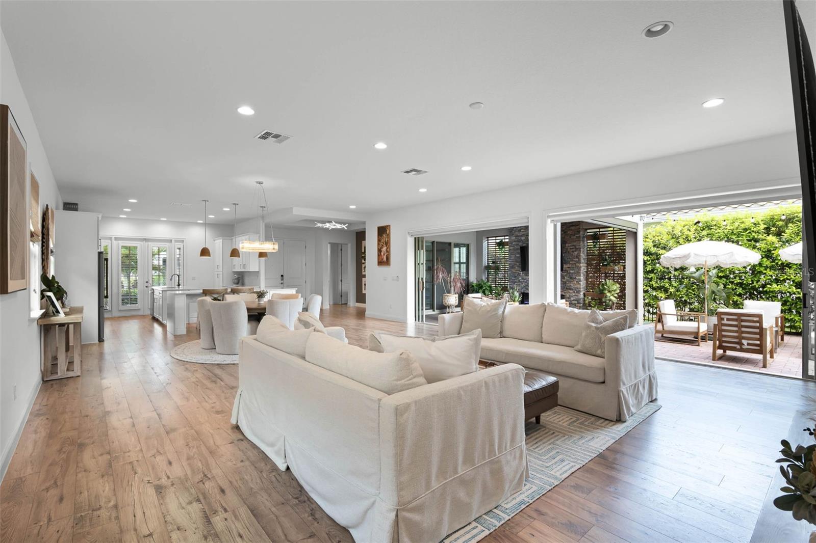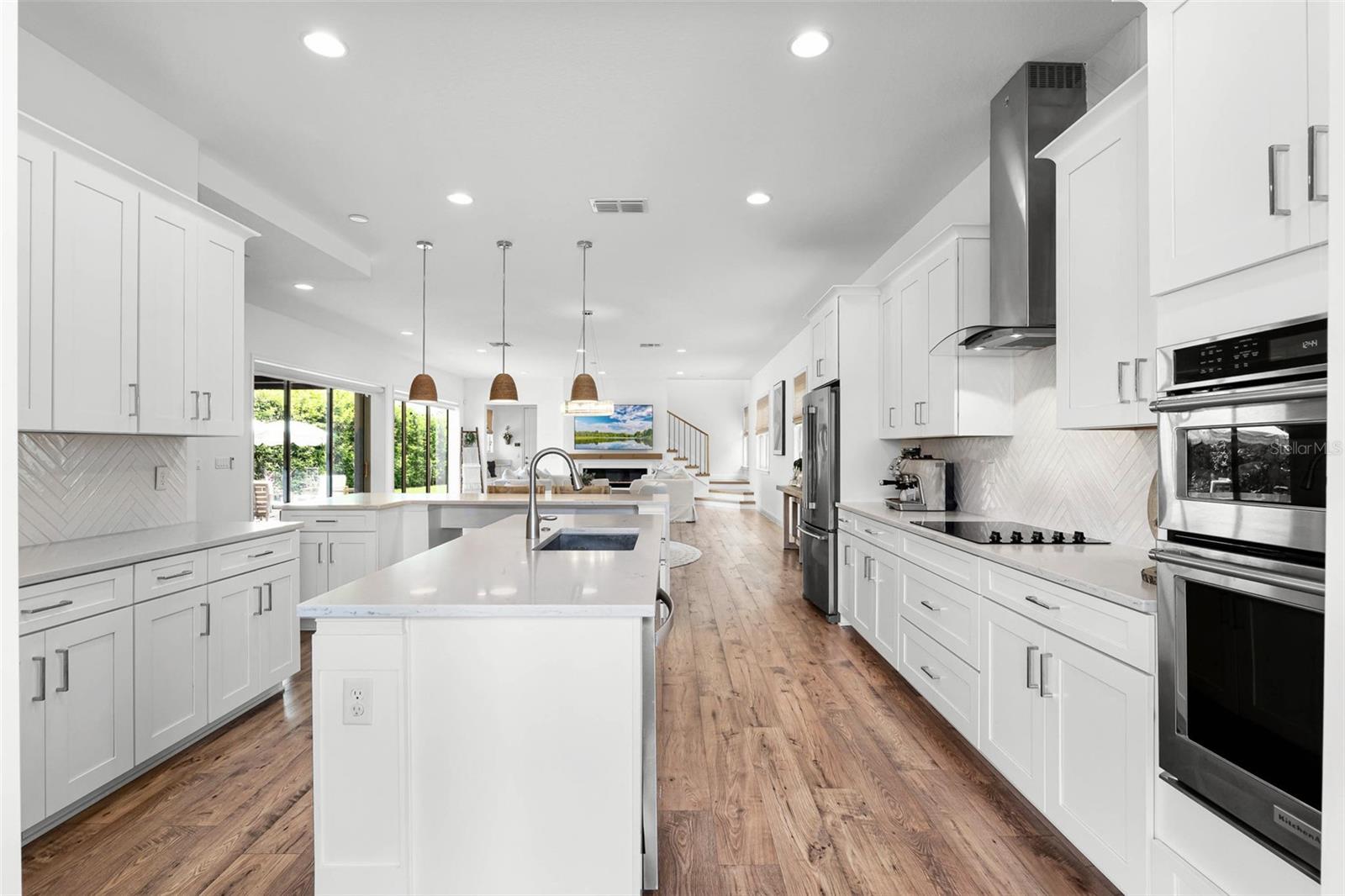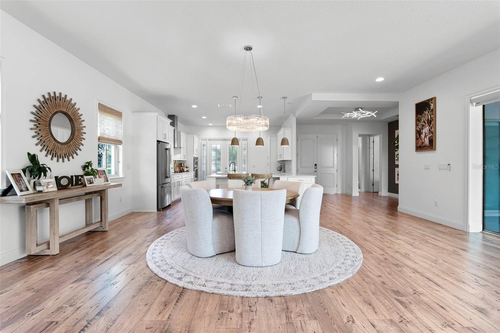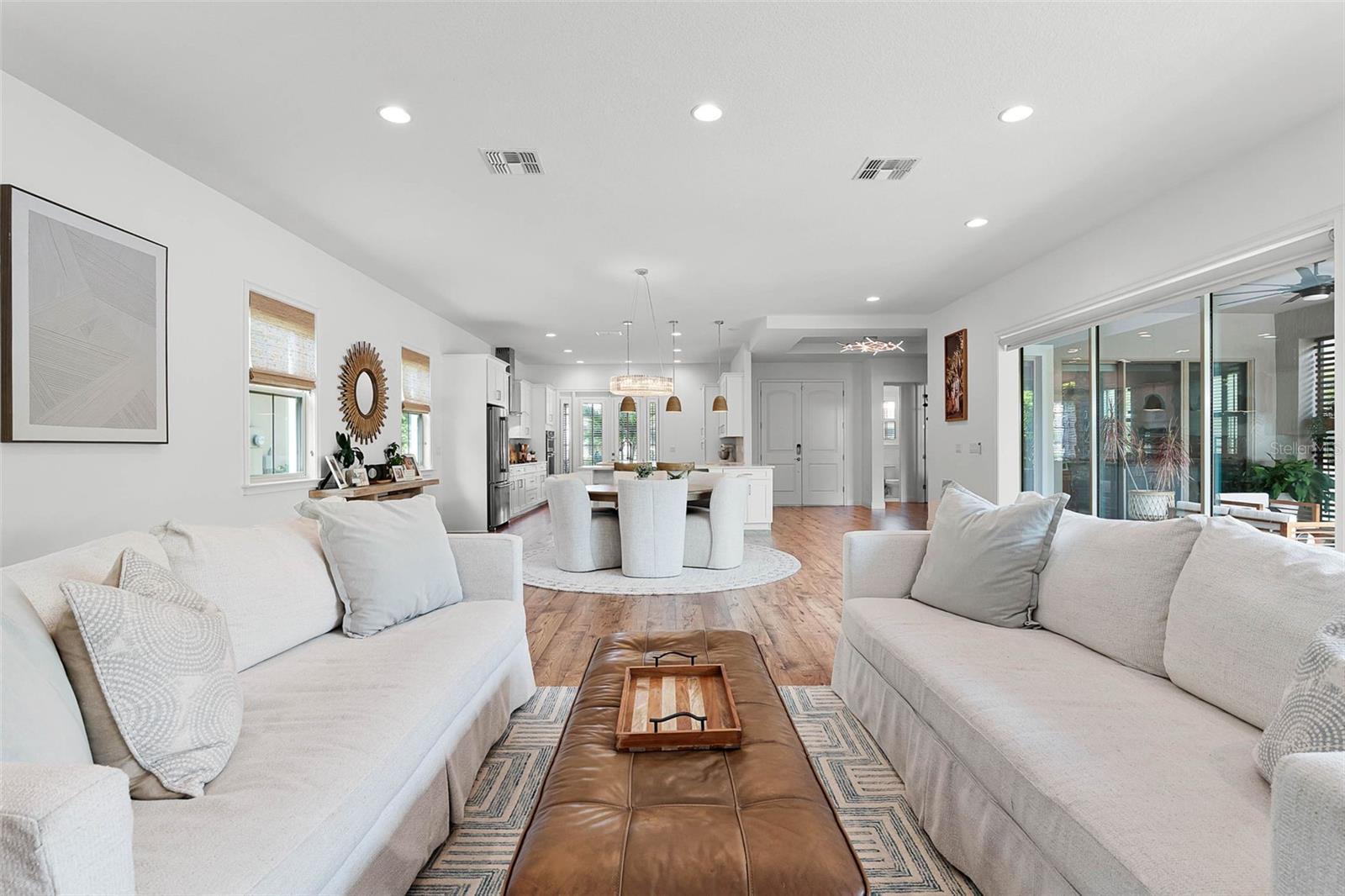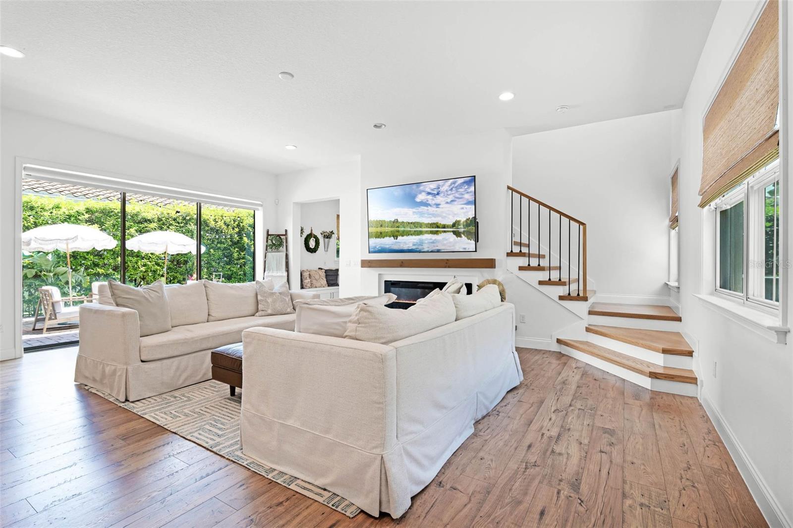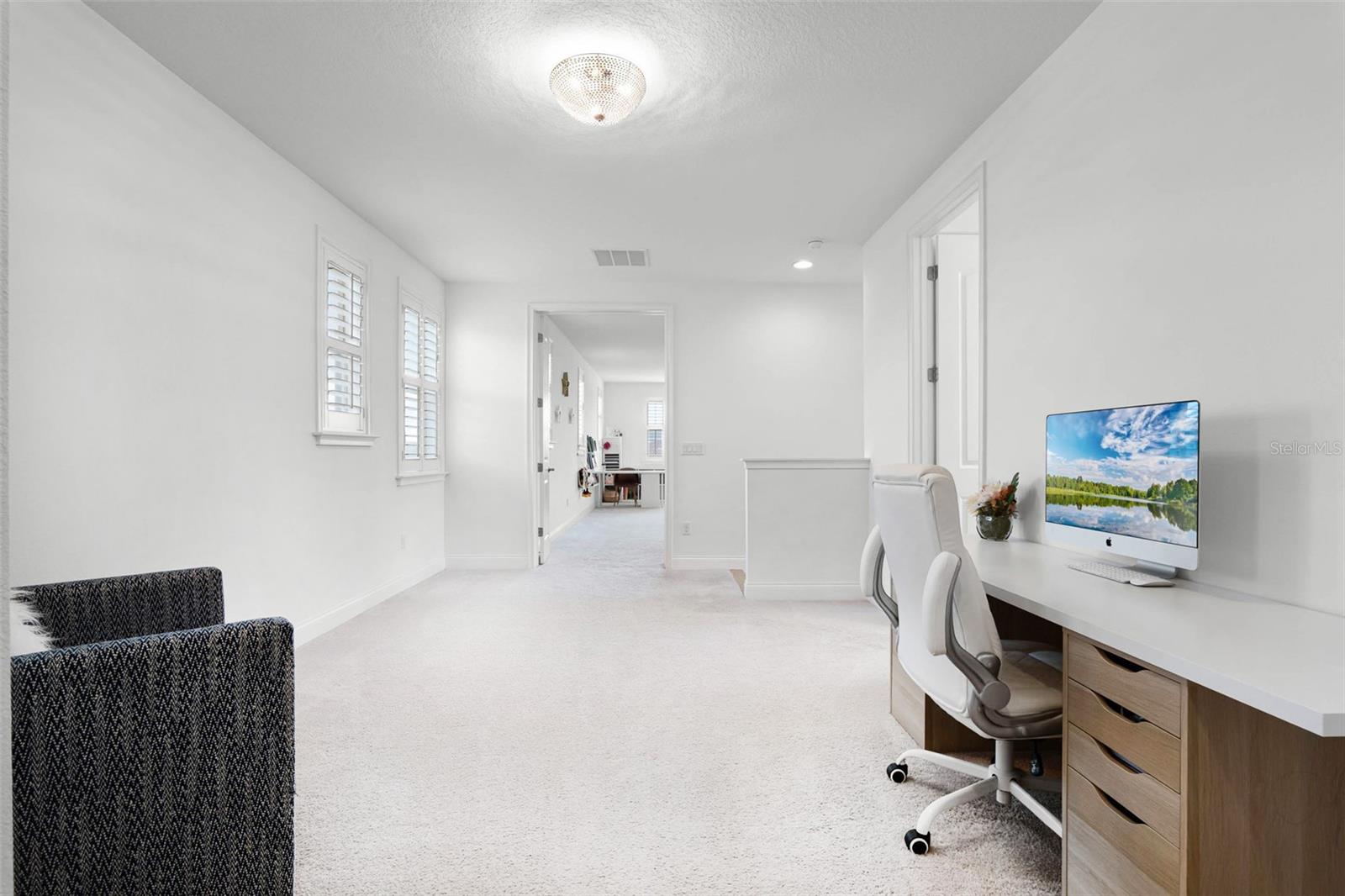 Uma ou mais fotos foram praticamente encenadas. Escondido na comunidade de golfe de Eagle Creek, esta residência impressionante reúne elegância, conforto e um retiro de quintal. Este impressionante casa de 5 quartos e 4 banheiros se estende por 4.211 pés quadrados e oferece uma mistura perfeita de luxo, conforto e design atencioso. Entre em uma varanda frontal coberta de dois andares e seja recebida por uma extensa planta aberta cheia de luz natural. O nível principal mostra o piso de Mohawk Revwood - uma superfície durável e elegante que traz calor e elegância para a casa. A cozinha gourmet é uma verdadeira peça, cuidadosamente projetada para inspirar a criatividade culinária e o entretenimento sem esforço. Possui ilhas duplas-uma dedicada a preparar e cozinhar com uma pia embutida e armazenamento abundante, e o outro ideal para refeições casuais e hóspedes. O espaço é elevado por bancadas de quartzo luxuosas, armários de agitadores brancos com hardware inoxidável e combinação de forno de parede/microondas de topo de linha de topo e geladeira, todos banhados em luz natural. Seja preparando um jantar tranquilo em família ou entretendo uma multidão, esta cozinha oferece elegância, função e fluxo. A sala da família gira em torno de uma lareira elétrica embutida com uma manto de madeira e apresenta portas deslizantes duplas completamente retráteis que se abrem para um espaço tranquilo ao ar livre. Saia de um espaço de estar ao ar livre excepcional que parece seu próprio retiro privado. O pátio coberto é perfeito para diversão durante todo o ano, com uma segunda lareira elétrica emoldurada por pedra empilhada elegante e ladeada por plantadores personalizados de madeira. A área flui sem esforço para o quintal lindamente paisagístico, aprimorado com palmeiras exuberantes, sebes doces de viburno e muito espaço para uma futura piscina personalizada, criando um cenário pitoresco para relaxar, divertir ou jantar sob as estrelas. The backyard is fully fenced with 5” black aluminum fencing and enhanced by sweet viburnum shrubs for a natural hedge and palm trees in the front and back. The first floor includes a bedroom and full bath, perfect for guests or a home office, complete with built-in cabinets and floating shelves & private access to a side courtyard. A custom drop zone, located just inside from the garage, adds everyday convenience. Upstairs, you'll find a spacious loft, a Bônus enorme com portas duplas e uma lavanderia de grandes dimensões com armários embutidos, bancadas de quartzo e uma pia de lavanderia. Para a lavanderia. Perfeito para passeios pacíficos e reuniões de bairro.