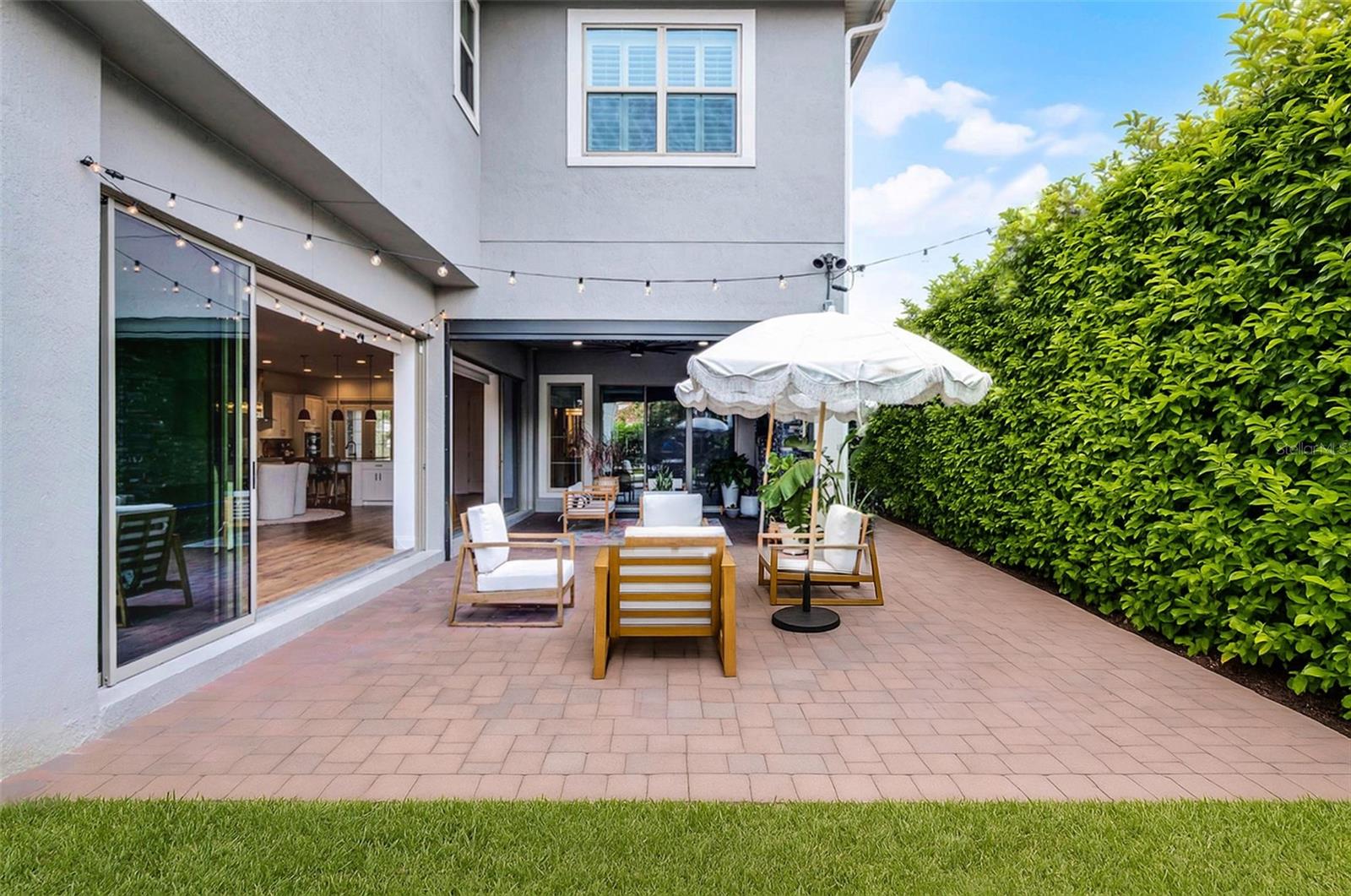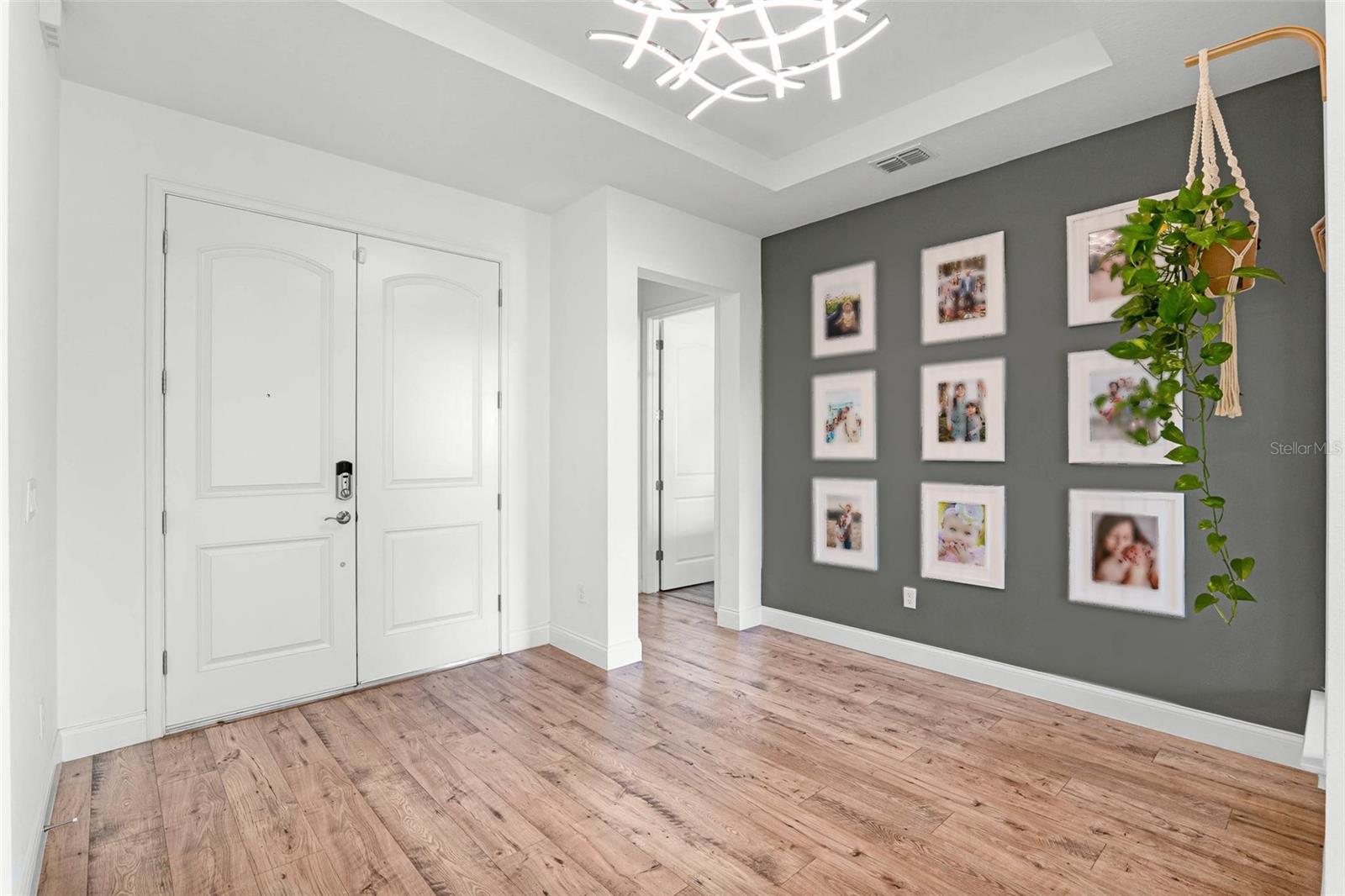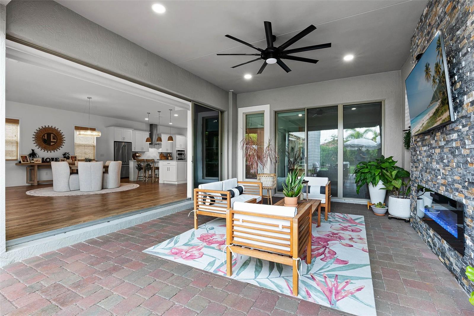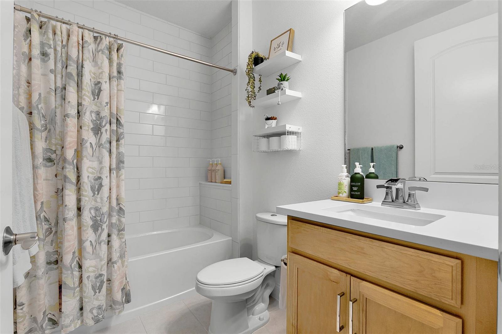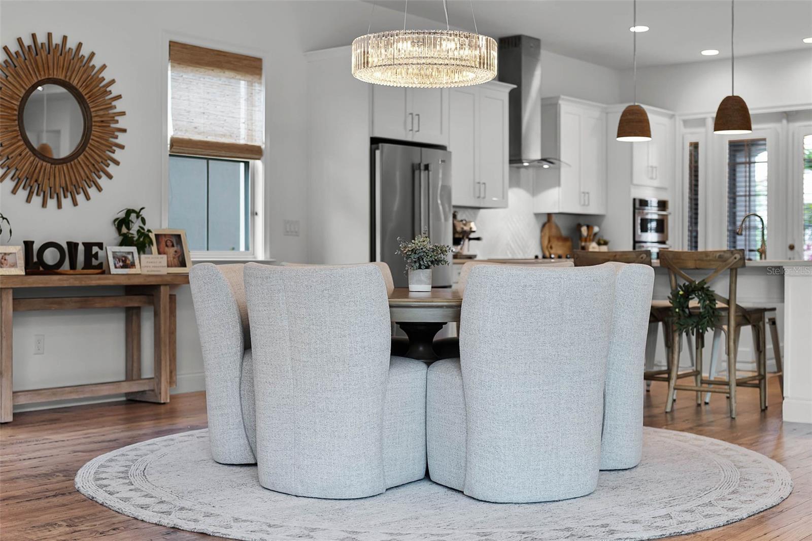 Uma ou mais fotos foram praticamente encenadas. Escondido na comunidade de golfe de Eagle Creek, esta residência impressionante reúne elegância, conforto e um retiro de quintal. Este impressionante casa de 5 quartos e 4 banheiros se estende por 4.211 pés quadrados e oferece uma mistura perfeita de luxo, conforto e design atencioso. Entre em uma varanda frontal coberta de dois andares e seja recebida por uma extensa planta aberta cheia de luz natural. O nível principal mostra o piso de Mohawk Revwood - uma superfície durável e elegante que traz calor e elegância para a casa. A cozinha gourmet é uma verdadeira peça, cuidadosamente projetada para inspirar a criatividade culinária e o entretenimento sem esforço. Possui ilhas duplas-uma dedicada a preparar e cozinhar com uma pia embutida e armazenamento abundante, e o outro ideal para refeições casuais e hóspedes. O espaço é elevado por bancadas de quartzo luxuosas, armários de agitadores brancos com hardware inoxidável e combinação de forno de parede/microondas de topo de linha de topo e geladeira, todos banhados em luz natural. Seja preparando um jantar tranquilo em família ou entretendo uma multidão, esta cozinha oferece elegância, função e fluxo. A sala da família gira em torno de uma lareira elétrica embutida com uma manto de madeira e apresenta portas deslizantes duplas completamente retráteis que se abrem para um espaço tranquilo ao ar livre. Saia de um espaço de estar ao ar livre excepcional que parece seu próprio retiro privado. O pátio coberto é perfeito para diversão durante todo o ano, com uma segunda lareira elétrica emoldurada por pedra empilhada elegante e ladeada por plantadores personalizados de madeira. A área flui sem esforço para o quintal lindamente paisagístico, aprimorado com palmeiras exuberantes, sebes doces de viburno e muito espaço para uma futura piscina personalizada, criando um cenário pitoresco para relaxar, divertir ou jantar sob as estrelas. The backyard is fully fenced with 5” black aluminum fencing and enhanced by sweet viburnum shrubs for a natural hedge and palm trees in the front and back. The first floor includes a bedroom and full bath, perfect for guests or a home office, complete with built-in cabinets and floating shelves & private access to a side courtyard. A custom drop zone, located just inside from the garage, adds everyday convenience. Upstairs, you'll find a spacious loft, a Bônus enorme com portas duplas e uma lavanderia de grandes dimensões com armários embutidos, bancadas de quartzo e uma pia de lavanderia. Para a lavanderia. Perfeito para passeios pacíficos e reuniões de bairro.