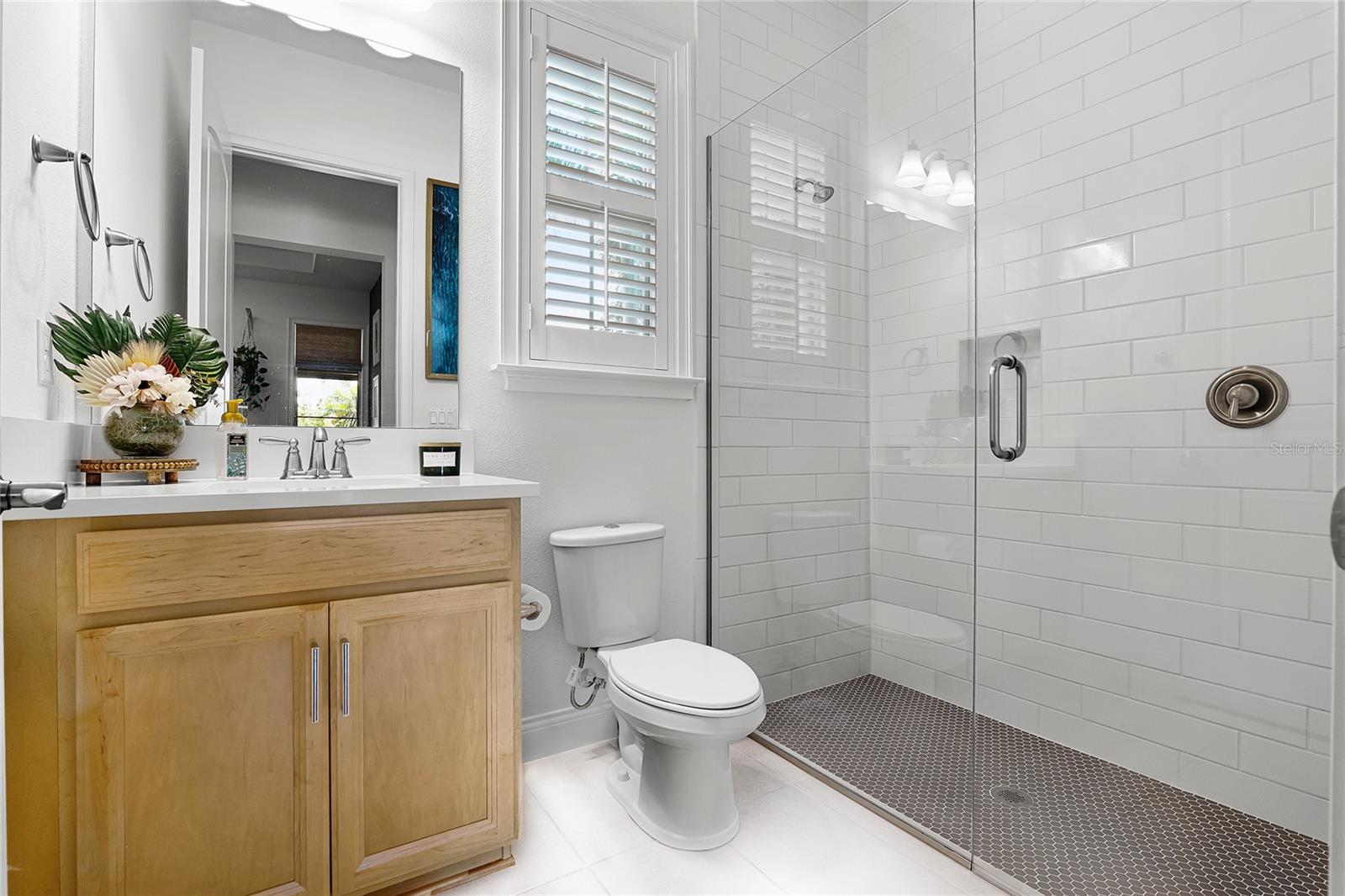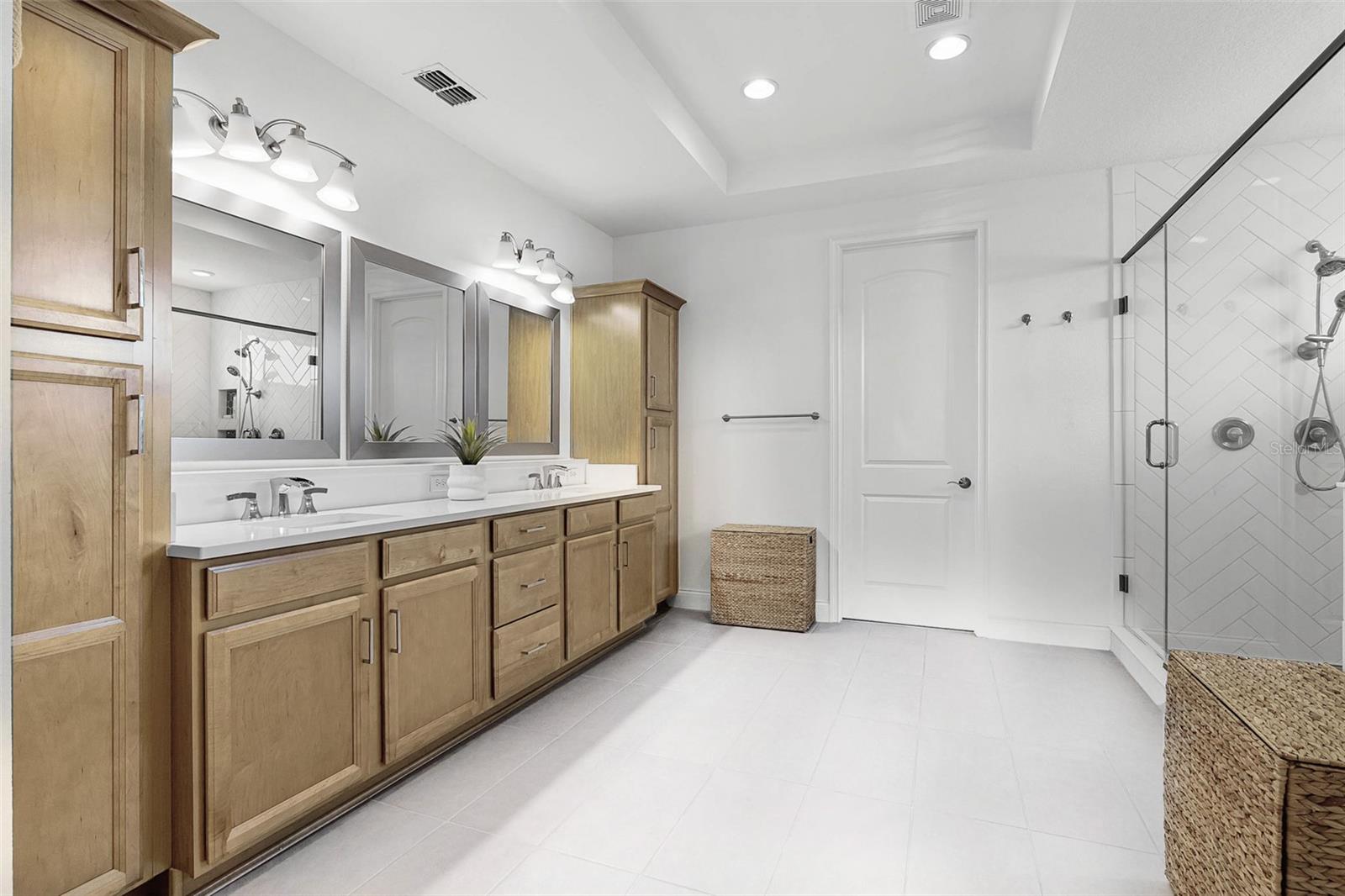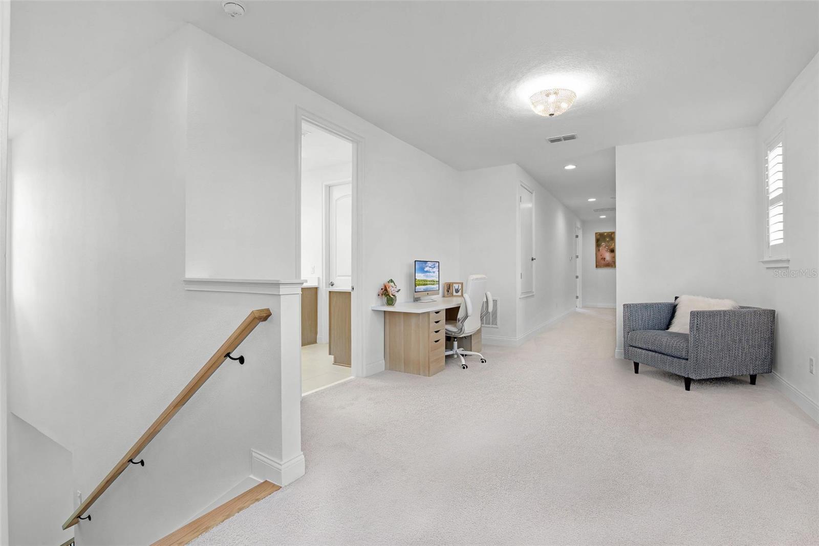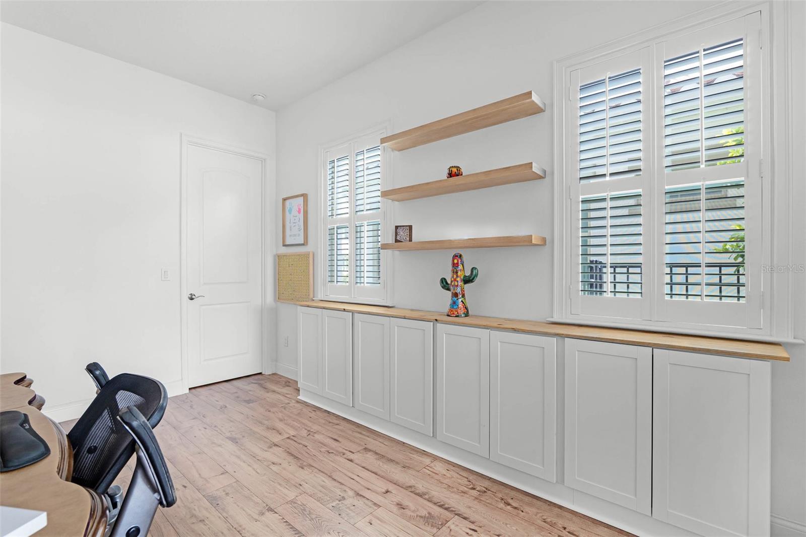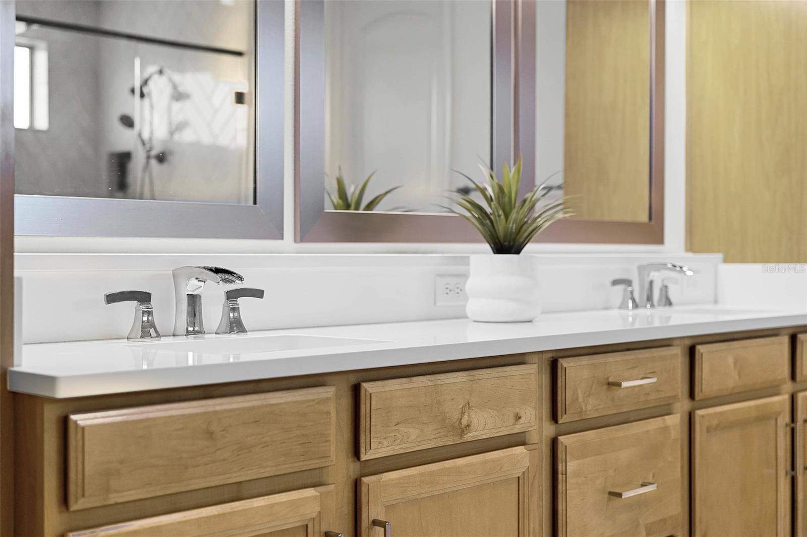 Uma ou mais fotos foram praticamente encenadas. Escondido na comunidade de golfe de Eagle Creek, esta residência impressionante reúne elegância, conforto e um retiro de quintal. Este impressionante casa de 5 quartos e 4 banheiros se estende por 4.211 pés quadrados e oferece uma mistura perfeita de luxo, conforto e design atencioso. Entre em uma varanda frontal coberta de dois andares e seja recebida por uma extensa planta aberta cheia de luz natural. O nível principal mostra o piso de Mohawk Revwood - uma superfície durável e elegante que traz calor e elegância para a casa. A cozinha gourmet é uma verdadeira peça, cuidadosamente projetada para inspirar a criatividade culinária e o entretenimento sem esforço. Possui ilhas duplas-uma dedicada a preparar e cozinhar com uma pia embutida e armazenamento abundante, e o outro ideal para refeições casuais e hóspedes. O espaço é elevado por bancadas de quartzo luxuosas, armários de agitadores brancos com hardware inoxidável e combinação de forno de parede/microondas de topo de linha de topo e geladeira, todos banhados em luz natural. Seja preparando um jantar tranquilo em família ou entretendo uma multidão, esta cozinha oferece elegância, função e fluxo. A sala da família gira em torno de uma lareira elétrica embutida com uma manto de madeira e apresenta portas deslizantes duplas completamente retráteis que se abrem para um espaço tranquilo ao ar livre. Saia de um espaço de estar ao ar livre excepcional que parece seu próprio retiro privado. O pátio coberto é perfeito para diversão durante todo o ano, com uma segunda lareira elétrica emoldurada por pedra empilhada elegante e ladeada por plantadores personalizados de madeira. A área flui sem esforço para o quintal lindamente paisagístico, aprimorado com palmeiras exuberantes, sebes doces de viburno e muito espaço para uma futura piscina personalizada, criando um cenário pitoresco para relaxar, divertir ou jantar sob as estrelas. The backyard is fully fenced with 5” black aluminum fencing and enhanced by sweet viburnum shrubs for a natural hedge and palm trees in the front and back. The first floor includes a bedroom and full bath, perfect for guests or a home office, complete with built-in cabinets and floating shelves & private access to a side courtyard. A custom drop zone, located just inside from the garage, adds everyday convenience. Upstairs, you'll find a spacious loft, a Bônus enorme com portas duplas e uma lavanderia de grandes dimensões com armários embutidos, bancadas de quartzo e uma pia de lavanderia. Para a lavanderia. Perfeito para passeios pacíficos e reuniões de bairro.