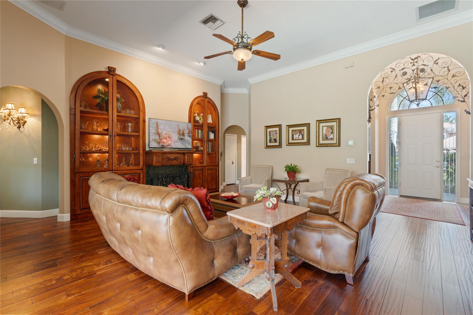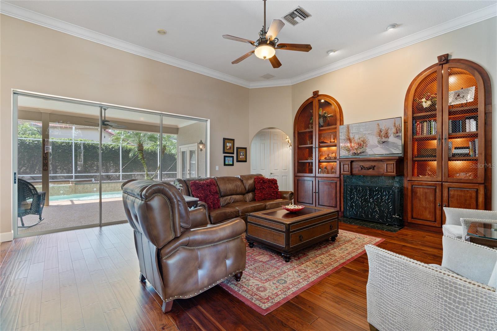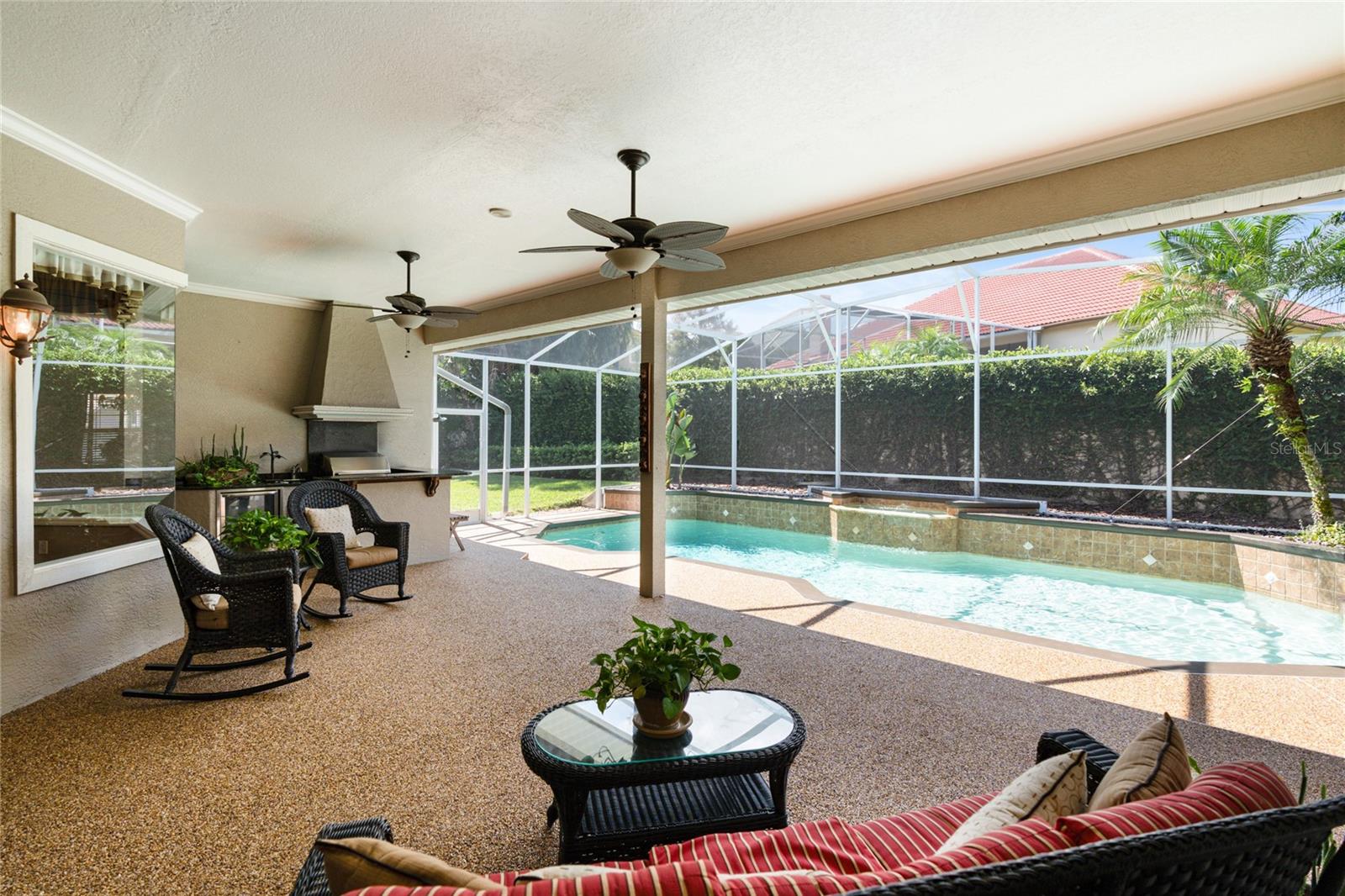 Bem-vindo à sua propriedade personalizada no desejável e virtual portão de guarda Palma Vista, situado no imaculado Campo de Golfe Metrowest Country Club. Apresentando uma piscina privada murada com tela que não é negligenciada por nenhum dos vizinhos e uma vista imponente, este lote elevado tem quase 1/3 de acre e leva você a um hall de entrada acolhedor e um piso plano aberto com ricos pisos de travertino e madeira realçados por sancas e motivos florais de videira em ferro forjado personalizados que adornam os arcos arquitetônicos. A entrada é ladeada pela sala de estar formal que servia de escritório e pela sala de jantar formal que está convenientemente localizada ao lado da cozinha. Sua cozinha gourmet bem equipada e atualizada apresenta eletrodomésticos de aço inoxidável atualizados, uma ilha de cozinha, despensa, armários de cerejeira sólidos e bancadas atualizadas que se estendem até uma barra de café da manhã que é ideal para servir aos seus convidados suas criações culinárias mais tentadoras; tornando esta planta aberta ideal para entretenimento. O recanto de café da manhã adjacente tem vista para o sereno quintal privativo e para a piscina e se abre para a acolhedora sala de família com uma aconchegante lareira a lenha ladeada por estantes personalizadas de madeira trabalhada com portas de arame de latão cruzadas personalizadas; o espaço ideal para exibir seus itens colecionáveis e artefatos mais valiosos. O espaçoso retiro principal sereno está localizado em uma configuração de planta dividida e possui 2 closets espaçosos e vistas serenas de sua piscina cintilante e quintal privativo. O banheiro principal da suíte possui 2 pias altas separadas de granito, armários de madeira personalizados, banheira de hidromassagem e toalete e chuveiro separados com piso de mosaico, chuveiros duplos e paredes de travertino do chão ao teto. O quarto 2 está escondido no lado oposto e possui um banheiro adjacente, tornando-o ideal para seus quartos de hóspedes. Os quartos 3 e 4 compartilham o terceiro banheiro e são adjacentes à lavanderia e à enorme garagem com entrada lateral para 3 carros. A varanda espaçosa com sombra e tela possui portas de vidro deslizantes dobráveis que abrem toda a planta baixa para a varanda; ideal para entretenimento. O charmoso deck de pedra do rio leva você a uma piscina cintilante com uma nova bomba de piscina e uma cozinha de verão totalmente equipada e churrasqueira e exaustor infravermelho Solaire; seu oásis privado ideal para escapar e desfrutar de sua bebida favorita. Tudo isso em uma excelente localização para escolas com classificação A e perto das principais rodovias, atrações da área, lojas, Campus Oeste do Valencia Community College e a poucos minutos do Aeroporto Internacional de Orlando. Agende hoje mesmo sua exibição privada...