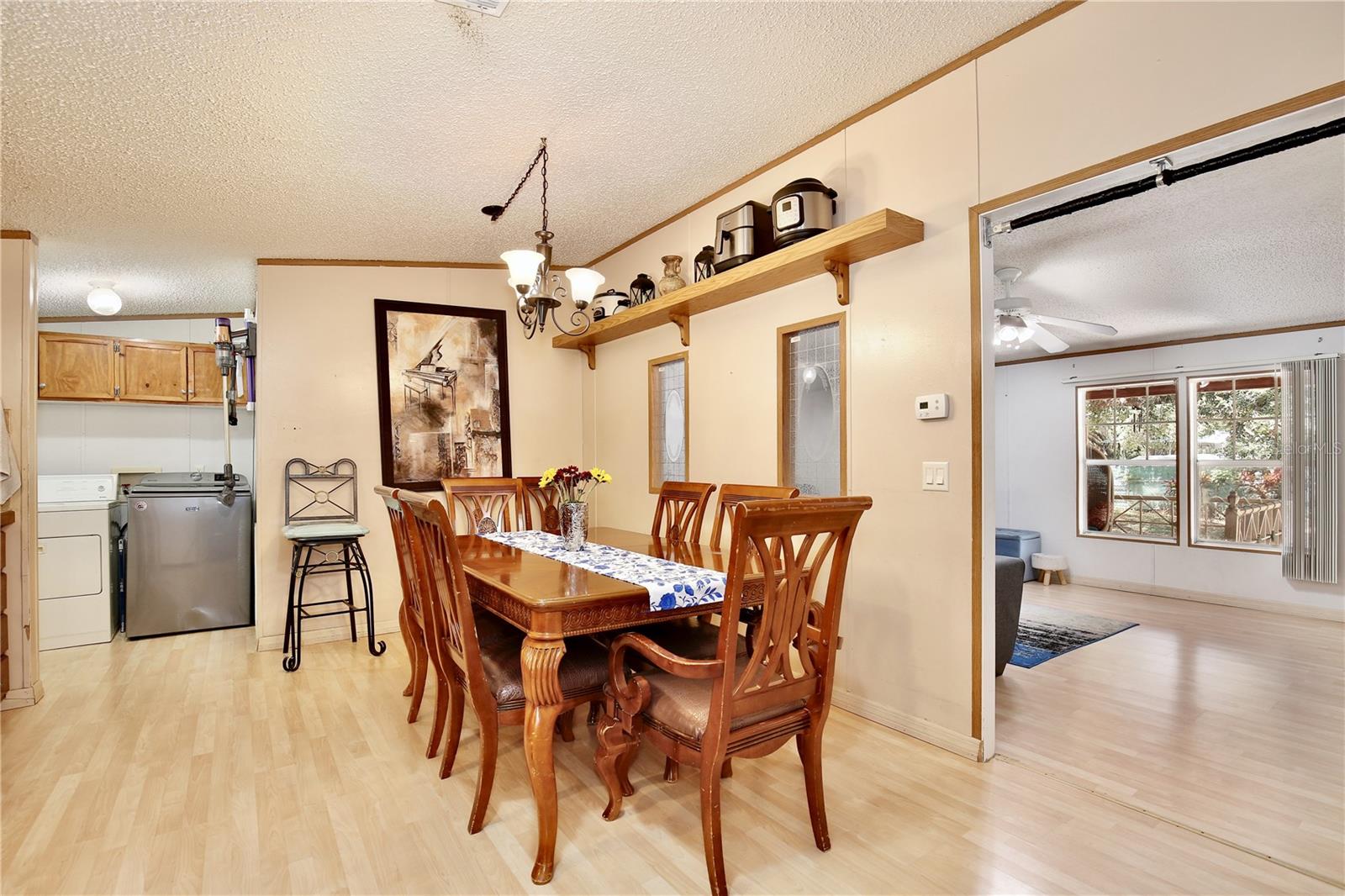 Esta casa de três quartos fabricava dois banheiros, aninhada no final de uma longa estrada privada, oferece privacidade e incrível vida ao ar livre. Abrace uma vida de tranquilidade em mais de meio hectare de terra adaptada para aqueles que têm paixão por jardinagem, propriedade de propriedade, reuniões ao ar livre, esportes a motor e muito mais! Os entusiastas do ar livre se divertirão com as varandas da frente e dos fundos, perfeitas para apreciar o sol da Flórida ou hospedar churrascos. A propriedade inclui uma garagem sombreada para dois veículos, três habitações de armazenamento e duas gestas de frango, apresentando uma excelente oportunidade para fazer uma propriedade, criar galinhas e cultivar seus próprios produtos. Para aqueles que amam o Motorsports, você apreciará a proximidade com o Orlando Speed World e o Orlando MX Park, oferecendo corridas off-road. Esta residência convidativa apresenta uma espaçosa área de estar banhada em luz natural, com tetos abobadados que aumentam o sentimento de abertura. A sala de estar transita perfeitamente para uma cozinha bem equipada, completa com um espaço para refeições, armários de madeira, backsplash de telha e uma janela acima da pia que oferece uma vista pitoresca do ar livre. Uma despensa conveniente e acesso à área de lavanderia e à varanda de volta a este espaço. A suíte primária é um refúgio de relaxamento, oferecendo um closet, pias duplas com espaço de balcão generoso, uma combinação de banheira/chuveiro e um chuveiro de porta de vidro adicional. Dois quartos adicionais fornecem um retiro acolhedor para a família e os amigos, complementados por um banheiro de hóspedes com uma combinação de banheira/chuveiro e uma vaidade com amplo espaço de balcão. Apesar de seu charme rural, esta propriedade está convenientemente localizada perto do East Colonial Drive e do Waterford Lakes Town Center, oferecendo fácil acesso a lojas e restaurantes. Este é um lar onde as memórias são feitas e os jardins florescem. Agende sua exibição hoje e entre em uma vida em que a recompensa da natureza está do lado de fora da sua porta!