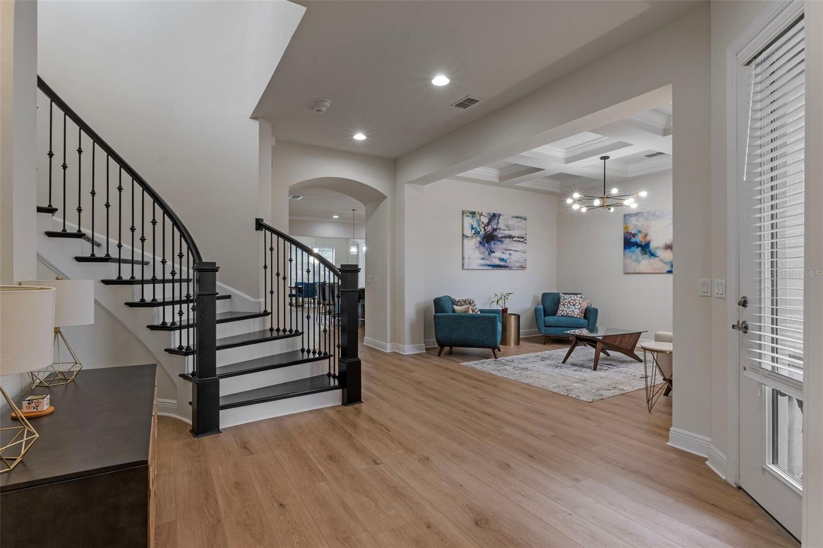 Localizada na prestigiada comunidade Lake Nona de Orlando, esta residência excepcional mostra a desejável planta de piso de Sunchase, oferecendo espaços de estar cuidadosamente projetados e acabamentos elegantes por toda parte. Aumentado por paisagismo impressionante, esta casa exala apelo a freio a partir do momento em que você chega. Um pátio fechado e privado recebe você na entrada frontal e define o tom do interior refinado. Lá dentro, você é recebido por um grande hall de entrada que abre para uma planta baixa, com piso de tábuas de vinil de luxo e detalhes arquitetônicos personalizados por toda parte. A frente da casa oferece um escritório em casa dedicado e uma sala de estar formal - perfeita para trabalho remoto e entretenimento. A cozinha do chef está equipada com um layout de gabinete superior expandido, uma faixa de gás, fornos duplos e um design exclusivo da ilha ideal para refeições casuais. Uma despensa de mordomo escondida oferece espaço e armazenamento de preparação adicionais para aparelhos de bancada. Logo na cozinha, uma grande sala familiar e uma sala de jantar formal oferecem acesso duplo ao pátio de pavimentação exibido, uma configuração ideal para entretenimento interno outdoor. Um quarto do primeiro andar pode servir como um primário secundário, completo com um banheiro privativo para o conforto e a privacidade dos visitantes. Além disso, um espaçoso mudroom oferece um espaço de transição funcional entre a casa e a garagem. No andar de cima, um loft generoso oferece o espaço flexível ideal para uma sala de família ou sala de jogos secundários. A adição de um segundo escritório neste andar é perfeita para famílias que trabalham em casa, pois fornece a cada membro um espaço dedicado para se concentrar em suas tarefas. A luxuosa suíte primária possui uma varanda de tela privada e um banheiro privativo inspirado em spa com acabamentos elegantes. Três quartos adicionais completam o piso superior-dois compartilham um banheiro completo e cada um possui armários, enquanto o quinto quarto inclui seu próprio closet de suíte e walk-in, ideal para uma suíte de convidado ou adolescente. A garagem de três carros de grandes dimensões possui piso epóxi e espaço em tandem, permitindo espaço para um quarto veículo ou uma ampla área de armazenamento. Esta casa oferece funcionalidade e estilo em um dos bairros mais procurados de Orlando. O Villagewalk em Lake Nona é uma comunidade planejada, oferecendo vida no estilo resort. Pontes pitorescas e canais conectam comodidades como delicatessen, posto de gasolina e centro da cidade. Desfrute de trilhas iluminadas, quadras esportivas, piscinas aquecidas e um centro de fitness de 24 horas. As famílias se beneficiam de escolas classificadas por A e sua localização perto da Medical City, com o New Adventhealth Lake Nona Hospital e o Aeroporto Internacional de Orlando, é ideal para viajantes. Os estúdios da Disney, SeaWorld e Universal estão a uma curta distância de carro. As taxas do HOA incluem atendimento ao gramado, internet, cabo e alarme de segurança monitorado para uma vida sem complicações.