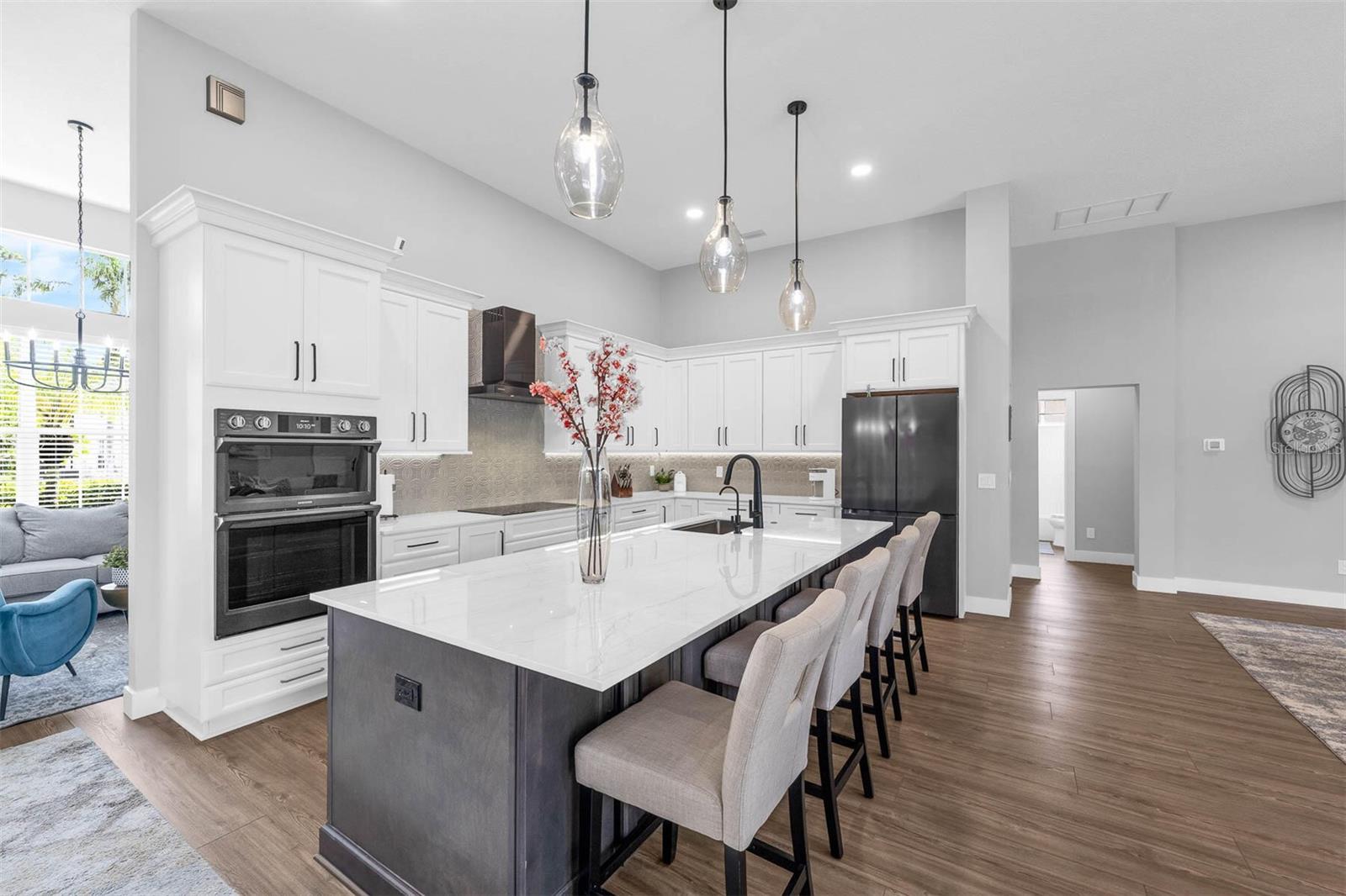 Meticulosamente renovada em casa de um andar com acabamentos de grife, bem-vindo a esta casa de piscina impressionante e pronta para baixo, atualizada cuidadosamente com acabamentos sofisticados por toda parte. Desde o momento em que você passa pela nova porta da frente, apreciará a atenção aos detalhes e as atualizações modernas em todos os quartos. A casa possui uma cozinha totalmente remodelada, com armários personalizados, utensílios de aço elegante, bancadas de quartzo e um cooktop de indução - perfeito para cozinhar e divertir. Novos pisos elegantes, ladrilhos de porcelana de grife, novas portas internas e acabamentos e um novo teto (2021) elevam todo o espaço. A espaçosa sala grande oferece piso de baixa manutenção, tons motorizados e iluminação atualizada, criando uma atmosfera convidativa para a vida cotidiana. Uma sala de frente versátil serve como uma suíte privada de convidado ou escritório em casa. Desfrute de um estilo de resort em sua suíte primária com uma área de estar prolongada, um sistema de fitness tonal e vistas serenas da piscina aquecida e espumante. Todos os três banheiros foram completamente remodelados com design luxuoso e atemporal. A lavanderia que aceita animais de estimação possui um chuveiro de cachorro personalizado, armários embutidos e trabalho elegante de azulejos. Esta casa possui uma planta baixa desejável de três vias, com dois quartos grandes adicionais e um banheiro impressionantemente atualizado. As atualizações adicionais incluem: novo aquecedor de piscina, novas calhas. Fiação de som surround de água de água inteira Fiação do aquecedor híbrido de água de 75 galões em persianas personalizadas em todo o piso de garagem com cobertura epóxi armazenamento no chão e uma nova escada do sótão Lush, paisagismo tropical para privacidade completa localizada em uma área procurada com escolas de melhor maneira. University Acres