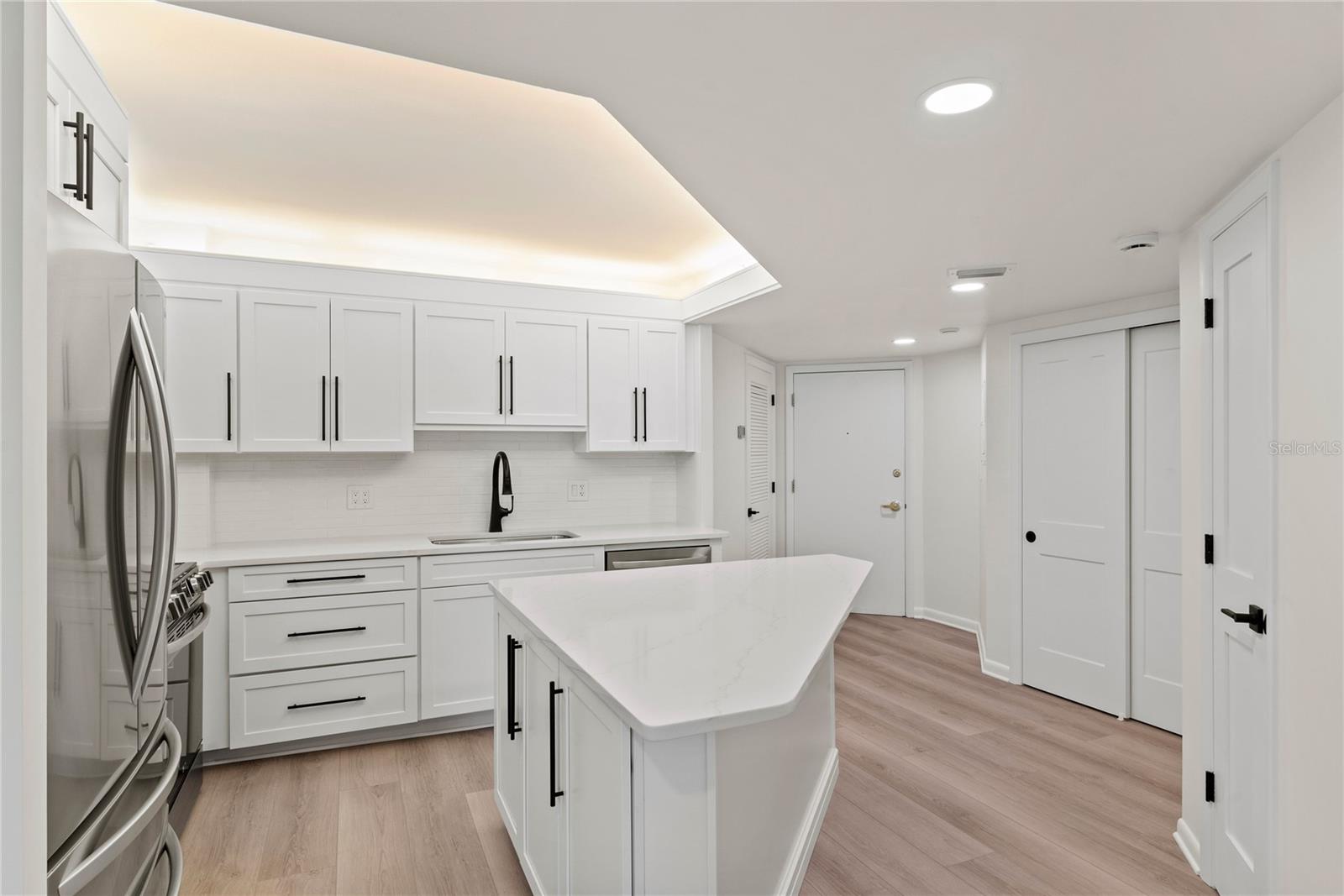 Uma ou mais fotos foram praticamente encenadas. Este condomínio alto de 2 quartos e dois banheiros foi completamente remodelado do chão ao teto com hardware e acabamentos selecionados por designers. Com impressionantes vistas panorâmicas de 270 graus da cidade bonitas, incluindo nascer e pôr do sol, a piscina e o parque, essas unidades de esquina raramente estão disponíveis! A unidade 402 possui todas as novas janelas PGT isoladas e com portas deslizantes, mantendo o espaço quieto e frio. Ao entrar na Unidade 402, você notará imediatamente as atualizações de última geração, incluindo uma cozinha com armários de agitadores de madeira branca, piso LVP de coleção de madeira anjo, novos tetos, iluminação embutida, tinta fresca por toda parte e belas vistas como pano de fundo. A cozinha foi atenciosa para o uso ideal, com uma generosa ilha de preparação com armazenamento, bancadas de quartzo branco de 3 cm, aparelhos inteligentes de aço inoxidável LG e backsplash de ladrilhos de grife. A área de jantar oferece muito espaço para entretenimento, um novo lustre e flui perfeitamente para a espaçosa sala de estar. A porta deslizante da sala apresenta uma nova tonalidade automática de rolos para maior conveniência. Saia e relaxe na sua varanda envolvente enquanto experimenta as vistas deslumbrantes do horizonte do centro da cidade. A suíte primária de grandes dimensões possui um closet Walk-in, aprimorado com novos prateleiras e suspensões de profundidade ajustáveis de 17 polegadas e novos tons de blecaute. O banheiro privativo da suíte primária remodelada inclui um maravilhoso espaço de vaidade, banheira nova com ladrilhos de grife, vaso sanitário de altura de conforto e elegantes acessórios com compensação de ouro. O banheiro privado de segurança privado do segundo quarto inclui um espaçoso chuveiro, nova vaidade, ladrilho de grife e banheiro de altura de conforto. Atualizações adicionais importantes incluem um novo sistema HVAC com termostato inteligente Wi-Fi, re-reabastecimento completo de toda a unidade, novo aquecedor de água e cabeças de aspersão de “não comparecimento”. Cada piso do edifício também possui um saguão e lavanderia comum. O Park Lake Towers é um arranha-céus de luxo que oferece gerenciamento diário no local, segurança de segurança 24 horas, academia, sauna, sauna a vapor, sala de recreação/conferência, estacionamento subestimado e uma piscina olímpica júnior-perfeita para as voltas de natação. Esta unidade inclui um estacionamento de garagem atribuído, com muito estacionamento de hóspedes disponível no nível principal. As taxas do HOA cobrem TV a cabo padrão, internet de fibra, água, esgoto, descarte de lixo, controle de pragas e manutenção externa. O HOA é financeiramente sólido com reservas fortes e concluiu recentemente um estudo de Reserva de Integridade Estrutural, disponível mediante solicitação de sua paz de espírito. Park Lake Towers fica a uma curta caminhada conveniente até o lago Eola, atividades no centro da cidade e muitos locais de refeições requintadas. Agende sua exibição hoje para ver uma das melhores unidades do edifício.