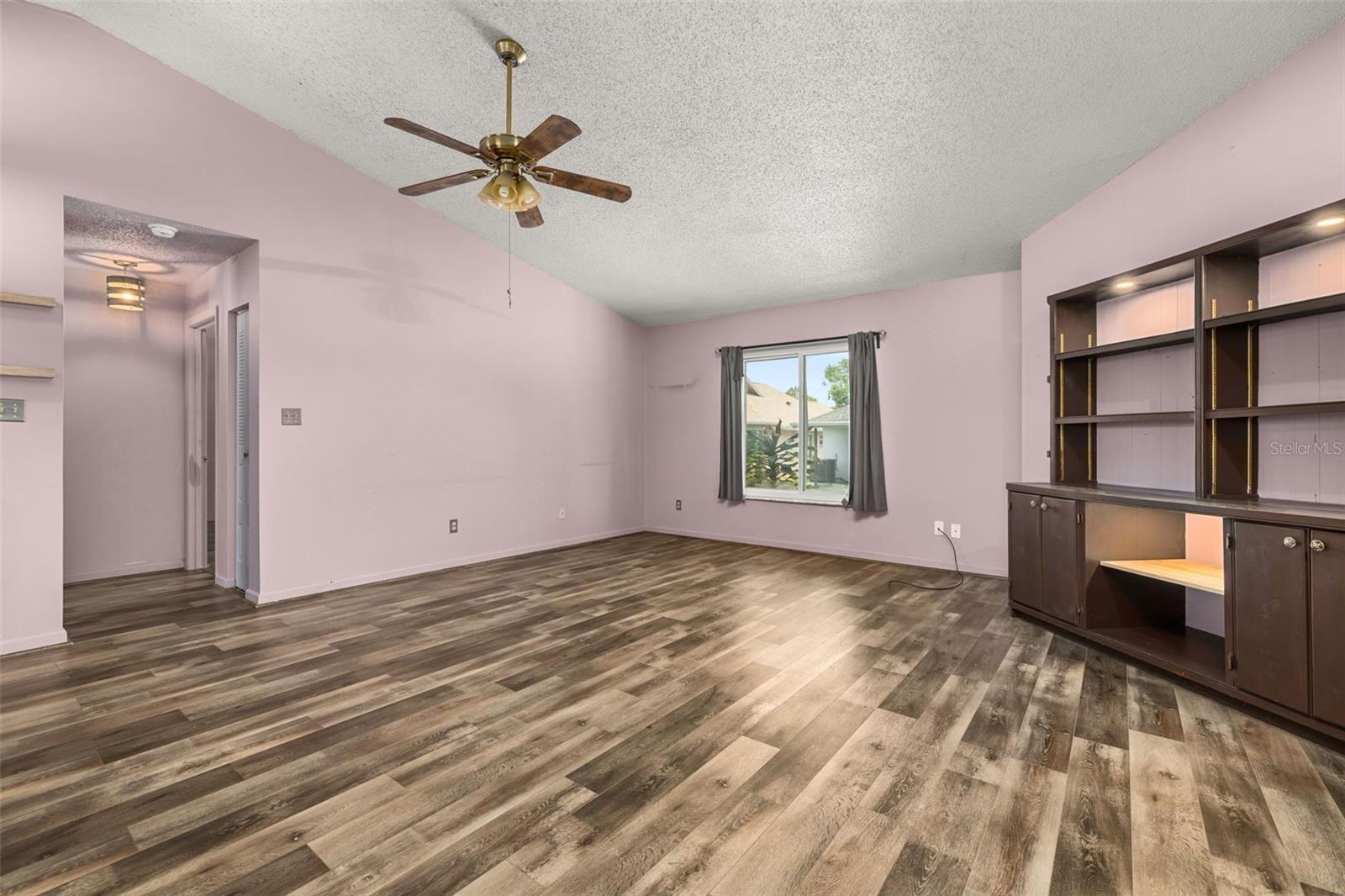 Bem -vindo para casa neste sonho atualizado de Williamsburg! Aproveite o fato de que o baixo HOA mantém o gramado, permitindo que você viva um estilo de vida muito mais vibrante, desfrutando do melhor da Flórida no centro da Flórida. Ao se aproximar da casa, admire os cobertos e exibidos na varanda da frente que o cumprimenta. Entre e encontre um espaço aberto com tetos abobadados e grandes janelas. O construtor teria dito que esse espaço é a sala de estar e a sala de jantar, mas permita que sua criatividade funcione selvagem e projete o espaço para acomodar seus desejos e necessidades. Fora de um lado deste espaço aberto, há uma cozinha de cozinha com aparelhos atualizados, um backsplash personalizado e bancadas de pedra. Continue pela cozinha e encontre um espaço bônus pronto para ser transformado em seu escritório em casa, sala de jogos, sala de hobby ou o que você deseja. Do outro lado do espaço aberto, estão os dois quartos. A suíte primária tem um banheiro na suíte e tem vista para o quintal. O segundo quarto tem vista para o quintal da frente e utiliza o banheiro ao lado dele que também pode ser usado pelos hóspedes do dia. Saia onde seus sonhos de entretenimento ao ar livre podem ser realizados no espaçoso quintal. A uma curta distância é o centro de amenidade exclusivo dos residentes de Williamsburg para o seu prazer. Williamsburg dá as vibrações da antiga Flórida enquanto estava perfeitamente localizado no meio das atrações mais famosas de Orlando. Também situado principalmente perto de todas as principais vias, você pode chegar onde quer que você gostaria de ir na Flórida. Pergunte hoje para fazer desta jóia a sua!