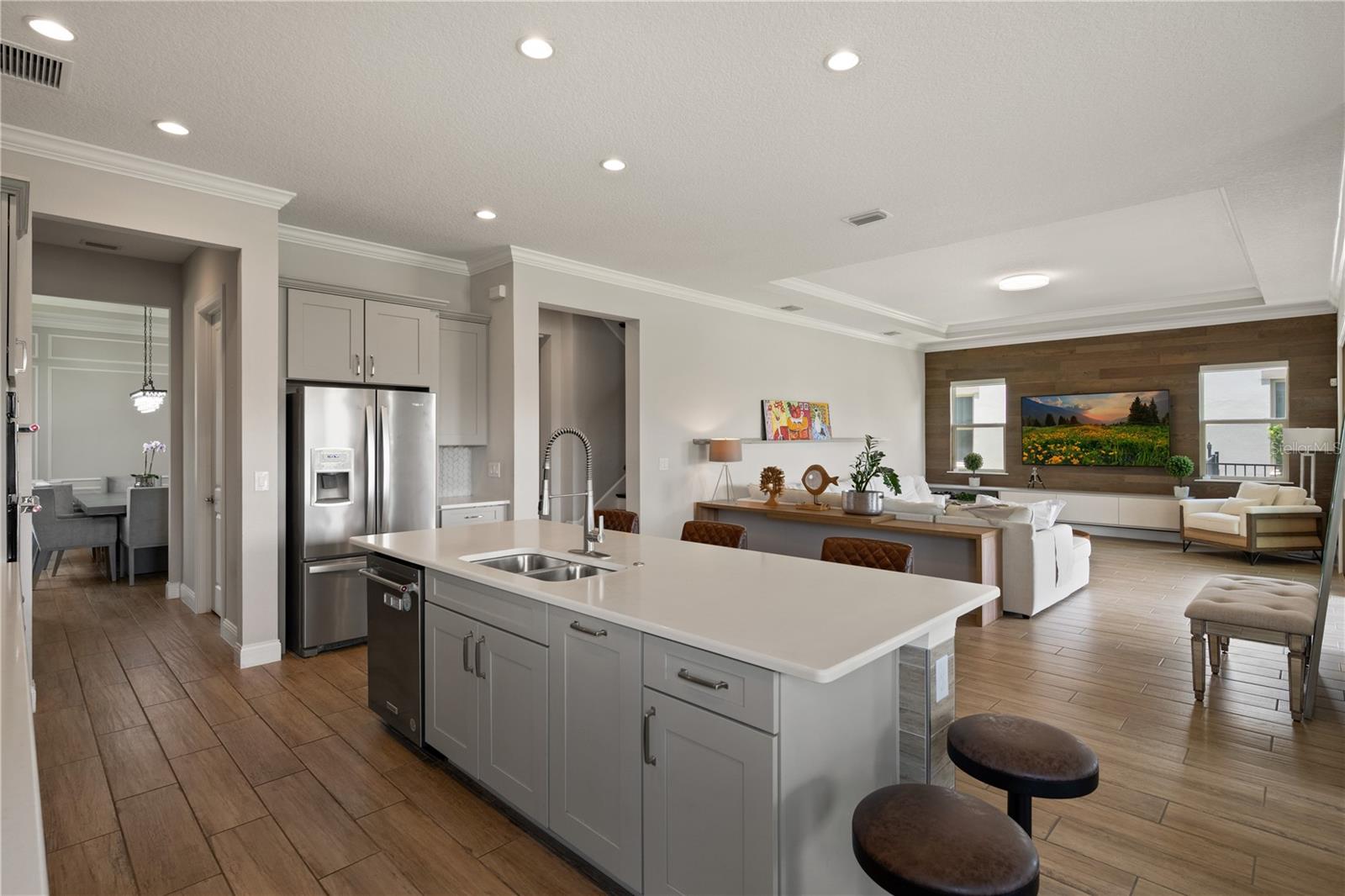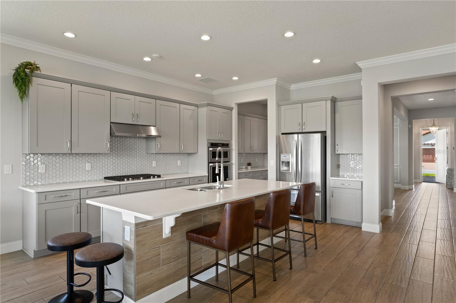 Escondido dentro dos portões de um dos enclaves mais exclusivos do centro da Flórida, esta elegante residência de visão de água no Royal Cypress Preserve mistura perfeitamente a sofisticação arquitetônica com a beleza serena. Um lote abrangente com vistas tranquilas prepara o cenário para uma casa que evoca privacidade, equilíbrio e vida refinada. Após a entrada, a residência revela um layout aberto harmonioso, aprimorado por tetos altos, acabamentos com curadoria e piso de madeira engenhada de fábrica larga. A luz em cascata através de painéis de vidro expansivos, guiando você para o coração da casa-a cozinha de um chef, cuidadosamente designada com utensílios de aço inoxidável de nível profissional, armários sob medida, superfícies de quartzo, uma ilha de grandes dimensões para reunir e uma espaçosa despensa. A vida interna e externa converge nas principais áreas de estar e jantar, que fluem perfeitamente para um lanai coberto e um quintal generoso projetado para entretenimento sem esforço, com linhas de visão abertas para brilhando água além. A suíte primária oferece um retiro pacífico, completo com vistas para a água calmante, um terraço ao ar livre privado e um banho de calibre de spa com vaidades duplas, uma banheira de imersão independente, um expansivo chuveiro encerrado de vidro e um camarim personalizado. Destaques adicionais incluem um loft com bar molhado, um espaço de vida de nível superior flexível e um quintal totalmente cercado. Os moradores da Royal Cypress Preserve desfrutam de acesso exclusivo a um conjunto de comodidades em estilo resort, incluindo um clube contemporâneo, piscina de entrada zero, estúdio de fitness de última geração, playground, parque de cães e um lançamento de barco particular que oferece acesso ao cênico 124 acres sul do lago. A minutos idealmente posicionados dos principais destinos do centro da Flórida, resorts de classe mundial, restaurantes e compras-isso é mais do que uma casa. É um estilo de vida.