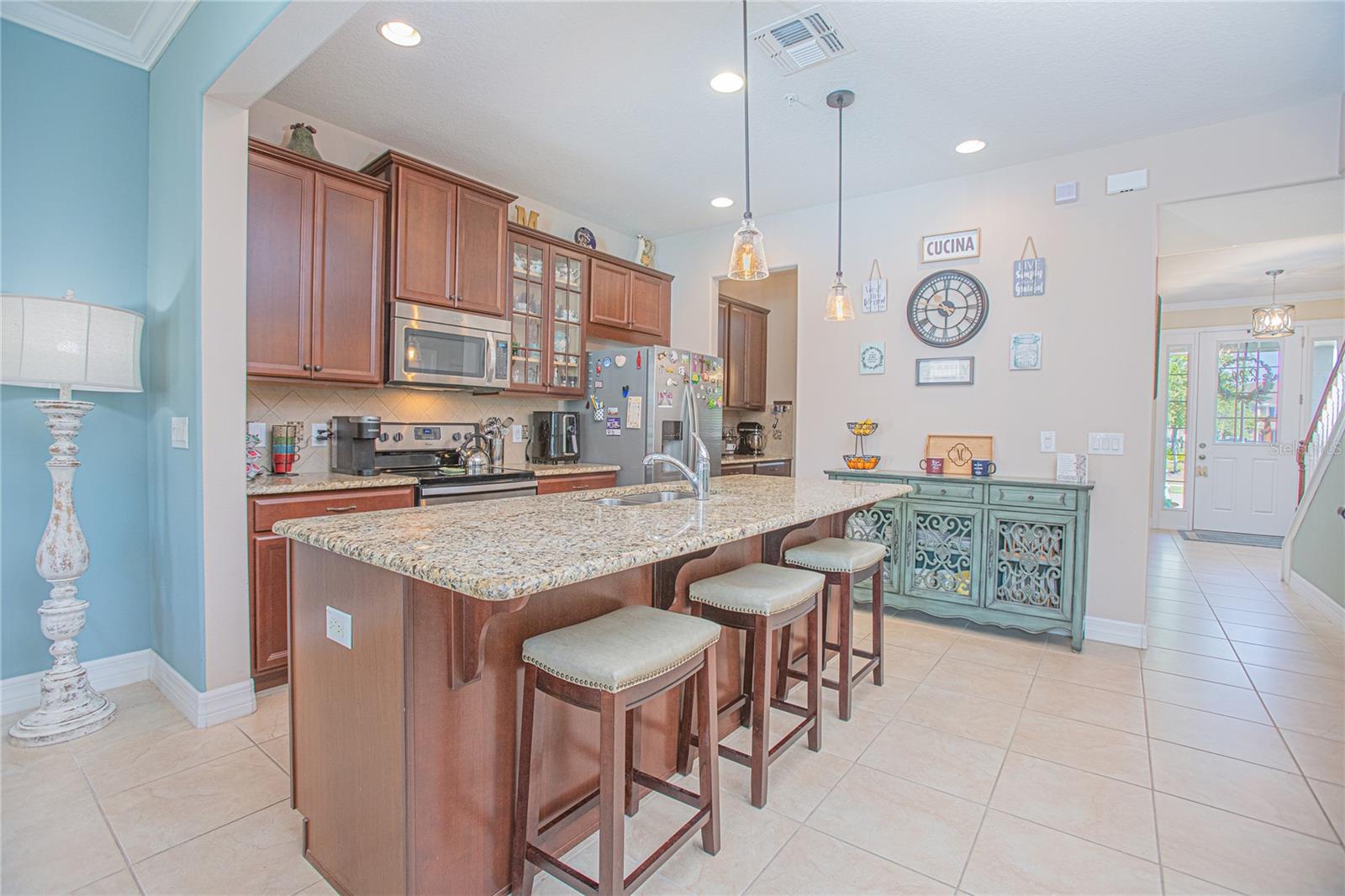 Melhoria de preços! Impressionante e se moverem prontos. Esta cidade de 3 quartos e 2,5 banheiros está localizada na altamente desejável comunidade Randal Park e aninhada em um lote premium. Uma varanda da frente acolhedora leva a um belo hall de entrada aberto, com um espaço de jantar formal, tetos altos e muita luz natural. Lindos fluxos de ladrilhos de cerâmica por todo o andar de baixo, complementados por moldagem por coroa e iluminação embutida. A cozinha atualizada é um sonho com bancadas em granito, utensílios de aço inoxidável, iluminação pendente e despensa de um mordomo para maior conveniência. No andar de cima inclui três quartos espaçosos com carpete aconchegante, ventiladores de teto e um layout funcional. A suíte master possui um teto de bandeja, closet e um adorável banheiro mestre com pias duplas, um chuveiro e uma banheira de imersão, perfeita para relaxar após um longo dia. Um pátio privado com pavimentadores oferece um espaço pacífico para relaxar ou entreter. Lavadora e secadora transmitem. O Randal Park oferece comodidades excepcionais no estilo resort, incluindo uma piscina olímpica, bloco de respingos, fitness center, clube com vistas para a água e trilhas cênicas para caminhada. Convenientemente localizado perto de Lake Nona Medical City, escolas de primeira classificação, compras, restaurantes, grandes rodovias e aeroporto internacional de Orlando. Agende sua exibição hoje!