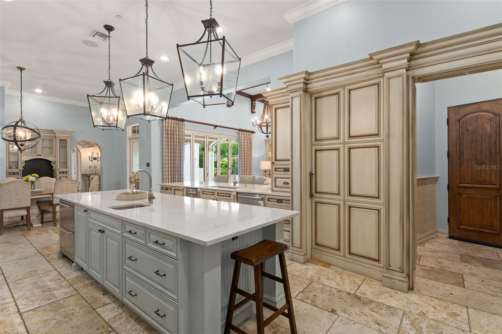 Bem-vindo a uma propriedade única na cobiçada New Broad Street em Baldwin Park Situada em um terreno de esquina nobre no coração de Baldwin Park, esta propriedade extraordinária foi magistralmente construída pelos renomados construtores residenciais personalizados Goehring & Morgan como a casa oficial do International Builder's Show de 2007. Combinando a elegância mediterrânea do Velho Mundo com tecnologia de ponta e artesanato incomparável, esta casa redefine a vida luxuosa. A partir do momento em que você passa pela porta de entrada esculpida à mão, você é recebido por um requintado hall de entrada circular com mármore embutido e piso de travertino, tetos altos em caixotões, abóbadas de berço e vigas, molduras intrincadas e portas sólidas personalizadas. A integração residencial inteligente permite o controle contínuo da iluminação e tem a capacidade de adicionar sistemas audiovisuais, HVAC e de segurança com o toque de um botão. Projetada tanto para entretenimento em grande escala quanto para a vida cotidiana íntima, a cozinha do chef está equipada com eletrodomésticos premium, incluindo fogão a gás de 8 bocas, exaustor de pedra personalizado, geladeiras e lava-louças duplas de aço inoxidável, fornos duplos, compactador de lixo e uma ilha enorme de 13 pés. Um bar de dois níveis e uma despensa com geladeira própria e máquina de fazer gelo completam o layout dos sonhos do artista. O retiro principal do primeiro andar é um santuário privado, com uma área de estar aconchegante com cafeteria embutida, acesso direto à varanda, lareira a gás, banheira de imersão ao lado da lareira e chuveiro tipo spa. O closet personalizado inclui um segundo nível acessível por escada para amplo armazenamento. Ainda no primeiro andar: biblioteca, adega com bar de degustação, mudroom e suíte privativa para hóspedes. No andar de cima, você encontrará três quartos adicionais, uma sala de artesanato e uma sala de mídia/jogos de última geração com piso de nogueira e uma lanchonete completa (micro-ondas, geladeira, pia e máquina de fazer gelo). Estores motorizados, iluminação integrada e sistemas de áudio/vídeo garantem uma experiência de entretenimento envolvente. Saia para um espaço de estar ao ar livre de tirar o fôlego com tetos em caixotões Cypress, lareira, cozinha de verão, TV de tela plana e várias áreas de estar - todas com vista para o deck da piscina pavimentado com travertino, spa de azulejos refletivos e cachoeira coberta de treliça emoldurada por um paisagismo exuberante e privado. Os destaques adicionais incluem um apartamento estúdio com garagem totalmente equipado com entrada privativa que é ideal para hóspedes ou possíveis receitas de aluguel, um grande gerador de casa, uma espaçosa garagem para três carros e um telhado de telha recentemente atualizado instalado em 2021. Esta casa também apresenta uma coleção significativa de móveis Ethan Allen feitos sob medida, cuidadosamente selecionados para complementar cada quarto; essas peças de alta qualidade podem ser incluídas na venda. Verdadeiramente uma das casas mais emblemáticas de Baldwin Park, esta residência oferece uma combinação incomparável de luxo, privacidade e conveniência moderna. Agende sua exibição privada hoje e experimente o que há de melhor em artesanato e elegância.