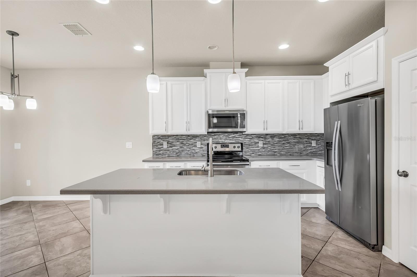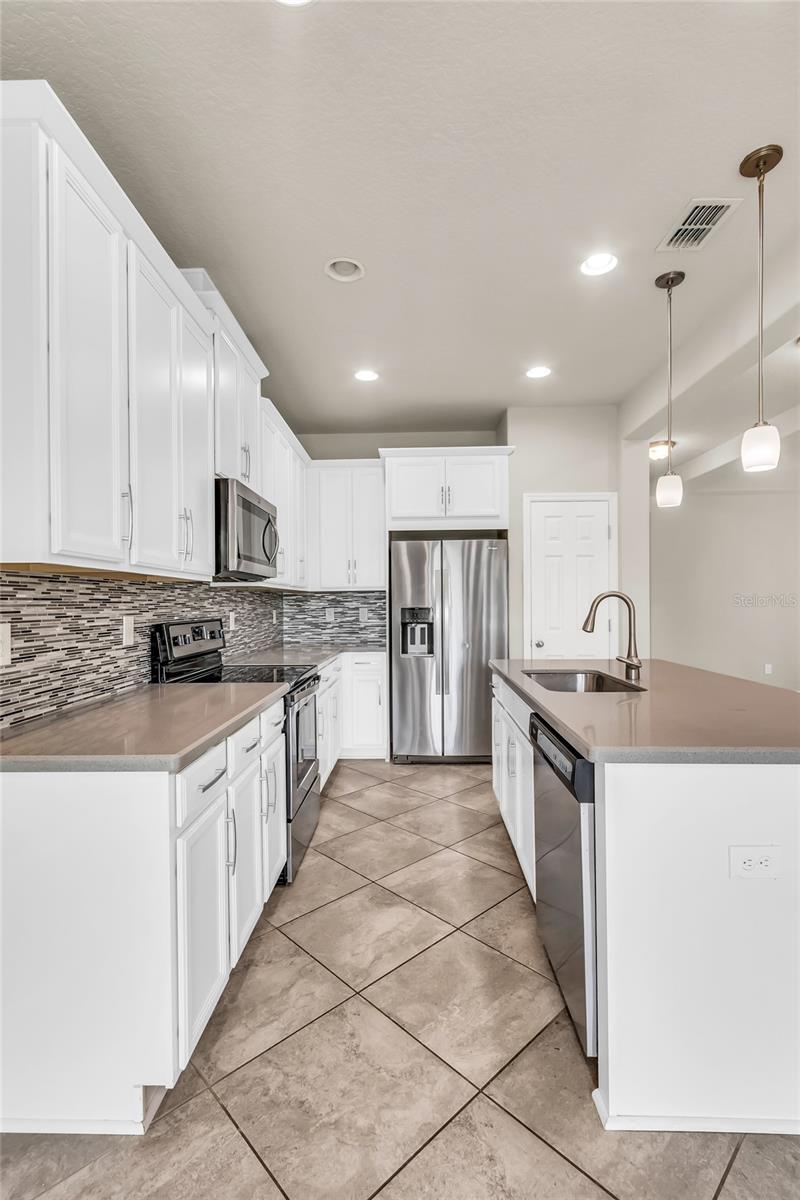 Esta casa de 2444sf, 4 quartos, 3 banheiros, 3 garagens e 2 andares está localizada na bela comunidade de Randal Park, na próspera área de Lake Nona, em Orlando. Lake Nona é cercado por lagos, comunidades com campos de golfe, complexos esportivos e edifícios de escritórios de alto padrão. A casa fica na comunidade de Randal Park, com ótimas comodidades e ambiente familiar, os residentes têm acesso gratuito às comodidades da comunidade, como parques infantis, club house, piscina e parque comunitário e trilhas para caminhada no lago! A comunidade fica ali pela rodovia 417 e rodovia 528, a minutos do aeroporto MCO, a 20 minutos do centro da cidade e da zona comercial de luxo, a 25 minutos da área da Disney e a praia fica a uma hora. Medical City fica a apenas 10 minutos de distância, você tem todos os supermercados, lojas, restaurantes, escolas, parques com vistas panorâmicas e hospitais que precisa. Esta casa oferece muito espaço comum com planta aberta e funcional entre sala, cozinha e sala de estar. Um quarto no andar de baixo também pode ser usado como escritório. Separada dos outros dois quartos no andar de cima, a serena suíte do proprietário dispõe de um banheiro privativo tipo spa e um espaçoso closet. Cada quarto tem closet. Um amplo pátio com varanda coberta permite que você aproveite o sol da Flórida e o ar fresco ao ar livre.