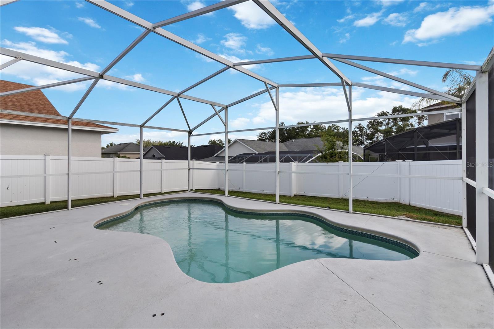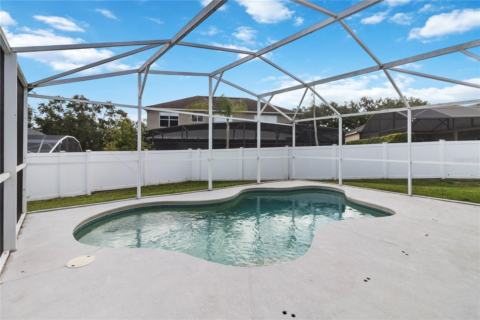Deck, gunite, aquecido, em terra, iluminação, água salgada, gabinete de tela, bomba de energia solar