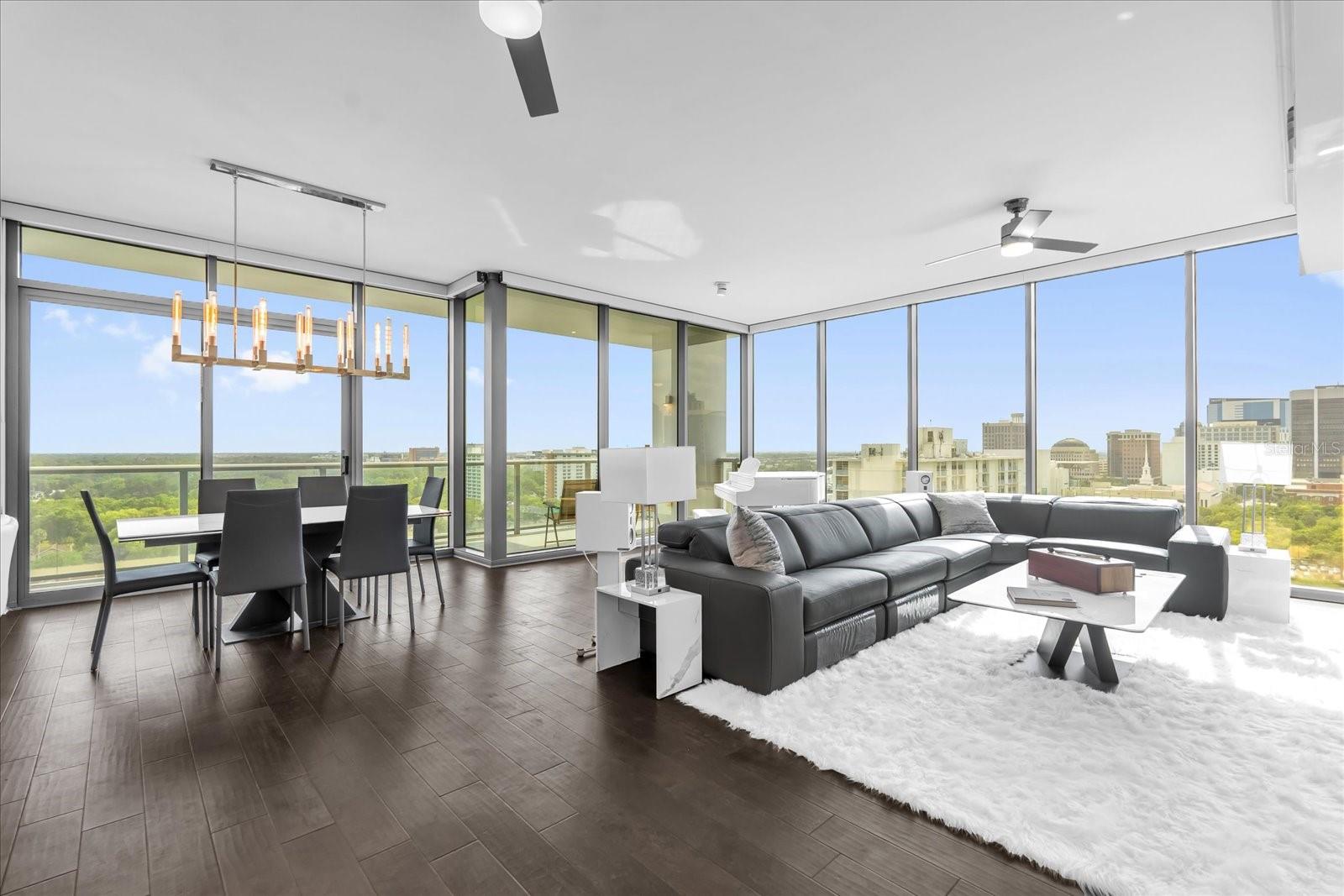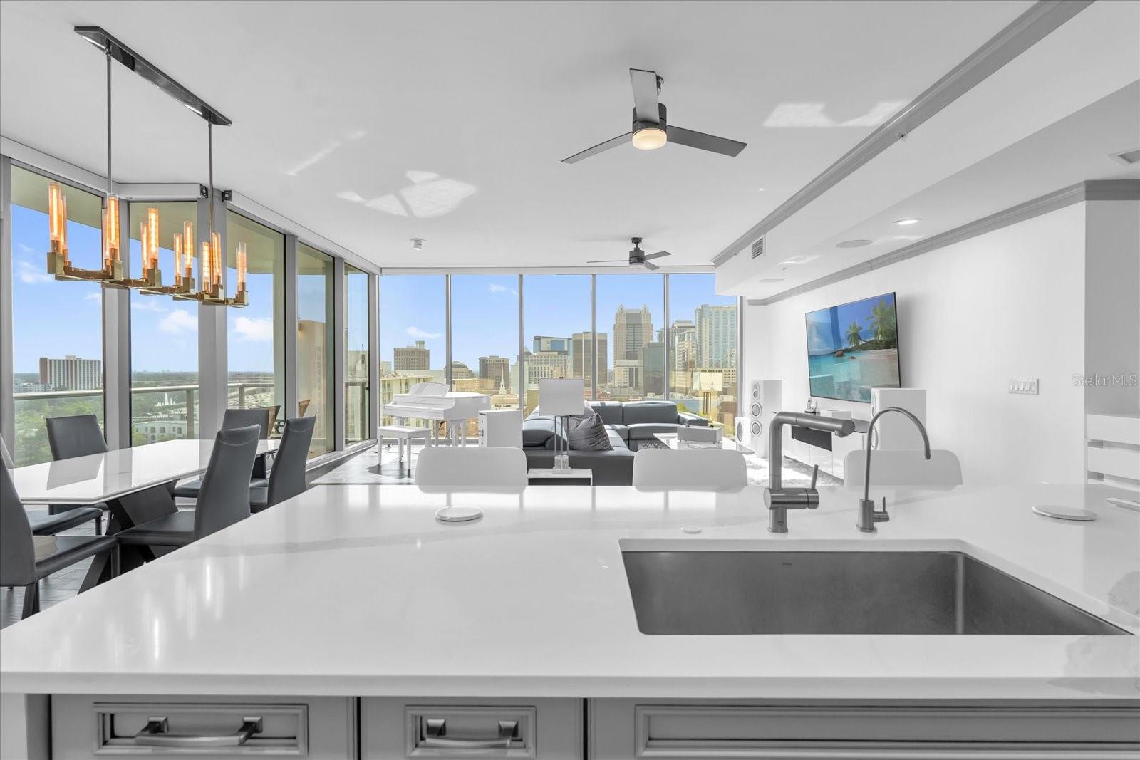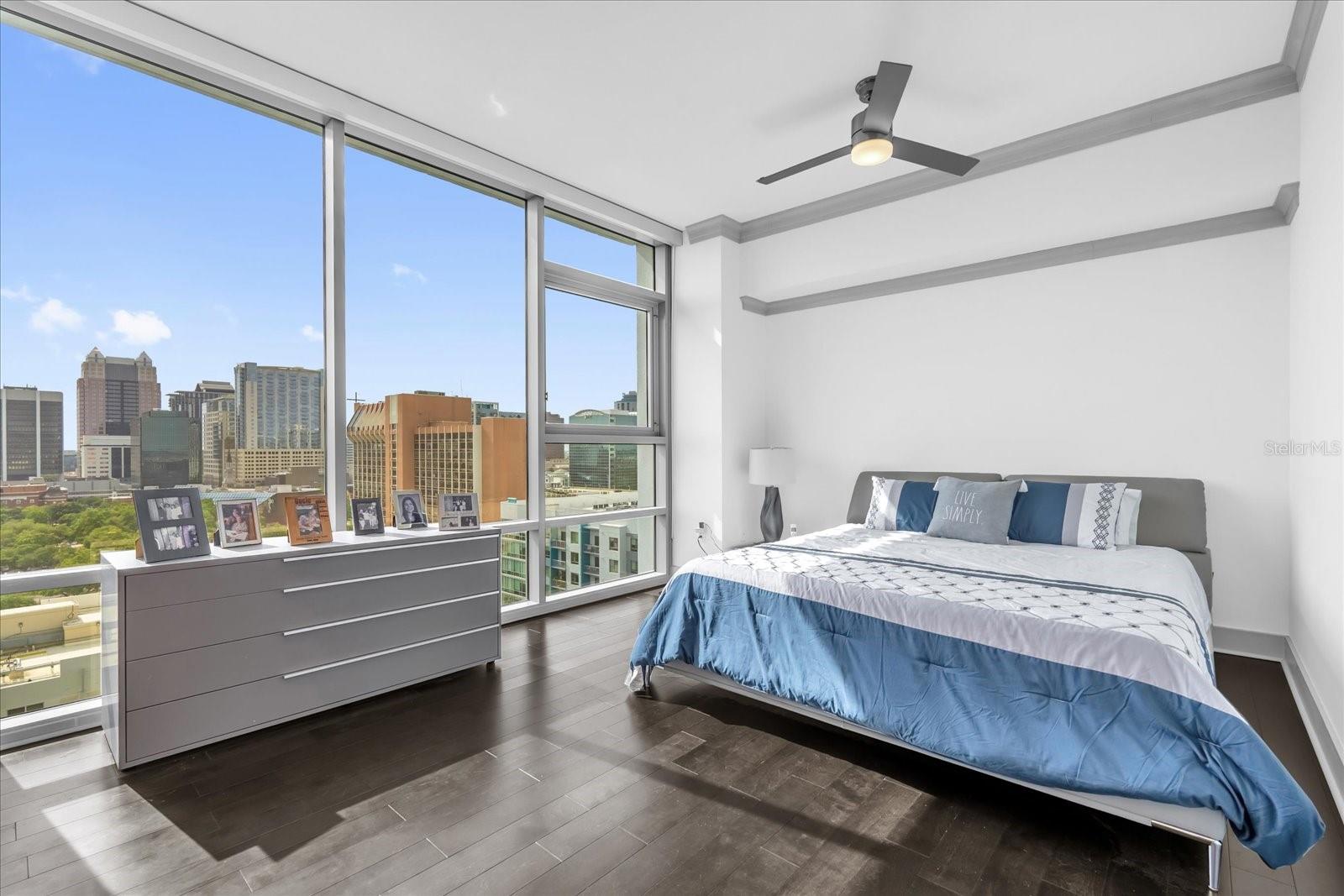Residência 1406 | Canto sudoeste de assinatura na torre estrela Localizado a apenas dois andares abaixo da cobertura - esta residência de canto sudoeste da Star Tower oferece vistas panorâmicas do horizonte que são lindas durante o dia e verdadeiramente impressionantes quando as luzes da cidade acendem à noite. Esta casa de 2bd/2.5BA totalmente renovada abrange 2.000 sf com um layout moderno de quartos divididos, vidro de 10 'do chão ao teto em todos os quartos e atualizações premium, incluindo molduras de coroa, portas com painéis de madeira, tons motorizados, filme de janela solar de 3m e iluminação LED. A cozinha do chef apresenta bancadas de quartzito de borda em cascata, armários personalizados, lobo, lava-louças Miele, geladeira inteligente LG e sistema de água filtrada. A suíte primária inclui armários duplos da Califórnia, uma banheira de imersão a jato, chuveiro duplo de cabeça de chuva e espelhos de inclinação. O quarto secundário é um suíte completo, com grande closet. Esta unidade inclui dois vagas de estacionamento atribuídas. A Star Tower é um arranha-céu boutique, com concierge de 24 horas, uma piscina na cobertura com cabanas, Sky Lounge, Fitness Center e acesso possível a refeições requintadas, Publix e Dr. Phillips Center.
