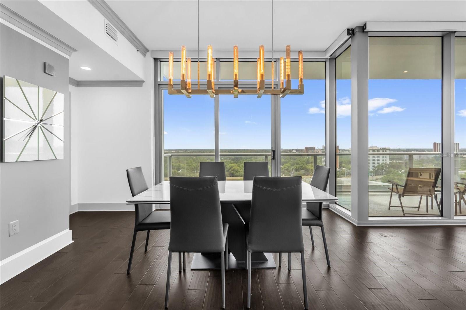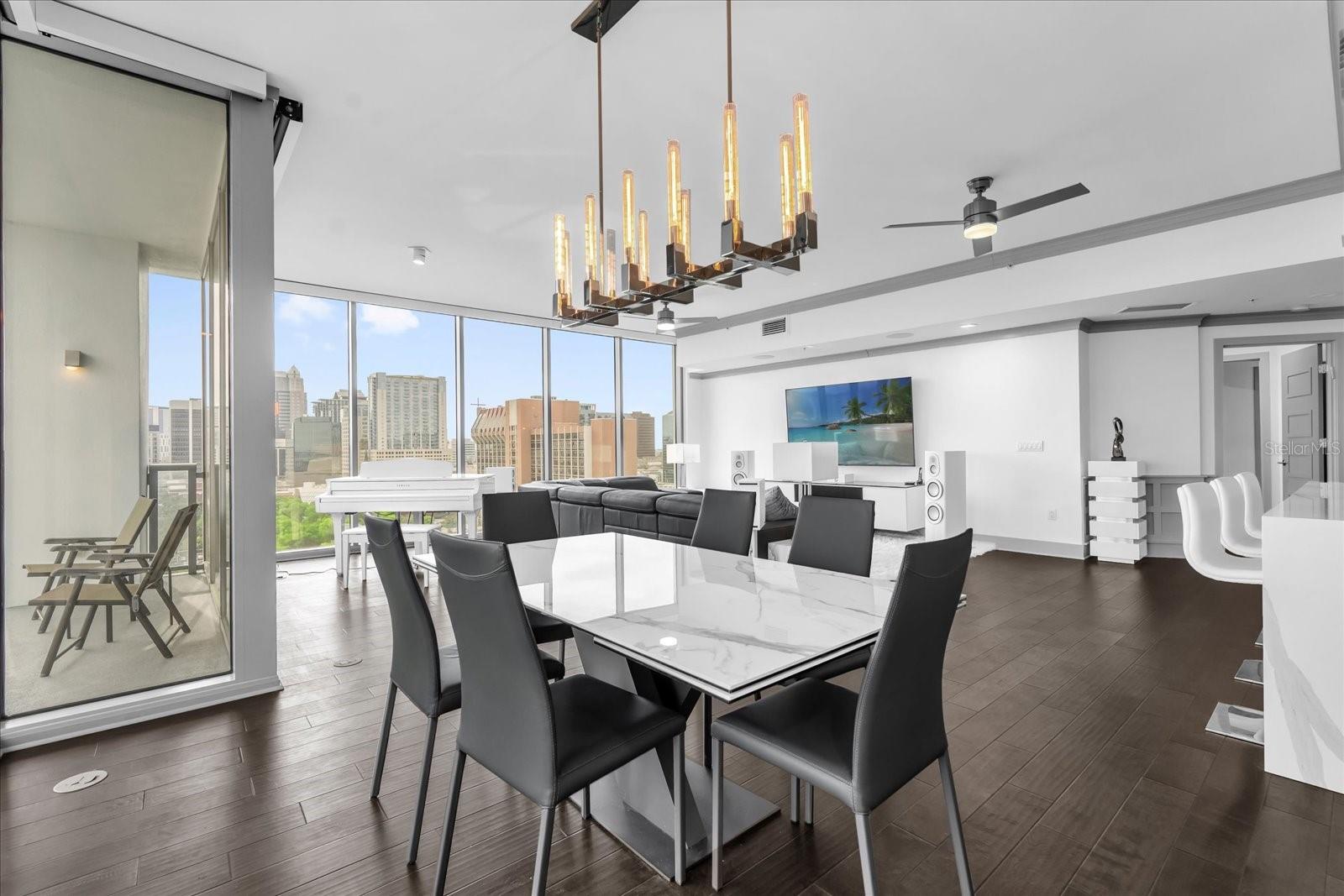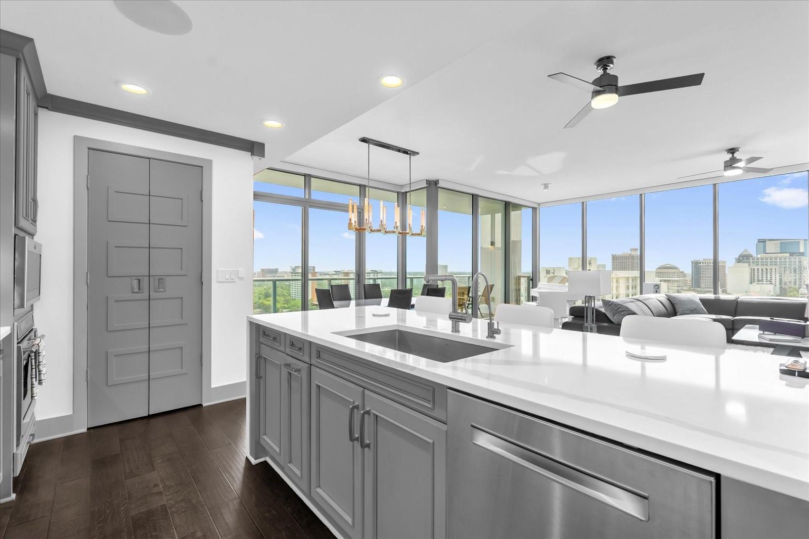 Residência 1406 | Canto sudoeste de assinatura na torre estrela Localizado a apenas dois andares abaixo da cobertura - esta residência de canto sudoeste da Star Tower oferece vistas panorâmicas do horizonte que são lindas durante o dia e verdadeiramente impressionantes quando as luzes da cidade acendem à noite. Esta casa de 2bd/2.5BA totalmente renovada abrange 2.000 sf com um layout moderno de quartos divididos, vidro de 10 'do chão ao teto em todos os quartos e atualizações premium, incluindo molduras de coroa, portas com painéis de madeira, tons motorizados, filme de janela solar de 3m e iluminação LED. A cozinha do chef apresenta bancadas de quartzito de borda em cascata, armários personalizados, lobo, lava-louças Miele, geladeira inteligente LG e sistema de água filtrada. A suíte primária inclui armários duplos da Califórnia, uma banheira de imersão a jato, chuveiro duplo de cabeça de chuva e espelhos de inclinação. O quarto secundário é um suíte completo, com grande closet. Esta unidade inclui dois vagas de estacionamento atribuídas. A Star Tower é um arranha-céu boutique, com concierge de 24 horas, uma piscina na cobertura com cabanas, Sky Lounge, Fitness Center e acesso possível a refeições requintadas, Publix e Dr. Phillips Center.