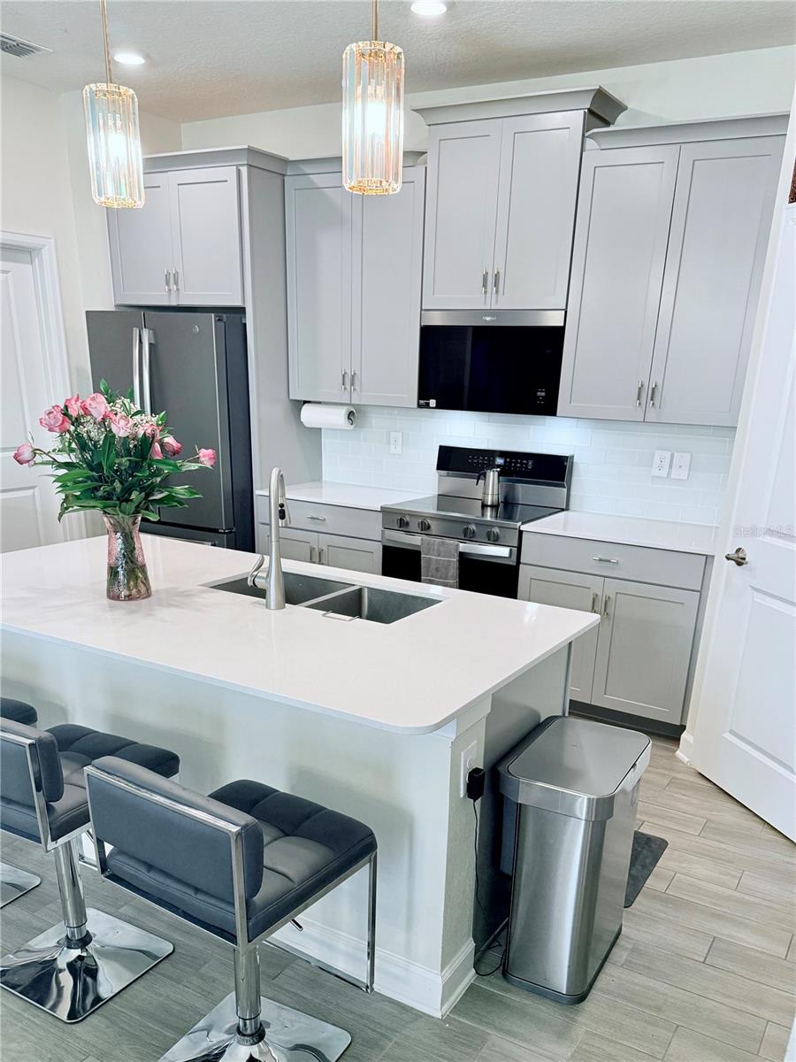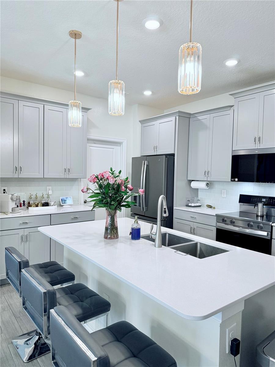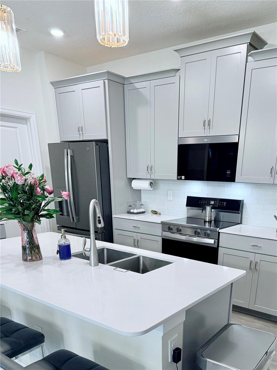 Home de um andar à beira-mar impressionante em Storey Park Estates & Executives-Lake Nona Bem-vindo a esta casa lindamente mantida de 4 quartos e 3 banheiros com uma garagem de 2 carros, localizada em um lote executivo premium de 50 pés com vista para o lago de tirar o fôlego. Construído em 2020, esta casa de energia solar com eficiência energética oferece uma mistura perfeita de luxo, conforto e design moderno. Step inside to an open-concept floor plan featuring high ceilings, elegant crown molding, 17” ceramic tile in main living areas, and upgraded plush carpet in the bedrooms. The gourmet kitchen is a chef’s dream, equipped with quartz countertops, GE® Slate or stainless steel appliances, shaker or maple wood cabinets, a large center island, and a pull-down sprayer faucet. A espaçosa suíte primária fornece um retiro pacífico com um banheiro privativo semelhante a um spa, vaidades duplas, um chuveiro e um generoso closet. Os quartos secundários estão cuidadosamente posicionados para maximizar a privacidade e a funcionalidade. As características adicionais incluem uma garagem pintada e selada com uma porta em estilo de carruagem, um telhado plano, janelas de panela dupla baixa, um pacote Lennar EcoSmart® com um aquecedor de água elétrica híbrido, isolamento avançado, um termostato programável e um sistema de controle de pest com TAEXX® embutido. A casa também é pré-conectada para ventiladores de teto, oferece portas de carregamento USB, iluminação LED, sistema de segurança e automação doméstica inteligente. Desfrute do pôr do sol do seu quintal com vistas diretas do lago ou relaxe em um dos dois clubes de estilo resort que servem à comunidade. As comodidades incluem uma piscina de lazer, piscina de colapas, spa aquecida, bloco de respingos, centro de fitness de última geração, quadras de tênis, campos esportivos, parque de cães, trilhas naturais, acampamento e um jardim comunitário. O HOA cobre a Internet de alta velocidade, mais de 300 canais a cabo e serviço de telefone residencial. Idealmente localizado perto das principais rodovias (417 e 528), o Aeroporto Internacional de Orlando, Hospital VA, Campus Nacional da USTA, Faculdade de Medicina da UCF, escolas de melhor classificação, compras e refeições.