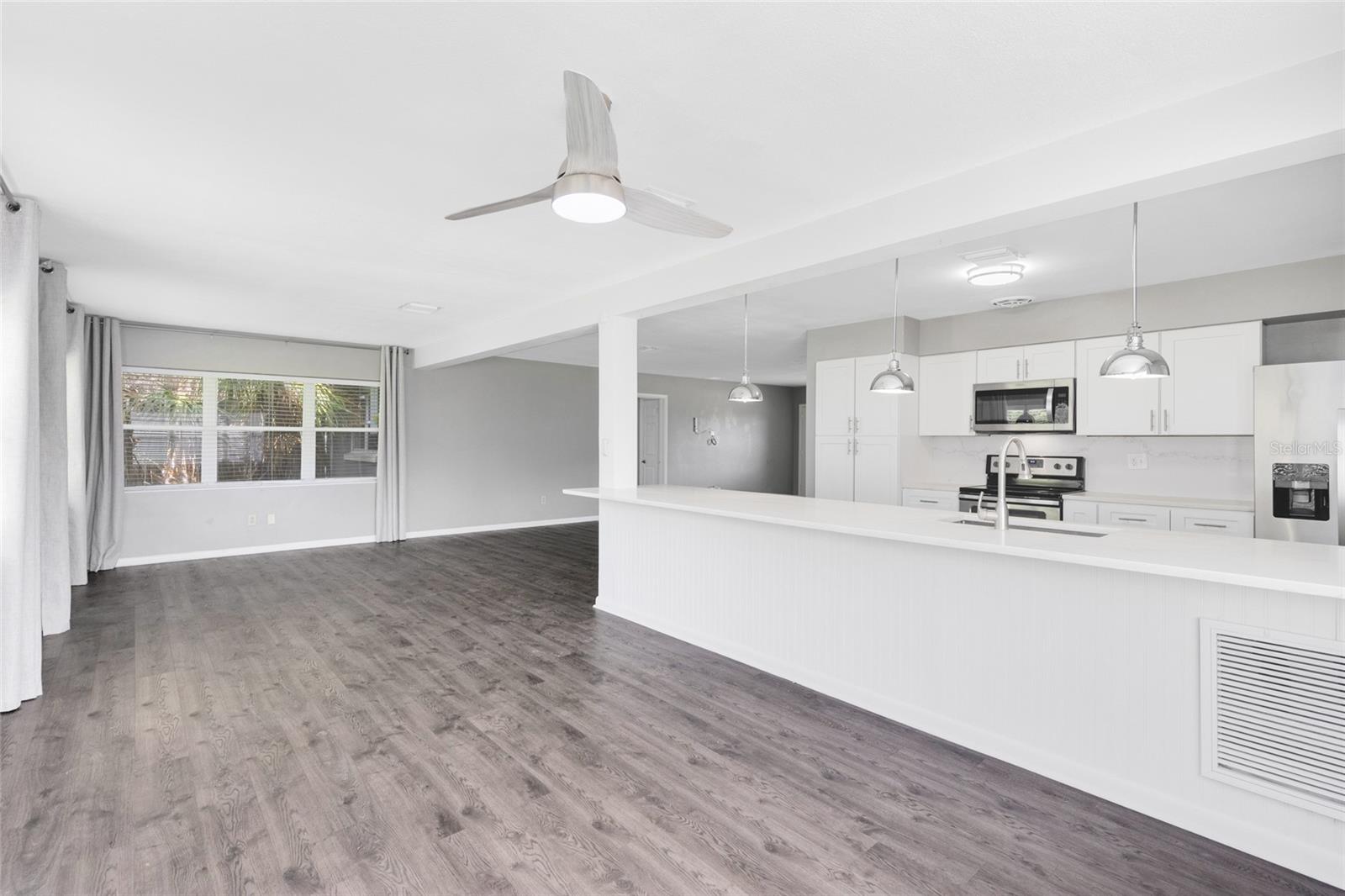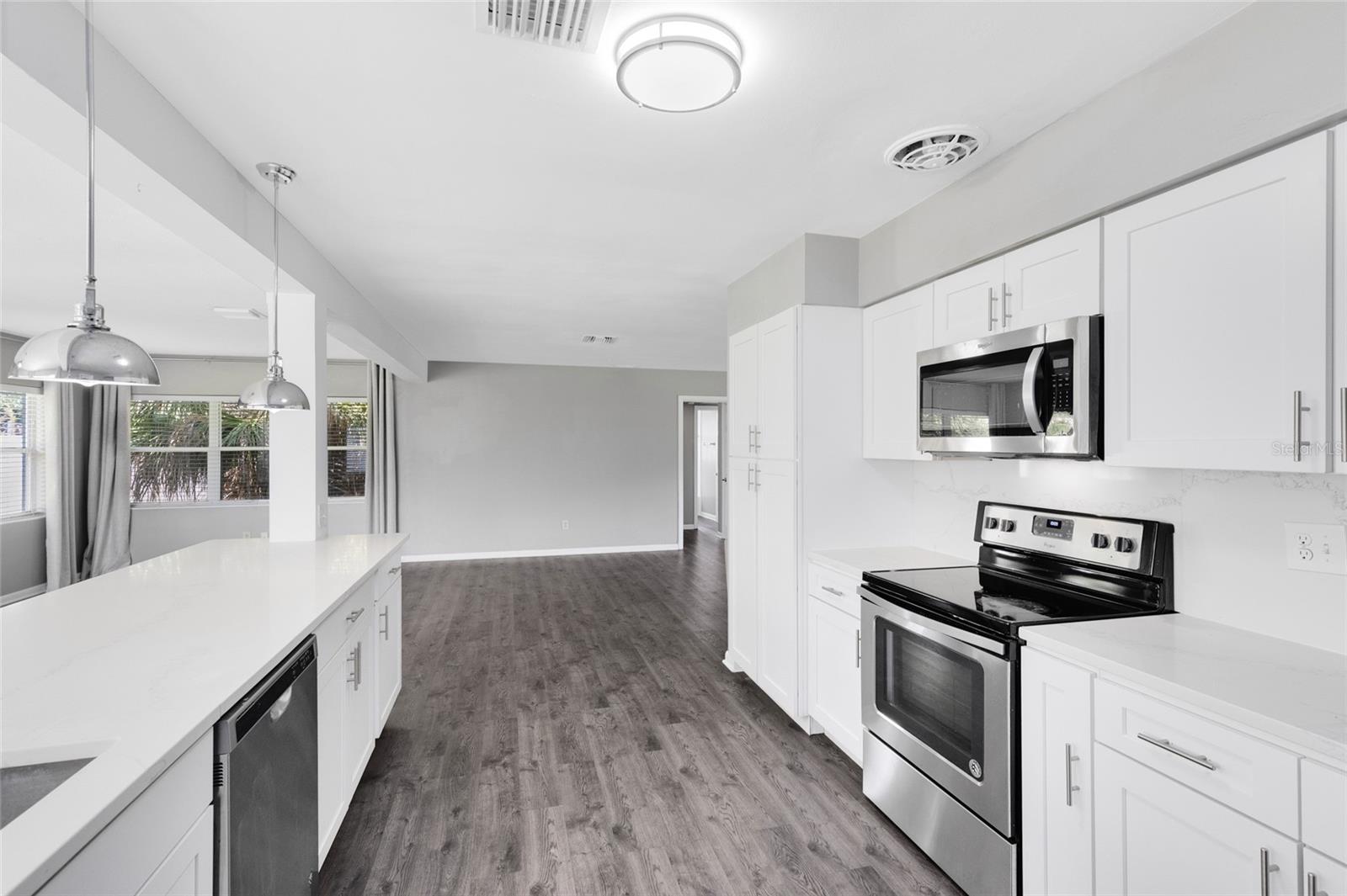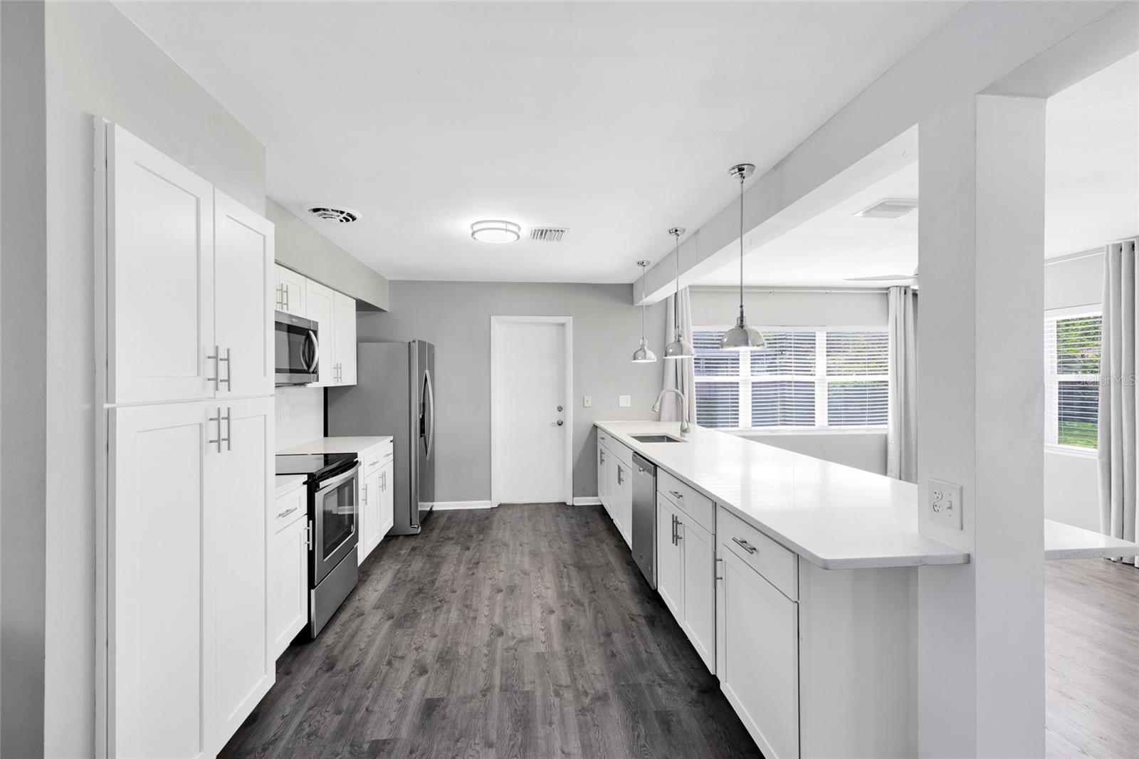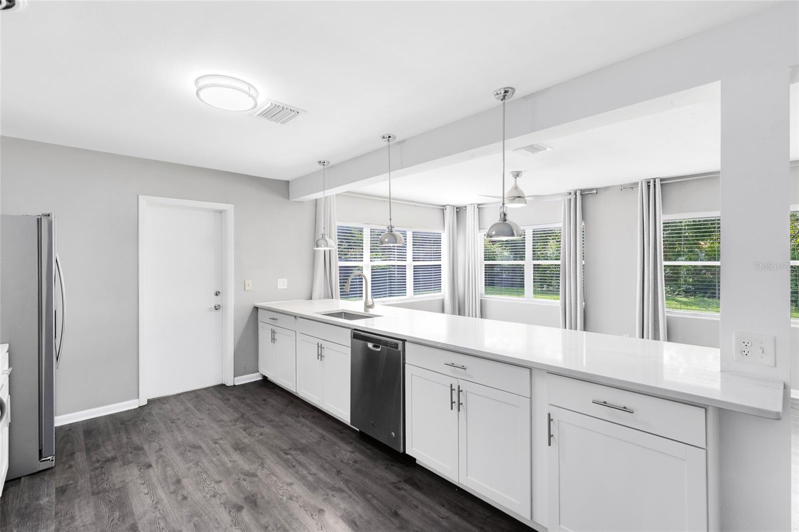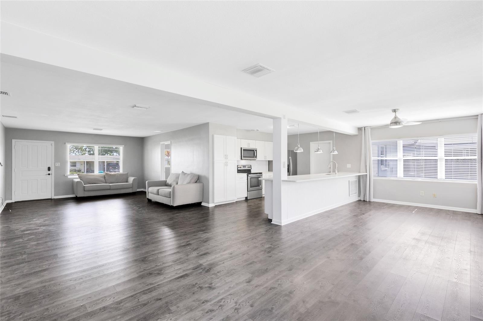 Zoneado para o lago Como K-8. Bem-vindo a esta casa elegantemente atualizada de 3 quartos e 2 banheiros, aninhada no coração de Dover Shores. Situado em uma rua tranquila, sem HOA, esta encantadora casa de um andar possui um exterior recém-pintado, varanda clássica, paisagismo maduro e um espaçoso gramado da frente. A garagem prolongada e a garagem de dois carros oferecem muito estacionamento, enquanto a entrada coberta oferece uma recepção calorosa. Entre em uma grande sala de estar aberta, com piso laminado de fábrica larga e luz natural, derramando pelas janelas. Este espaço flexível se conecta perfeitamente à cozinha e à sala da família, formando um verdadeiro layout de conceito aberto perfeito para entretenimento ou conforto diário. A cozinha totalmente atualizada inclui armários shaker brancos, bancadas elegantes de quartzo e utensílios de aço inoxidável. As luzes pendentes destacam a barra de café da manhã de grandes dimensões, que flui para a sala da família dos fundos, cercada por janelas e vistas do quintal. Juntos, esses espaços abertos criam a sensação de uma grande sala moderna, mantendo zonas distintas para reunir, relaxar e jantar. A suíte primária privada fica na área de estar principal, oferecendo um retiro tranquilo com janelas duplas que enchem a sala com luz natural suave. Há muito espaço para acomodar uma cama king-size e móveis adicionais. O banho de suíte foi atualizado com bom gosto com uma vaidade moderna, espelho redondo, iluminação elegante e um chuveiro de barriga totalmente azulejo-complicando conforto e estilo para facilitar diariamente. Saia de um quintal totalmente cercado com espaço verde exuberante e um grande pátio de pavimentador de tijolos - ideal para churrascos, animais de estimação ou tempo de reprodução de fim de semana. Cercado por árvores maduras e muito espaço para personalizar, o quintal é um achado raro nesse preço. Localizado em uma localização Prime Orlando, perto de Lake Como K-8, Boone High, Downtown e principais estradas-esta casa pronta para mover-se oferece conveniência e charme em um dos bairros mais estabelecidos da cidade.