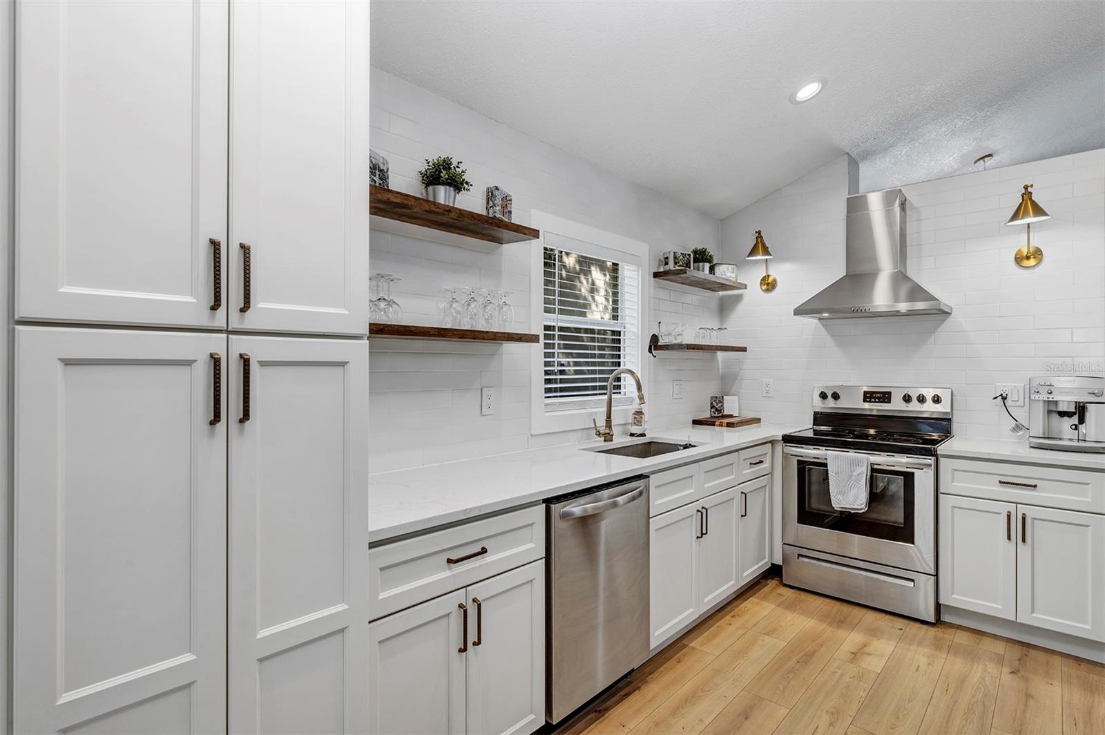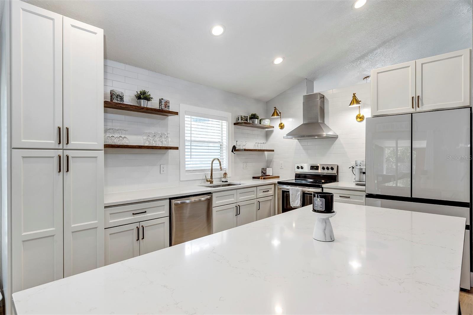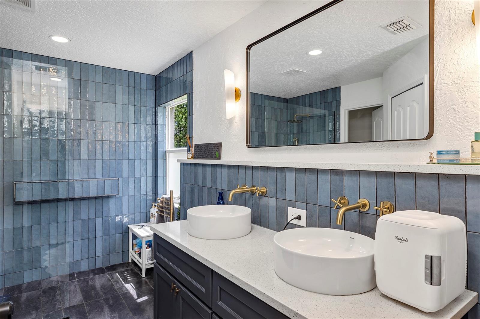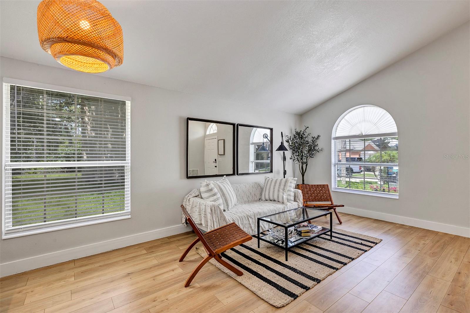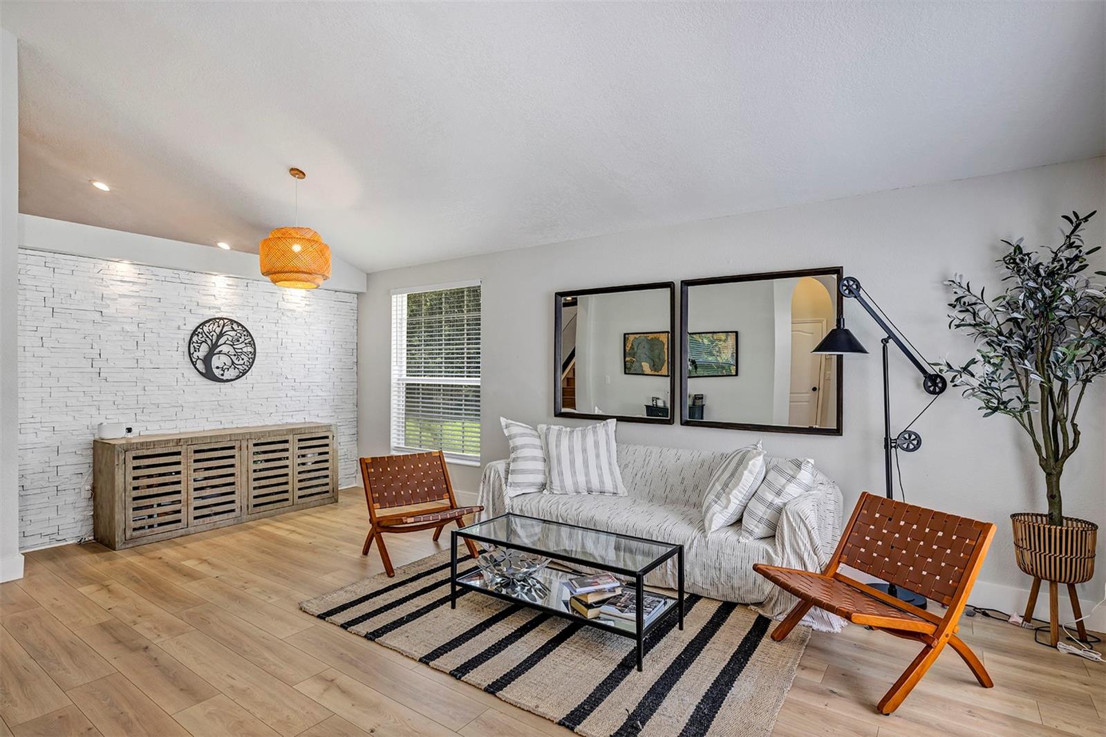 Experimente o auge da Flórida Central que vive em Andover Cay. Esta impressionante casa de 4 quartos e três banheiros possui um jardim de frente lindamente paisagístico em um lote de tamanho generoso, oferecendo privacidade sem vizinhos para trás e aninhado em um beco sem saída tranquilo. Ao entrar, você é recebido por uma área de vida/jantar brilhante e arejada com pisos laminados claros e elegantes que se estendem por toda a residência. A sala da família e a cozinha se fundem perfeitamente, com tetos altos, uma grade de escada com painéis de vidro e uma parede parcial que leva ao loft, todos contribuindo para uma sensação de abertura luxuosa. O piso e os acessórios da casa são banhados em tons quentes e neutros, acentuando perfeitamente a cozinha modernizada com seus armários de dois tons, prateleiras abertas chiques, bancadas de quartzo e hardware atraente. O quarto principal é um retiro, completo com um banheiro inspirado em spa, que inclui um chuveiro com vidro sem quadro e vaidades duplas com torneiras elegantes montadas na parede. No térreo, descubra dois quartos adicionais e um banheiro revigorado. O armazenamento de sub-escada de sub-escada transformado de forma inteligente, agora cercada com paredes de vidro, poderia servir como uma sala de vinho requintada. A área do loft no andar de cima apresenta outro quarto e banheiro. Fique tranquilo sabendo que o telhado e o sistema de ar condicionado foram atualizados em 2022. O principal local de Andover Cay em East Orlando está a apenas momentos dos 408, UCF, Waterford Lakes e Downtown Orlando. Aproveite a oportunidade de chamar essa propriedade excepcional de sua.