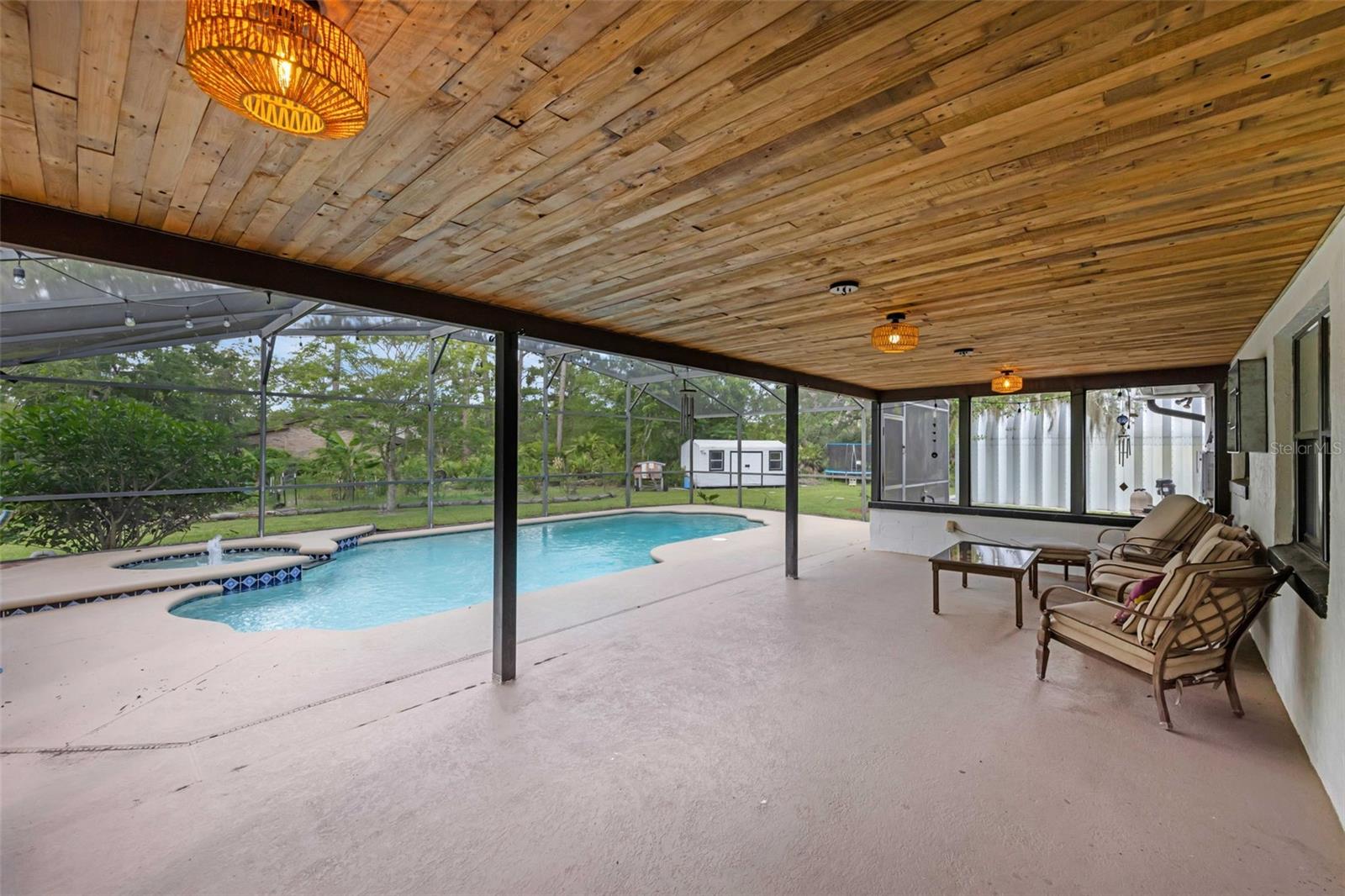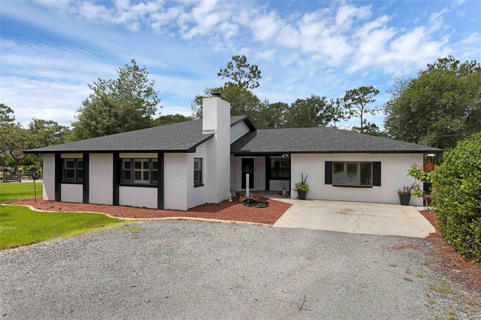 MELHORIA DE PREÇO! Fuja para o seu paraíso particular de 2 acres – onde atualizações modernas, paisagismo exuberante e liberdade total se unem. Aproveite o melhor dos dois mundos - a poucos minutos da UCF e do centro de Orlando, e a apenas cerca de 45 minutos dos parques temáticos mundialmente famosos e das belas praias da Flórida, SEM HOA e zoneamento agrícola/residencial que permite galinhas, gado, trailers e muito mais. No interior, esta casa lindamente renovada com 4 quartos, 3 banheiros e 2.240 pés quadrados apresenta tetos desmontáveis, sancas, persianas, iluminação atualizada, uma aconchegante lareira a lenha e azulejos grandes e duráveis e piso laminado de madeira por toda parte. A cozinha do chef é igualmente impressionante, com um fogão a gás Samsung de 36 "com Wi-Fi, forno duplo Thermador, geladeira Thermador embutida de grandes dimensões e bancadas de granito elegantes - projetadas para a vida cotidiana e para entretenimento. As principais atualizações essenciais incluem um novo telhado (2023), sótão isolado com espuma de spray, aquecedor solar de piscina (2023), um poço profundo (2019) e cozinha e banheiros remodelados (2020). A piscina protegida e spa - aquecido por 7 painéis solares - é aprimorado por um teto de madeira recentemente tingido e selado, criando um retiro perfeito durante todo o ano. Ao redor da casa há uma floresta alimentar florescente com manga, carambola, jujuba, limão, goiaba, abacate, amora, cereja de Barbados e uma dúzia de variedades de bananas com sua própria entrada privada, banheiro completo e acesso para cadeiras de rodas, ideal para vida multigeracional, hospedagem de hóspedes, criação de um escritório doméstico privado ou geração de renda de aluguel. Os destaques adicionais incluem uma garagem para 2 carros com iluminação e eletricidade, uma garagem de aço de 15'x30' com uma unidade de ar condicionado de 2 toneladas e um galpão de jardim motorizado de 9'x19', ideal para hobbies ou propriedade rural.