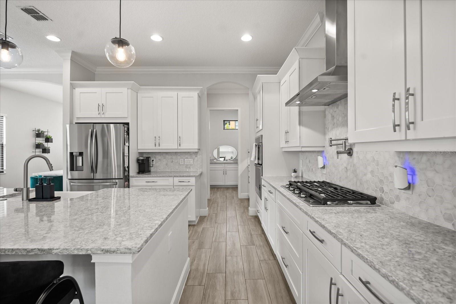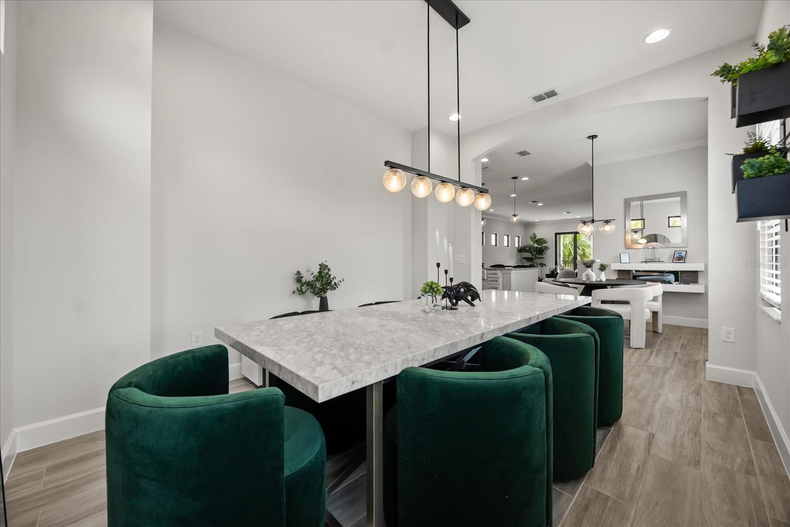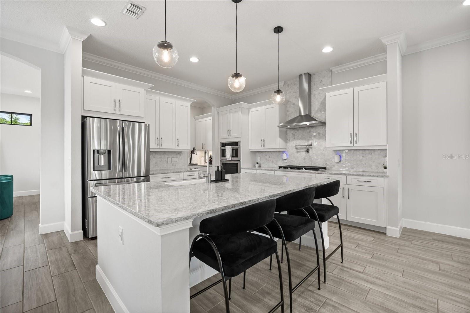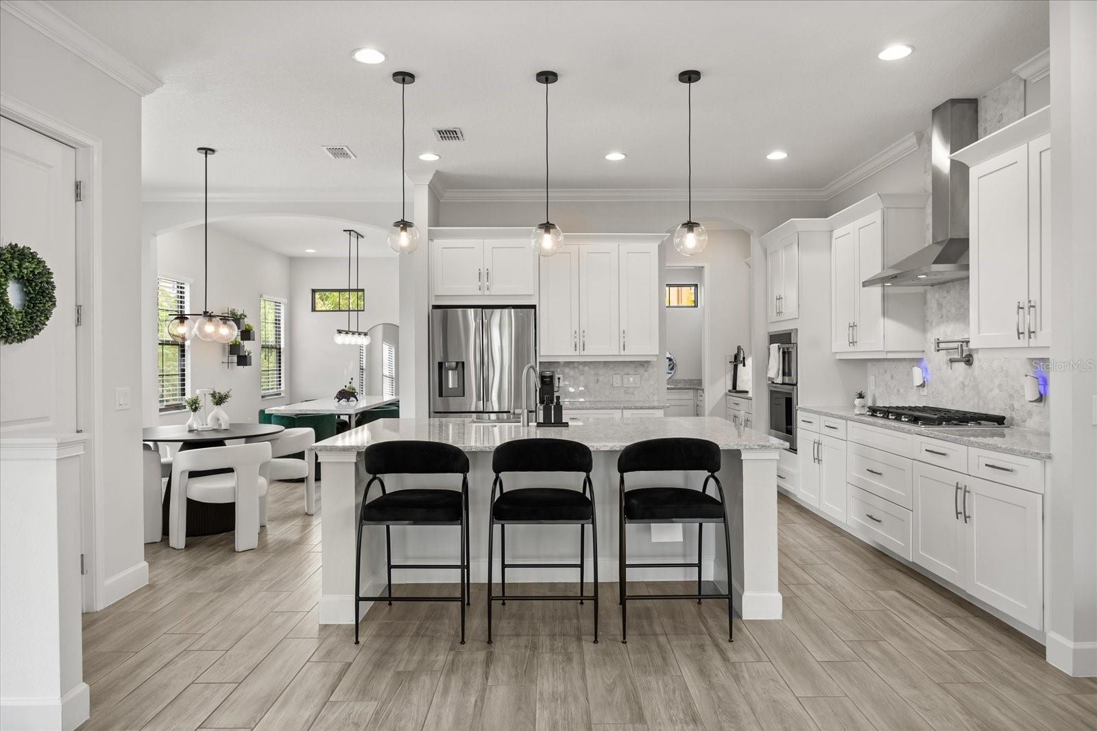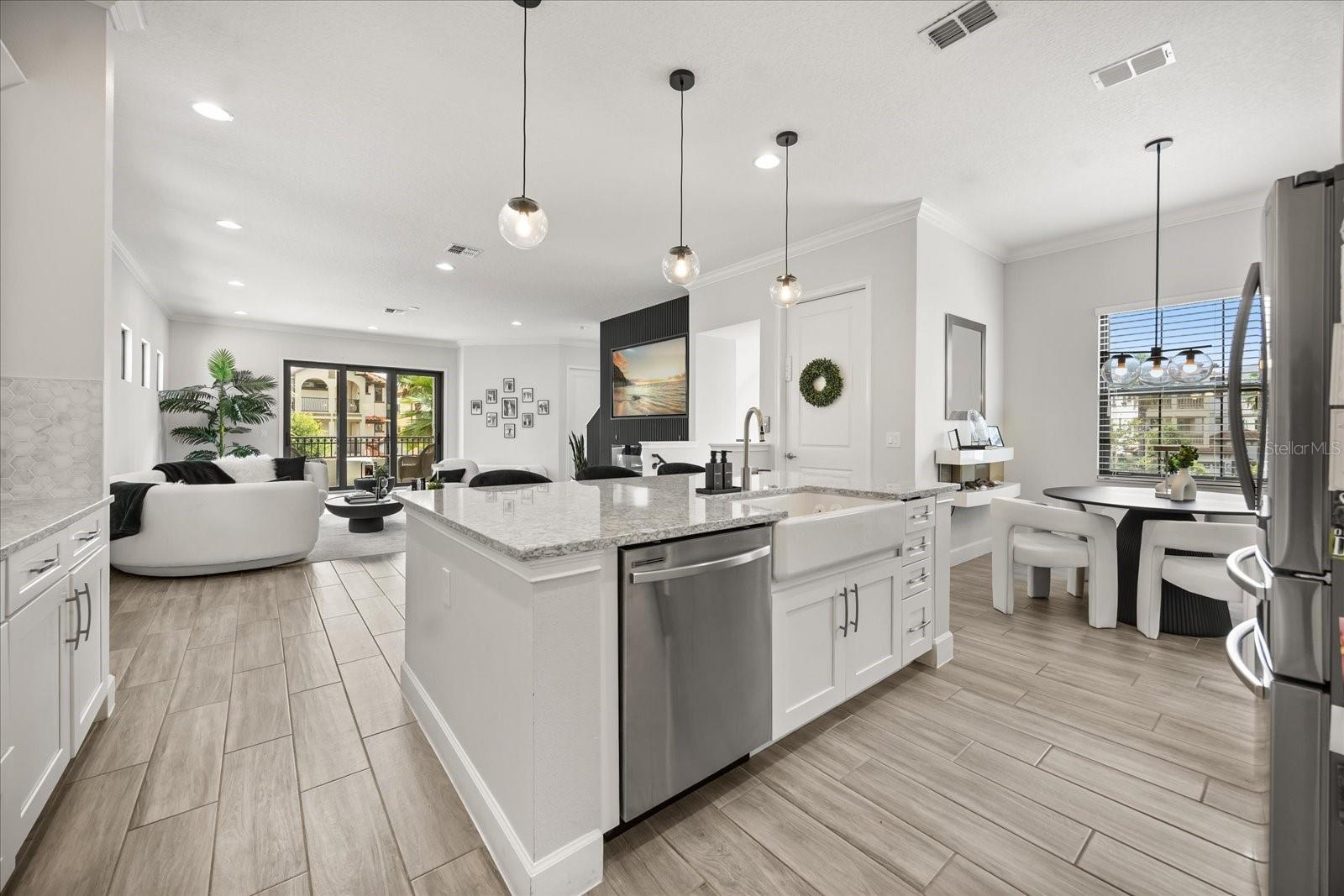 Espere ficar impressionado com esta impressionante casa de três andares em Lakeside, em Toscana, um condomínio fechado em Spring Lake, no desejável Dr. Phillips. O design de interiores reflete uma nova aparência contemporânea em seus recursos, acabamentos e tons de cores, e os pisos são conectados através de escadas e elevador privado. O principal espaço comum está no segundo andar e fornece fator uau a cada passo. Aqui, o seu espaço de cozinha/jantar no estilo gourmet está aberto para a sala de estar. A cozinha possui balcões de quartzo, bar de café da manhã, ilha, alcance de gás com preenchimento de panela, espaço abundante para armários/despensa, iluminação pendente impressionante, comem no recanto e um espaço de inverno mais formal projetado para acomodar uma multidão. Outras características notáveis neste nível: lareira elétrica, meio banho e varanda. O último andar inclui três dos quatro quartos. A suíte principal fica na frente, com uma vista da varanda de Spring Lake e um local para assistir a fogos de artifício do parque temático. Aqui você desfrutará de um luxuoso banheiro privativo com vaidade de pia dupla, banheira de imersão e chuveiro de grandes dimensões com várias cabeças de chuveiro. O piso térreo é projetado como um local de entretenimento secundário - uma grande sala grande com bar - flexível para organizar como você achar melhor. Há também um quarto e banheiro completo aqui - ideal para um hóspede, ou talvez o local perfeito para montar seu escritório. Outras características interiores notáveis: os contadores de quartzo também são encontrados nos banhos completos, lavanderia e áreas de bar molhado. A grande sala do térreo fornece acesso ao seu quintal. Aqui, você tem um elegante centro de entretenimento ao ar livre - espaço aberto e coberto de pátio que é ótimo para refeições, relaxantes, visualização de TV, reunindo -se em torno da fogueira e até mesmo fazendo um pouco de colocação! As árvores de cercas e bambu fornecem a privacidade que deseja ao se divertir ao sol. Ótima localização - os moradores de Toscana têm acesso ao seu pool comunitário e fitness center, e o paisagismo é resolvido para você. As escolas aqui são de melhor classificação. E você é apenas uma milha para i4, locais de compras essenciais e o conhecido "Restaurant Row" da área. Os amantes do parque temático também apreciarão a proximidade com os estúdios da Universal, Sea World e Disney. É o luxo que vive no seu melhor - venha ver tudo o que torna este lar tão especial.
