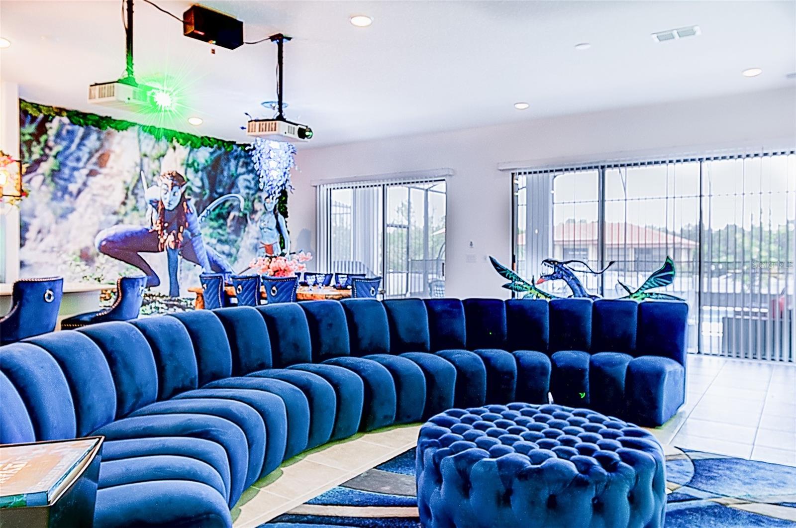Este é um retiro luxuoso e espaçoso, perfeito para grandes grupos - pesando uma piscina privada, quartos temáticos, locais de entretenimento, como salas de jogos e teatro, com acesso total a instalações comunitárias de luxo e a apenas alguns minutos dos destaques de Orlando. 10 quartos, 9 banheiros completos.