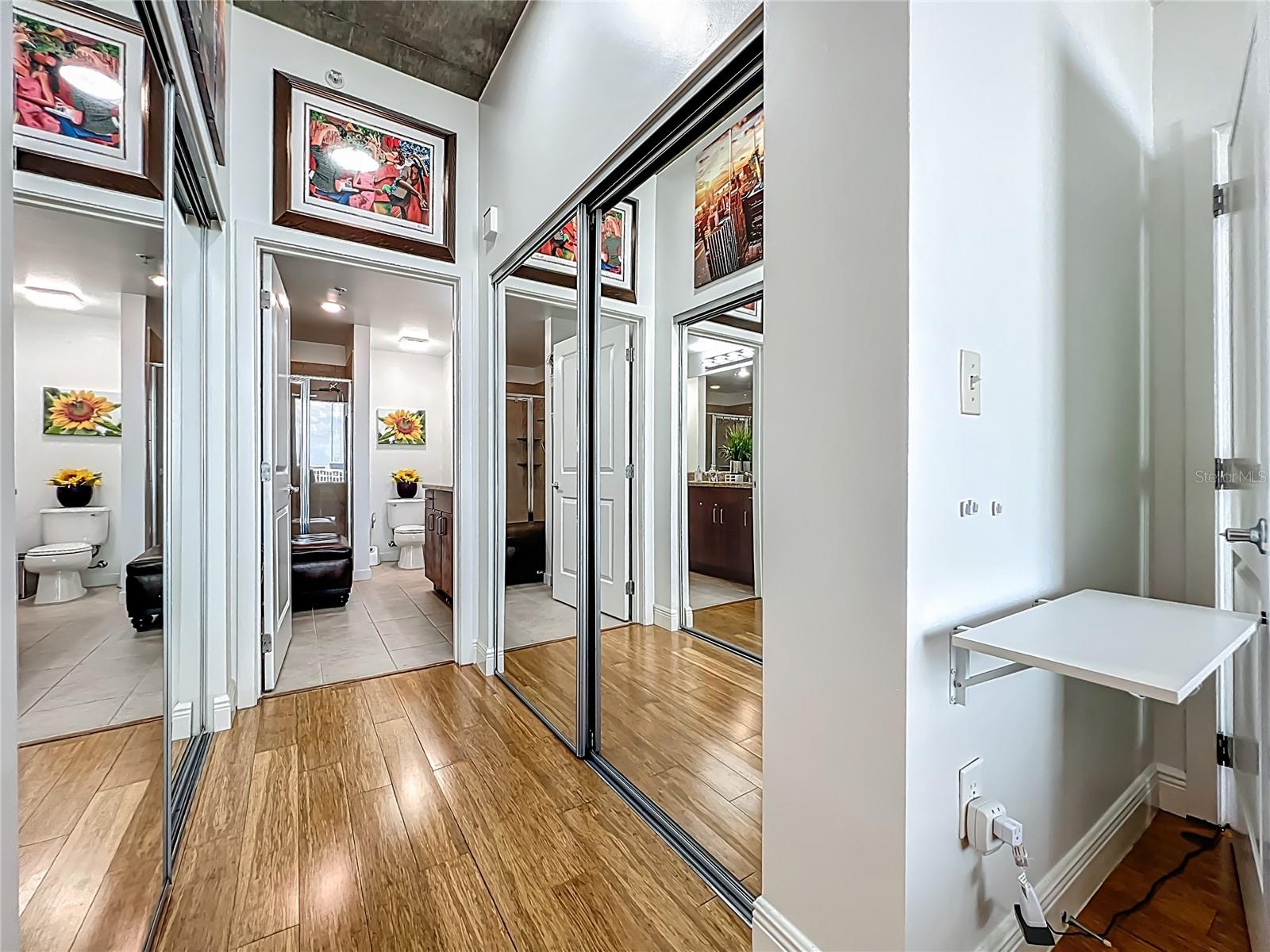 Bem-vindo ao arranha-céus de luxo que vive no Solaire no Plaza, localizado no coração vibrante do centro de Orlando. Este impressionante condomínio de 2 quartos e dois quartos e dois quartos oferece design moderno elegante com vistas de tirar o fôlego e desobstruídas do lago Eola e do horizonte do centro através de janelas do chão ao teto, janelas de impacto de furacões e tetos de concreto de estilo industrial e paredes de destaque que criam uma manutenção urbana. O interior apresenta muitas atualizações, incluindo tinta fresca por toda parte, atualizações elegantes de iluminação, incluindo iluminação pendente, lustre de sala de estar personalizada, ventiladores modernos de teto e iluminação elegante na cozinha e banheiros. Pisos de madeira nas principais áreas de estar e azulejos de cerâmica nos banheiros. Os espaçosos quartos apresentam inos personalizados nos armários. A cozinha gourmet inclui bancadas em granito, armários de madeira e eletrodomésticos. Há lavanderia separada com nova lavadora e secadora da Samsung. Termostato de ninho e umidificador de ar de coelho incluídos. O Solaire garantiu acesso ao edifício e também possui um lobby recém -reformado que inclui 24 horas. Segurança e Concierge. O nível de comodidade do Solaire está convenientemente localizado no 10º andar, com uma piscina na cobertura e um amplo center de fitness de última geração, residente (disponível para aluguel e eventos particulares). Como um bônus adicional, as unidades incluem dois lugares de estacionamento designados e cobertos convenientemente localizados no 9º andar. O HOA inclui: Internet de alta velocidade, cabo, controle de pragas e muito mais. Esta é uma localização privilegiada, a poucos passos da praça, você terá acesso imediato a um cinema, restaurantes e compras. Caminhe até o lago Eola, o Publix, o Dr. Phillips Center, o Kia Center, o estádio de futebol da cidade de Orlando e muito mais. Aproveite o mercado de fazendeiros de fim de semana, os cafés ecléticos e a vibrante vida noturna no centro de Orlando é conhecida. Esteja você procurando uma residência luxuosa em tempo integral ou um elegante retiro da cidade, este condomínio no Solaire oferece conveniência, conforto e sofisticação incomparáveis no coração de Orlando.