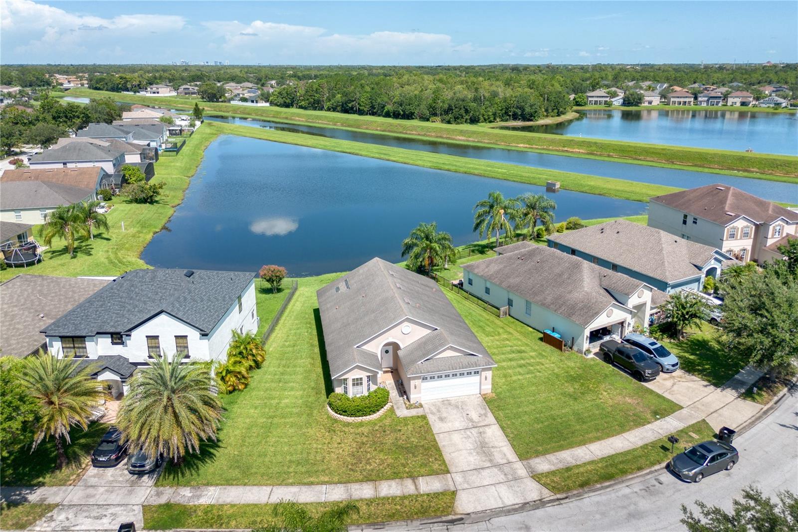 Lindamente mantido de 4 quartos, 2 banheiros, pronto para casa, com uma garagem de 2 carros, situada em um dos maiores lotes desta comunidade procurada! Esta casa de visão de água clara e brilhante apresenta uma planta de piso aberta com quartos com tetos abobadados e vistas deslumbrantes que oferecem pôr do sol de tirar o fôlego. O espaçoso quarto primário inclui um grande closet e muita luz natural. A cozinha e os banheiros apresentam ladrilhos de cerâmica, enquanto pisos laminados atualizados em todo o resto da casa, com apenas 2 anos de idade. O interior foi pintado recentemente, dando ao espaço uma sensação fresca e moderna. Destaques adicionais incluem bancadas de superfície sólidas, armários de madeira atualizados, persianas de furacões e cozinha para comer. A comunidade oferece ótimas comodidades, como uma piscina e playground, e a casa está idealmente localizada perto das principais rodovias, compras, UCF, cidade médica de Lake Nona e Aeroporto Internacional de Orlando. Conforto, conveniência e vistas panorâmicas se reúnem para tornar esta casa um imperdível!
