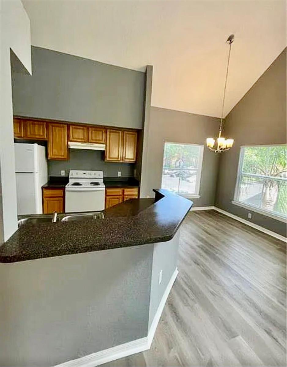 Descubra este condomínio lindamente mantido no primeiro andar de 2 quartos, localizado no condomínio fechado procurado das fontes da Metrowest. Esta casa oferece um layout aberto espaçoso, com uma grande sala de estar, uma cozinha bem equipada com pisos de azulejos de cerâmica e um grande covil versátil que pode ser usado como um terceiro quarto ou escritório em casa. A suíte primária possui seu próprio banheiro privativo com uma nova vaidade, iluminação moderna, combinação de banheira/chuveiro e um generoso closet. O segundo quarto também oferece um closet e acesso ao banheiro de hóspedes atualizado com novos acabamentos combinando. Desfrute de novos pisos de tábua de vinil de luxo em todas as principais áreas de estar e ventiladores de teto em todos os quartos para maior conforto. O condomínio também inclui uma área de lavanderia interna com uma lavadora e secadora em tamanho real. As comodidades comunitárias incluem uma piscina no estilo resort, clubhouse com Business Center e Fitness Room-todos os minutos de estúdios da Universal, compras, restaurantes e grandes rodovias.