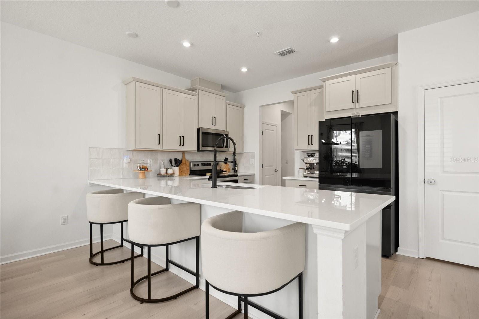 Bem-vindo ao 7744 Clove Hitch Way, um impressionante Townhome de 3 quartos e 2,5 banheiros na procurada comunidade de parques meridianos de Orlando, FL 32832. Construído em 2024 e abrange aproximadamente 1.659 pés quadrados, esta unidade de canto moderna oferece uma liga contemporânea com linhas limpas, acabamentos altos. Entre em um interior brilhante e arejado, com bancadas elegantes de quartzo, utensílios de aço inoxidável e acentos negros elegantes na cozinha gourmet - ideais para entretenimento ou vida diária. As espaçosas áreas de estar e jantar fluem perfeitamente, aprimoradas pela abundante luz natural, ventiladores de teto chiques e piso de tábuas de vinil de luxo em todo o nível principal. No andar de cima, descubra um espaço versátil no loft, três quartos generosos, incluindo uma luxuosa suíte do proprietário com banho de banheiro privativo e closet, além de banheiros adicionais bem equipados com acessórios modernos e arredores de azulejos. Como uma unidade de canto, desfrute de privacidade extra e um espaço ao ar livre maior com um pátio privado perfeito para relaxar, além de uma garagem de 2 carros traseira para maior conveniência. The vibrant Meridian Parks community elevates your lifestyle with a resort-style amenity center featuring a one of a kind pool with a splash park for the kiddos, state-of-the-art fitness center, yoga lawn, amphitheater for events, playground, dog park (Paw Park), event lawn with firepit, outdoor art installations, multiple parks and green spaces, walking trails, and a bike share program. Localizada em vibrante Orlando, você está a minutos das escolas de compras, restaurantes e de primeira linha de Lake Nona, com o bônus adicional de proximidade à escola de inovação-ideal para as famílias. Não perca esta propriedade excepcional no mercado em expansão de Orlando - opções como essa não durarão muito, então agende sua exibição particular hoje!