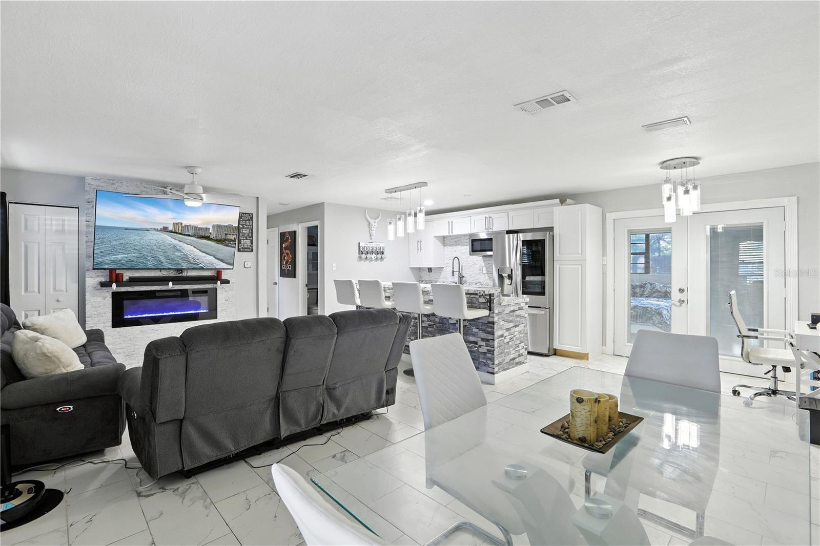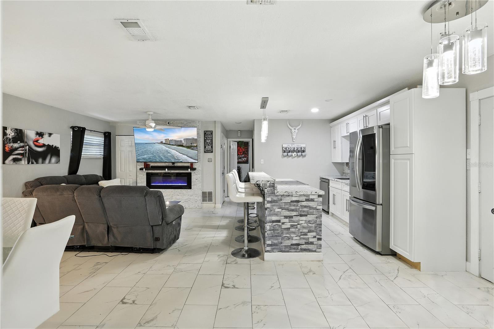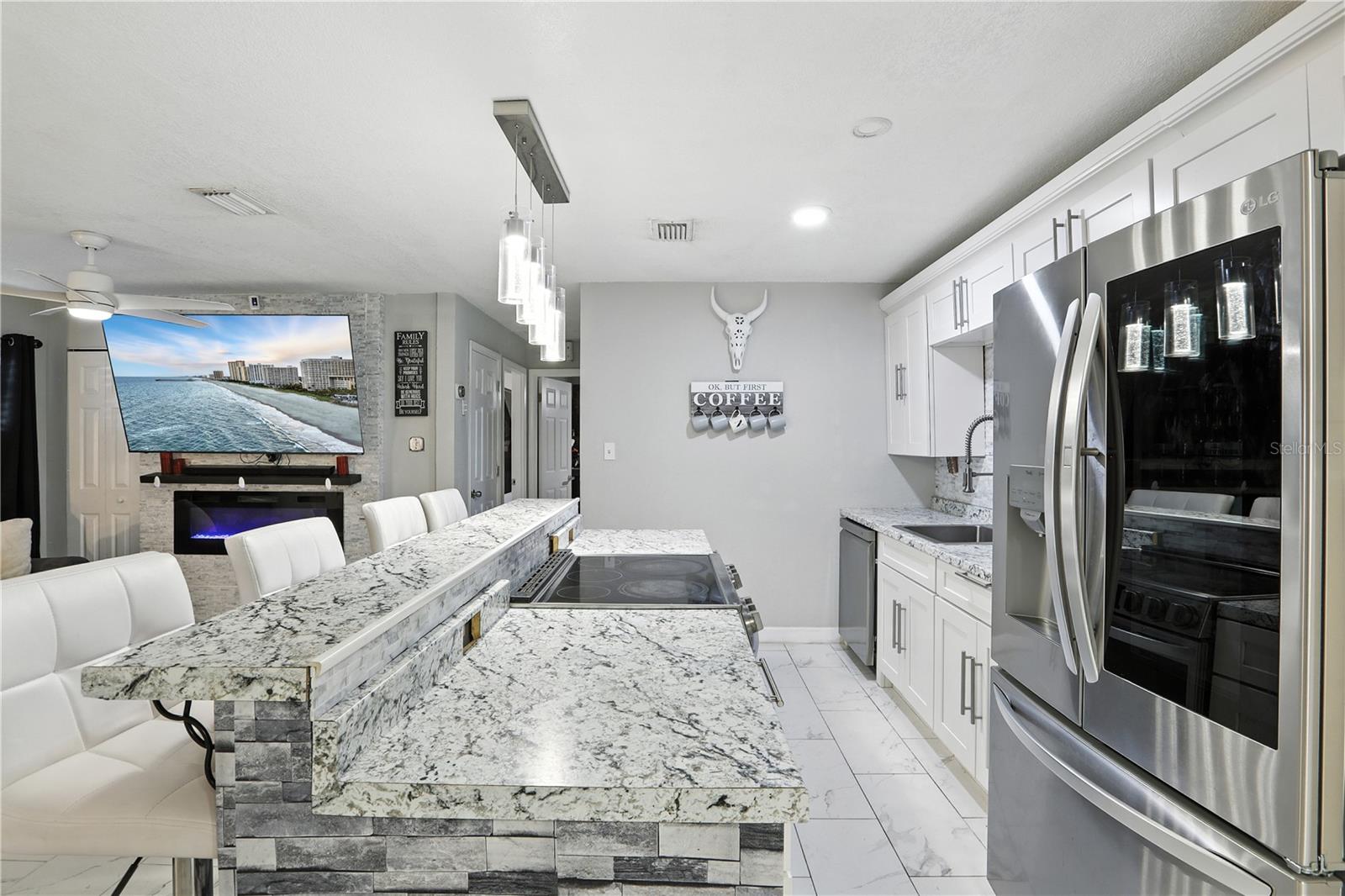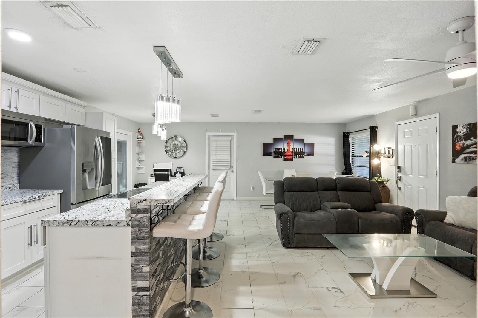 Bem -vindo ao Your Dream Lake View Home, no coração de East Orlando! A apenas 8 minutos do Aeroporto Internacional de Orlando, esta residência lindamente renovada de 4 quartos e três banheiros oferece a mistura perfeita de conforto e estilo. Entre para descobrir uma planta baixa adornada com elegantes pisos de azulejos de mármore que fluem perfeitamente por toda a vida. A cozinha gourmet apresenta uma ilha de pedra deslumbrante com bancadas combinando, utensílios de aço inoxidável e uma encantadora pia de estilo de fazenda com uma torneira de água atualizada. A convidativa sala de estar possui uma lareira elegante emoldurada por um chique de backsplash de pedra, criando um ambiente aconchegante para reuniões. A suíte primária é um verdadeiro retiro, com uma porta rústica no estilo de celeiro que leva a um banheiro luxuoso com uma vaidade dupla. Desfrute de fácil acesso à brisa cintilante pela porta deslizante, tornando a vida ao ar livre. O segundo quarto principal oferece um banheiro privativo e sua própria porta de vidro deslizante para a piscina, proporcionando privacidade e conveniência. O quarto quarto está equipado com sua própria unidade de parede CA, garantindo o conforto o ano todo. Em toda a casa, as luzes LED elegantes iluminam o espaço e os armários personalizados fornecem amplas soluções de armazenamento. A área de lavanderia interna, convenientemente localizada no armário da concessionária, aumenta a funcionalidade da casa. Saia para o seu amplo oásis do quintal, onde se aguardam as vistas deslumbrantes do lago e uma piscina privada. Com muito espaço para o pátio, esta área ao ar livre é perfeita para relaxar, divertir ou desfrutar do pôr do sol sereno sobre a água. Localizado a poucos minutos das principais rodovias, compras e restaurantes, esta casa oferece tranquilidade e conveniência. Não perca esta oportunidade excepcional de possuir uma fatia do paraíso em East Orlando!