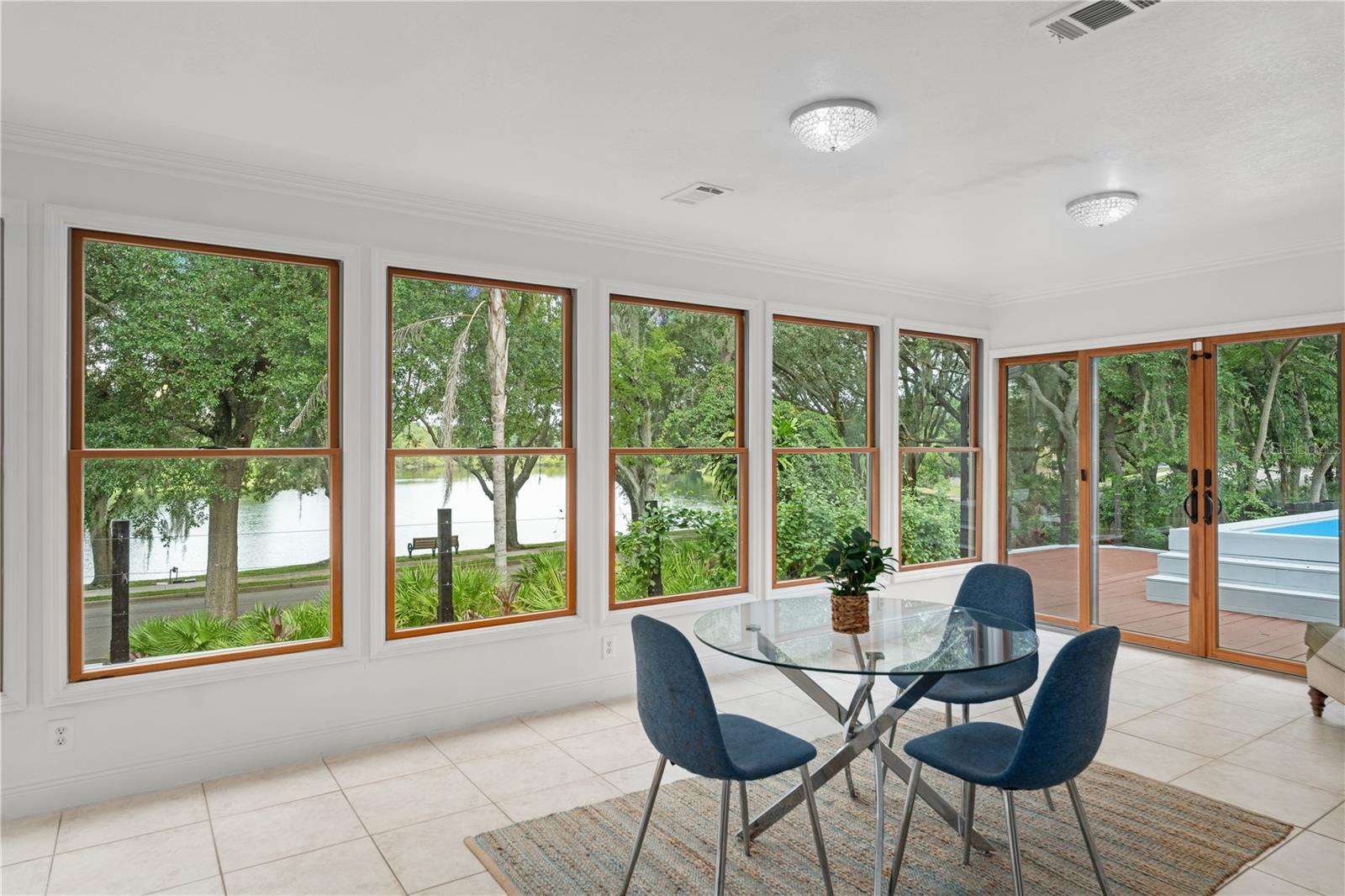 As vistas para a água abundam nesta casa chique, luminosa e encantadora em Winderlakes. A casa fica situada acima de um lago pitoresco e tranquilo situado na muito procurada área de Dr. Phillips. Escondida em uma rua sem saída tranquila, a residência combina elegância moderna com charme atemporal, com paredes de ripas de madeira natural, janelas grandes, espaços generosos e uma planta aberta. A sala de estar e a sala de jantar oferecem uma entrada acolhedora e preparam o cenário para receber reuniões de qualquer tamanho. A cozinha moderna tem uma vista perfeita para o lago, acrescentando um toque de conforto na confecção de qualquer refeição. A cozinha também possui eletrodomésticos de aço inoxidável, bancadas de granito, armários personalizados e balcão para café da manhã. A sala familiar é acentuada por claraboias duplas, uma lareira de tijolos, um elegante lustre dourado - além de piso de cerâmica fluindo perfeitamente para uma marquise que oferece uma abundância de espaço cheio de sol. Aproveite o ar livre em seu deck envolvente de grandes dimensões. As atualizações práticas incluem uma unidade CA de 5 toneladas com um ano de uso, isolamento adicional, encanamento PEX, um aquecedor de água sem tanque e disjuntores Square D de última geração com um painel de serviço de 200 A. Localizado nas proximidades da escola STEM K-8 Windy Ridge de primeira linha. A combinação perfeita de uma localização ideal, um condomínio procurado e uma casa refinada – tudo maravilhosamente embalado para criar memórias para uma vida inteira. ** A casa possui uma minipiscina no deck que está operacional ou será removida pelo vendedor mediante solicitação e preço integral ou oferta aceitável. **