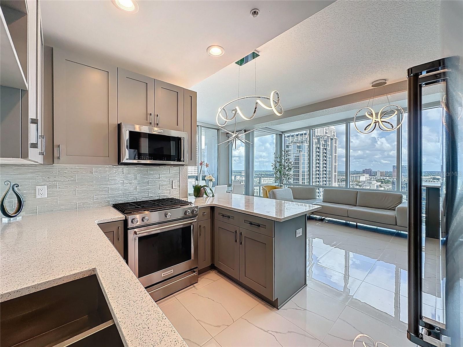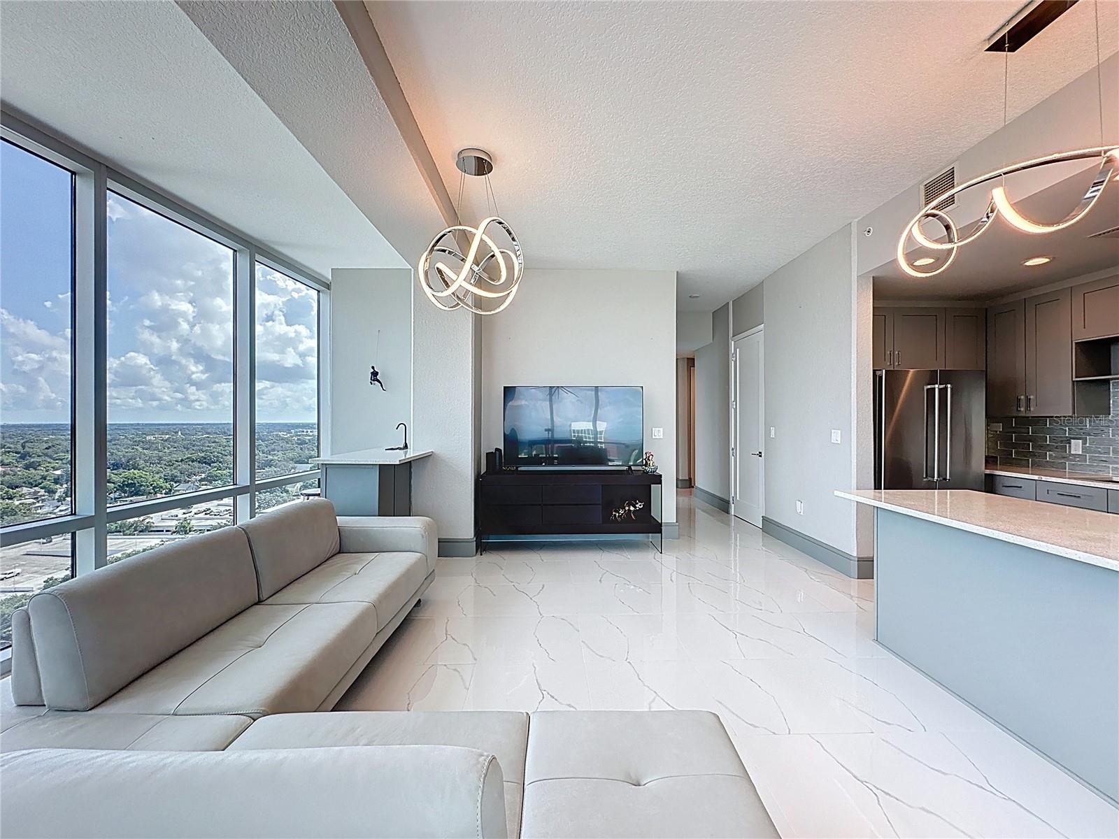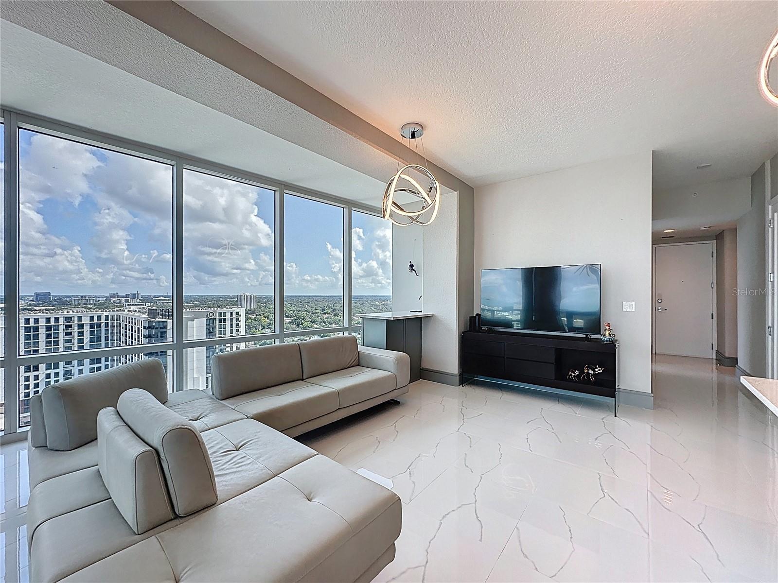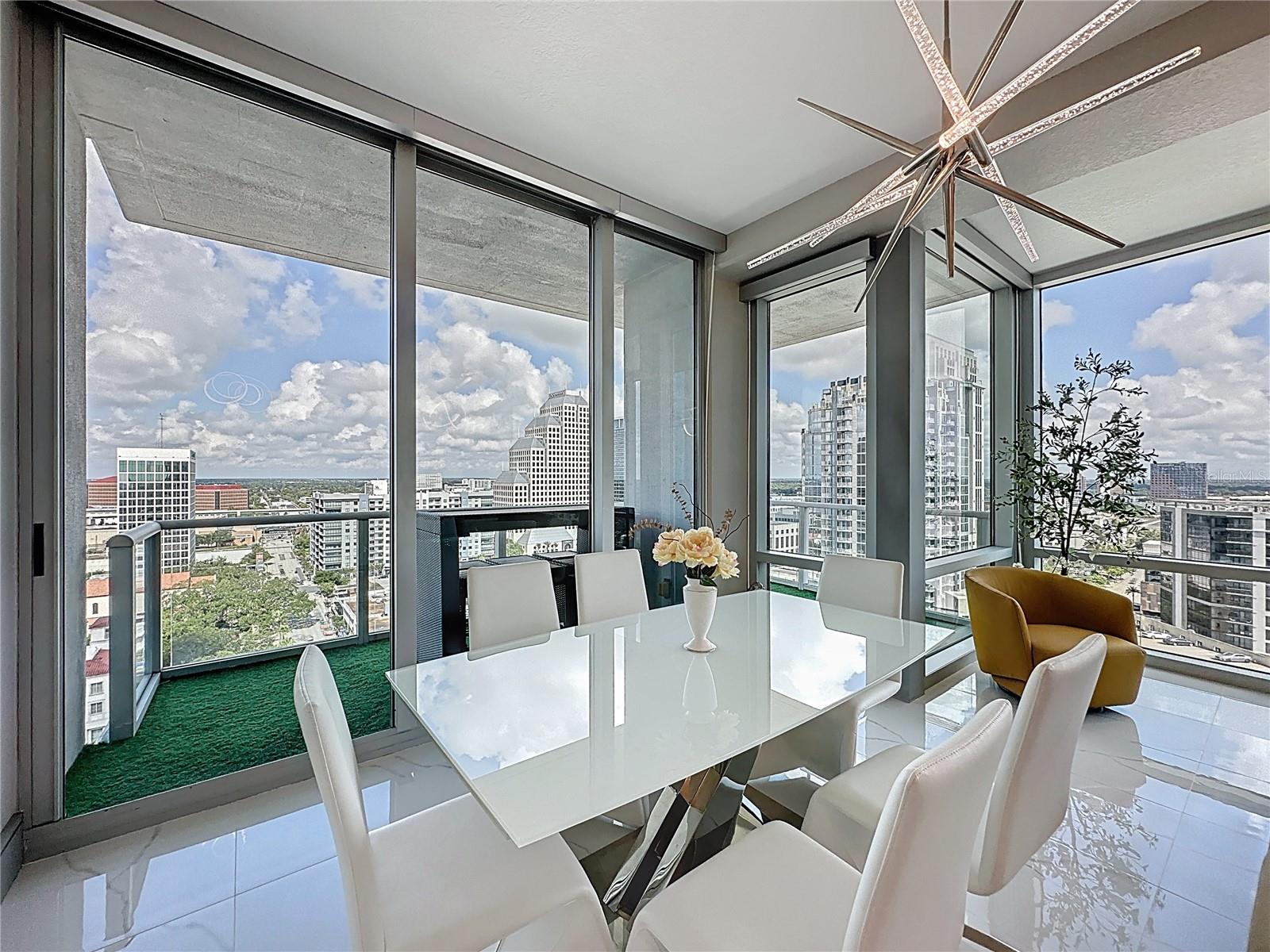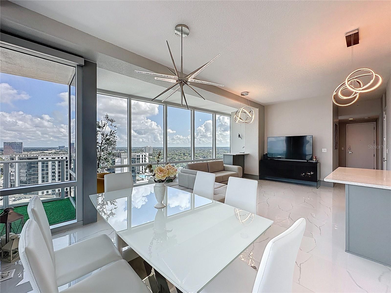 UNIDADE DE CANTO @ THE VUE NO LAKE EOLA DOWNTOWN ORLANDO'S PREMIER HIGH-RISE. Esta unidade no The Vue tem 1.282 pés quadrados de Luxuy | Downtown Orlando Vivendo no seu melhor.... As unidades CORNER raramente estão disponíveis e são muito procuradas neste luxuoso arranha-céu de última geração. Bem-vindo a esta unidade de canto totalmente remodelada e iluminada com 2 camas e 2 banheiros no lado desejável do centro de Orlando. Com vistas deslumbrantes e desobstruídas da bela cidade, esta residência dispõe de janelas altas do chão ao teto em todos os quartos que inundam o espaço com luz natural e emolduram o horizonte como uma obra de arte que mostra o centro de Orlando como nenhum outro edifício consegue. Impressione seus convidados desde o momento em que você entra no lobby do Vue e sobe até o 16º andar. Entre na Unidade #1612 para encontrar pisos de mármore branco brilhantes por toda parte, estabelecendo um tom elegante e luxuoso que permeia cada centímetro desta beleza elegante totalmente remodelada. A cozinha de conceito aberto foi completamente atualizada com novos eletrodomésticos de aço inoxidável, fogão a gás e acabamentos de design, perfeitos para cozinhar e se divertir com estilo. A suíte principal inclui closets duplos personalizados e um banheiro privativo inspirado em spa com atualizações modernas e janelas do chão ao teto que inundam o espaço com luz natural. Cada centímetro deste espaço foi cuidadosamente renovado para oferecer elegância, conforto e funcionalidade, incluindo persianas eletrônicas na área de estar para obter tanta ou pouca luz conforme desejado. Desfrute de comodidades exclusivas do edifício incomparáveis no centro de Orlando, incluindo concierge 24 horas, academia de ginástica de última geração, piscina estilo resort, quadras de tênis/pickles e estacionamento com manobrista exclusivo com 2 vagas reservadas na garagem segura. Aproveite os melhores restaurantes, a vida noturna e as atrações culturais, além de tudo o mais que o Lago Eola e o centro de Orlando têm a oferecer, incluindo o Sunday Farmers Market, que pode ser percorrido a pé. Esta é uma oportunidade imperdível para quem procura uma vida urbana sofisticada com uma vista incrível do Vue no Lago Eola. Agende hoje mesmo seu tour privado e apaixone-se instantaneamente.