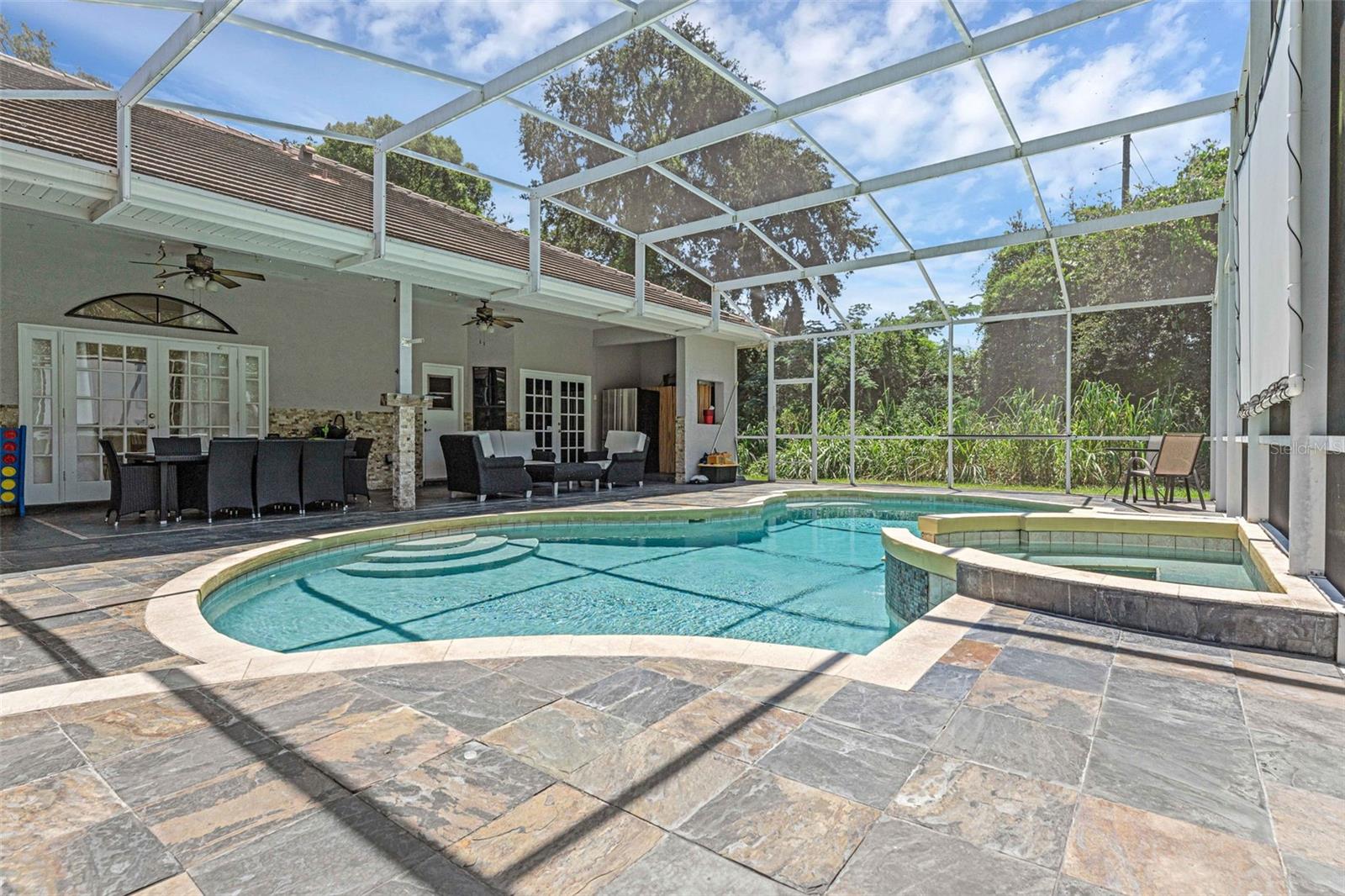 ** Melhoria importante dos preços- não perca esta oportunidade! ** Bem-vindo a esta casa de 4 quartos de 4 quartos e 3 banheiros, situada em um lote de 0,73 acres. Este é realmente um paraíso para os candidatos domésticos, sem o HOA, uma garagem prolongada que antecedeu a casa em quase um lote de hectares. Passe pelas portas de entrada dupla e seja recebido pela planta aberta, na qual a sala de jantar flui perfeitamente para a sala de estar. Os tetos da bandeja podem ser encontrados na sala de estar, acrescentando um toque luxuoso e portas francesas levam ao pátio traseiro. Paredes lambeiras e um lustre elegante adicionam os retoques finais à sala de jantar. Ao entrar na área da sala da família, você notará uma ampla iluminação natural por toda parte e uma bela lareira. Fora da sala, entre no recanto do café da manhã e na cozinha de última geração, com utensílios de aço inoxidável, bancadas em granito com backsplash de lajes e uma ilha de cozinha. A planta baixa cria um retiro privado, com a suíte primária separada dos outros quartos e banheiros. A suíte primária apresenta portas francesas particulares que levam ao pátio traseiro e a um banheiro privativo anexado com armários, pias duplas, um armário de rega privado e um belo chuveiro. Além disso, você encontrará 3 quartos e 2 banheiros completos do outro lado da casa. A suíte do sogro anexada é perfeita para os hóspedes, a vida multigeracional ou o que quer que atenda às necessidades de sua família. Dentro do estúdio de sogros, fica um espaço na sala de estar, quarto privado, banheiro completo com chuveiro e uma cozinha compacta equipada com uma geladeira de aço inoxidável, fogão e fã de exaustão. Saia para o seu oásis externo privado e comece a desfrutar da vida na Flórida. O pátio mostra um lanai externo estendido com ventiladores de teto, uma piscina e spa ao ar livre com nova bomba de piscina e aquecedor de piscina elétrica, pavimentador de travertino deslumbrante e um gabinete de tela ao redor da piscina. Fora do gabinete da tela, desfrute de um espaço adicional pavimentado, perfeito para entretenimento. Este é um achado raro, então agende uma exibição particular hoje e faça desta casa sua casa para sempre! Telhado- 5 anos; novo aquecedor de água sem tanque; unidade HVAC- 2021; Nova bomba de piscina, novo aquecedor de piscina elétrica.