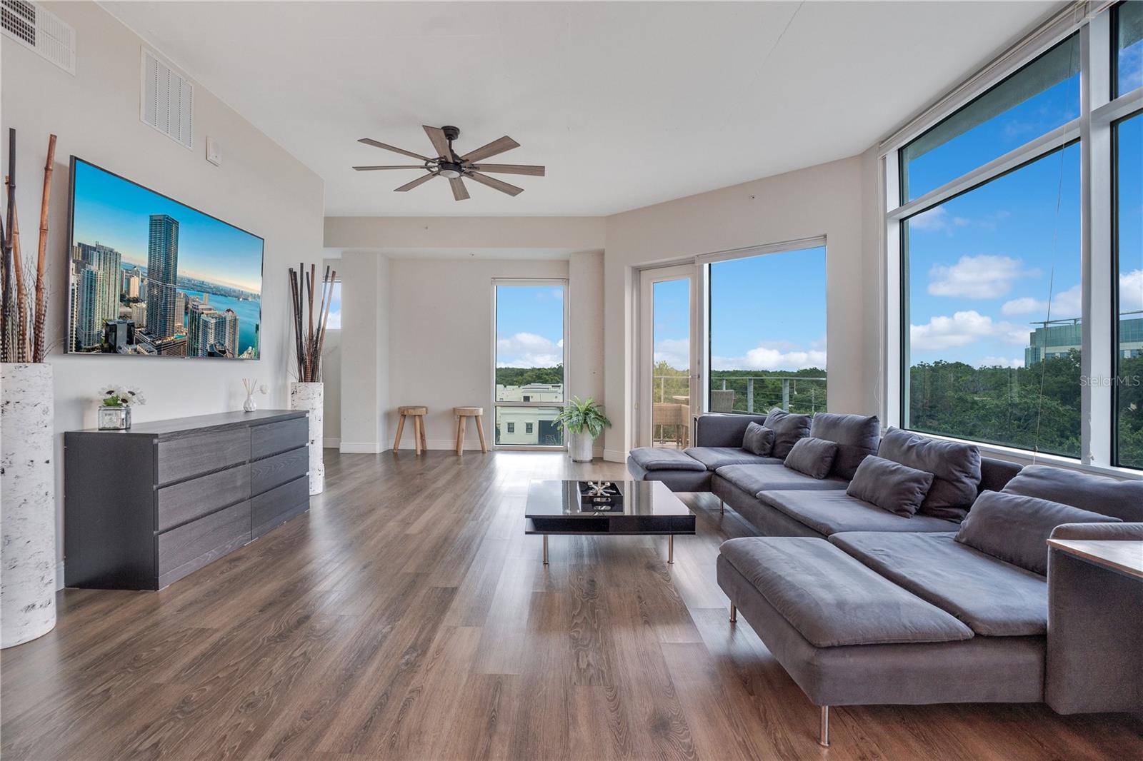 O espaçoso condomínio de 4 quartos e 2 banheiros no coração do centro de Orlando com um dos melhores valores da região. Localizado a apenas três quarteirões do lago Eola e a uma curta distância do Thornton Park, Dr. Phillips Performing Arts Center e intermináveis refeições, compras e vida noturna. No interior, você encontrará tetos altos, pisos laminados por toda parte e uma área de estar de conceito aberto com uma parede completa de janelas trazendo luz natural. Entre em sua varanda privada para obter grandes vistas da cidade. A cozinha oferece balcões de granito, armários de cerejeira, iluminação pendente e embutida e muito espaço de preparação. A suíte primária é superdimensionada com janelas do chão ao teto, enquanto o banho de suíte inclui pias duplas, bancadas em granito e um grande chuveiro de vidro. O segundo quarto é generoso e perfeito para os hóspedes, um escritório em casa ou espaço flexível. Desfrute de estacionamento protegido e coberto em dois níveis com espaços designados, além de comodidades na cobertura, incluindo uma churrasqueira e vistas deslumbrantes da fonte do lago Eola. A vida no centro não fica melhor do que isso - tudo a poucos passos do melhor de Orlando.