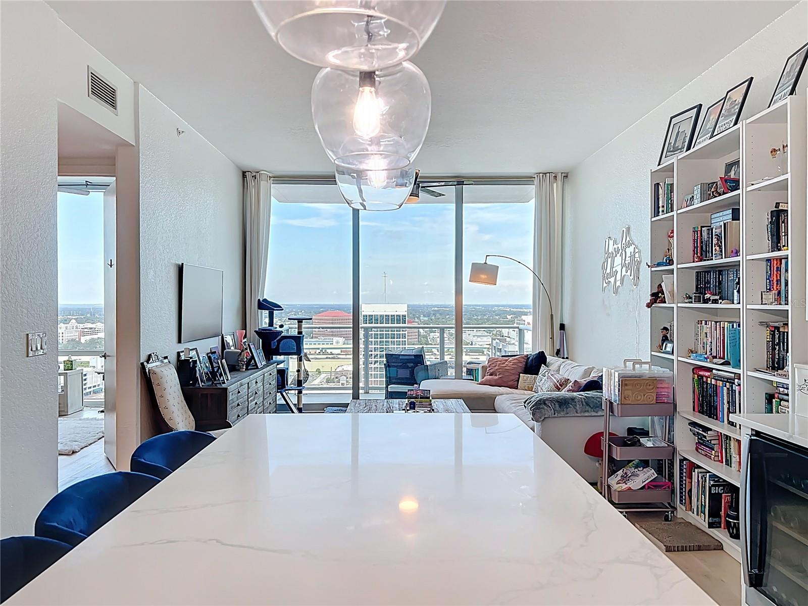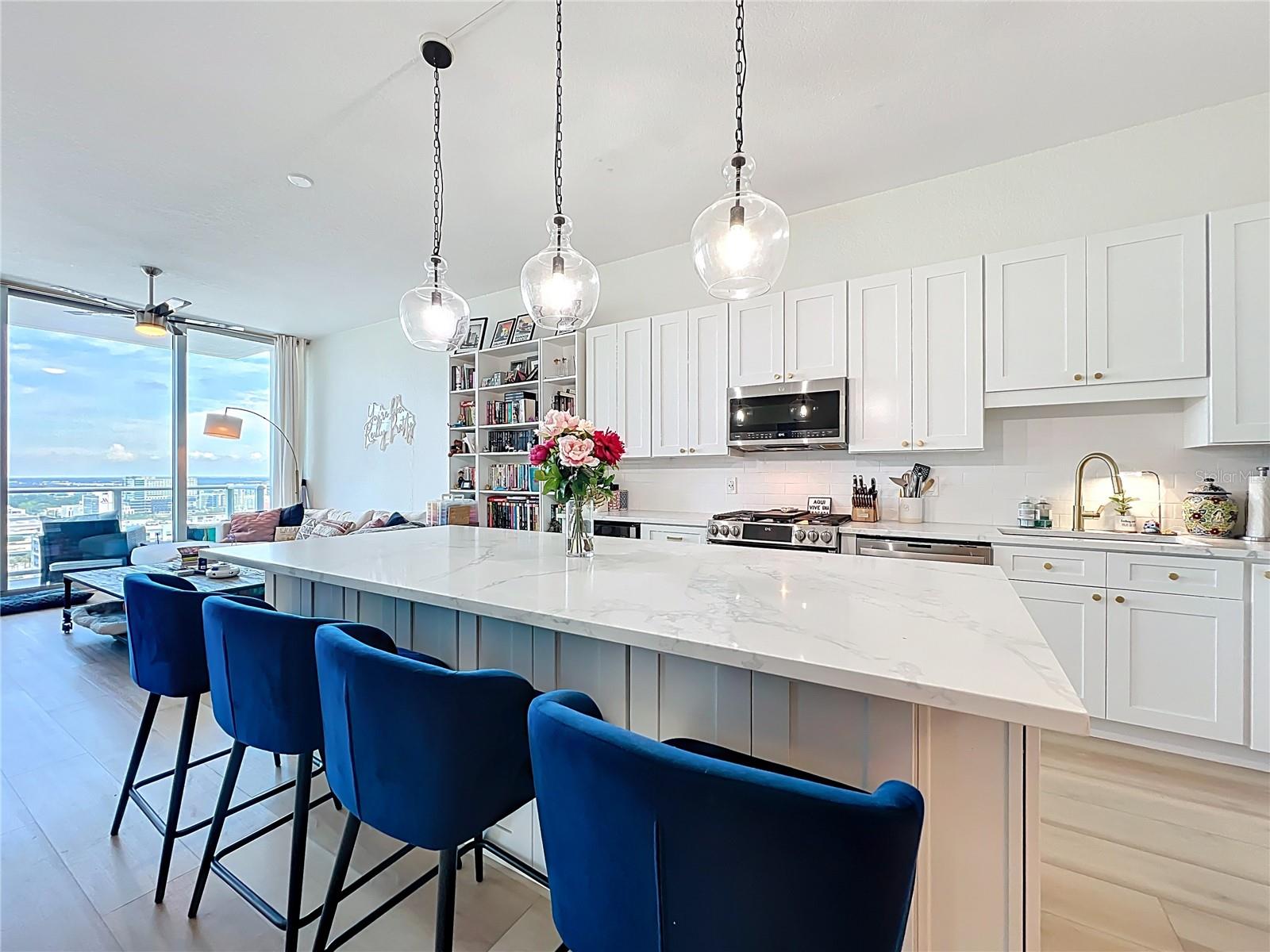 Bem-vindo ao The Vue at Lake Eola, o principal arranha-céu de luxo do centro de Orlando. Esta residência atualizada é uma das RARAS PLANTAS do edifício, com janelas do chão ao teto em ambos os quartos, inundando a casa com luz natural e oferecendo vistas deslumbrantes da cidade. A unidade também inclui duas vagas de estacionamento premium no 4º andar (transferíveis individualmente e avaliadas em US$ 40–50 mil cada), juntamente com uma unidade de armazenamento no primeiro andar. No interior, a casa foi cuidadosamente atualizada com eletrodomésticos GE Profile de última geração, refrigerador de vinho, forno e lavadora/secadora com Wi-Fi e recursos de casa inteligente, incluindo termostato Nest e fechadura eletrônica Level. Os destaques adicionais incluem duas varandas privadas, armários personalizados nos quartos, uma banheira de imersão semelhante a um spa e uma ilha de cozinha estendida com armazenamento adicional - recursos que realmente diferenciam esta residência. O estudo da reserva estrutural já foi concluído e totalmente financiado, sem previsão de avaliação especial futura, e o HOA está bem financiado. A taxa HOA inclui uma gama excepcional de comodidades e serviços, como segurança 24 horas, manutenção externa de edifícios e terrenos, reparos, gerenciamento no local, serviço de lixo e manutenção de áreas comuns. Também incluído, os residentes têm acesso a um deck de comodidades de 30.000 pés quadrados com piscina olímpica júnior aquecida com cabanas, um dos maiores centros de fitness privados do centro da cidade, quadras de tênis e basquete, estúdio de ioga, salas de teatro/mídia, cyber café, parque para cães, clubhouse, piscina comunitária, calçadas e o exclusivo Club Vue Lounge. As conveniências adicionais incluem serviço de manobrista completo (o único edifício no centro da cidade que oferece isso), serviço de concierge, estações de carregamento de veículos elétricos, área de lavagem de carros, caixas de correio comunitárias e vários espaços para refeições e churrasqueiras ao ar livre. Localizada a poucos passos do Lago Eola, Publix, cafeterias, restaurantes e do Sunday Farmers Market, esta planta baixa rara combina atualizações modernas, finanças sólidas, comodidades de luxo e um estilo de vida imbatível no centro da cidade.