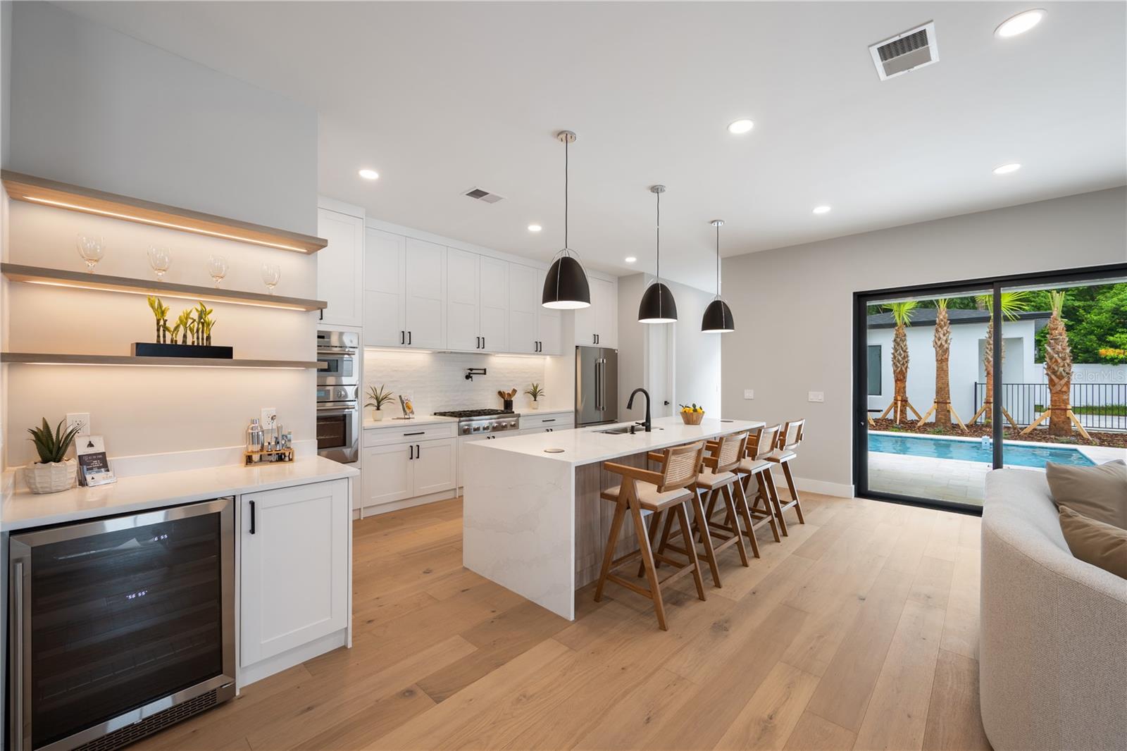 A requintada nova residência de construção do estimado construtor Luih Homes, onde o design atemporal encontra sofisticação moderna no coração do distrito de SoDo, altamente procurado de Orlando. Esta casa requintada oferece mais de 3.600 pés quadrados de espaço cuidadosamente com curadoria, mostrando artesanato impecável e acabamentos elevados por toda parte. A partir do momento em que você chega, você é recebido com vistas pitorescas do lago da frente da casa, dando o tom para esta impressionante casa. Entre para descobrir tetos altos, pisos de madeira projetados e um amplo layout de conceito aberto que combina perfeitamente com conforto e estilo. A Kitchen do Chef de Designer é uma peça de exibição, com armários personalizados, bancadas de quartzo de borda em cascata e um conjunto completo de eletrodomésticos premium, perfeitos para reuniões íntimas e grande entretenimento. No andar de cima, um loft versátil oferece espaço de vida adicional ideal para uma sala de mídia, sala de jogos ou escritório em casa. A luxuosa suíte primária é um santuário sereno, completo com um banho inspirado em spa, com uma banheira de imersão independente, um chuveiro de grande porte, vanidades duplas e armários espaçosos de seus e hers. Ao ar livre, desfrute de um oásis de quintal de tamanho generoso ancorado por uma piscina elegante e pátio encharcado de sol, oferecendo amplo espaço para relaxar, jantar e divertir. Uma garagem destacada aprimora a função e o charme, enquanto o paisagismo maduro adiciona uma camada de privacidade e refinamento. Idealmente localizada a poucos minutos do centro de Orlando, para as principais escolas de compras, restaurantes e de primeira linha, esta casa excepcional oferece a fusão perfeita de luxo, localização e habitabilidade.