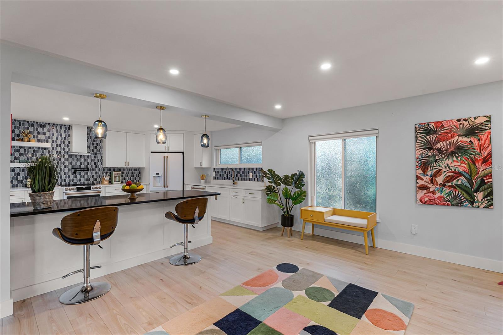 Imagine voltar para casa todos os dias a esta obra-prima atemporal de meados do século e chamá-la de sua ... bem, agora você pode. A 940 Alba Drive, localizada em uma pitoresca rua arborizada em um dos bairros mais procurados de Orlando, agora pode ser seu. Convenientemente posicionado na esquina de Alba e Westmoreland com não uma, mas duas calçadas, essa combinação de linhas arquitetônicas simples e paisagismo maduro são iguais à mistura perfeita de sofisticação e construção moderna. Once you're past the pavered driveway and across the threshold, you are immediately immersed within the stunning updates that are seen from every corner, beginning with new white oak flooring, quartz countertops, 42" cabinets and complemented by GE Cafe appliances. An oversized living room with wood burning fireplace is adjacent to a dedicated dining space, and all surrounded by colossal sized windows and sliding glass doors, that allow natural light to beam in from Cada canto do momento, quando o sol nasce. e acesso a mais um banheiro completo bem atualizado, tornando este o terceiro banheiro completo da casa. Se você gosta de entreter e ser o "objetivo" de férias e encontros familiares, será a nova inveja do seu círculo. Um pátio central de tamanho substancial é o ponto focal do quintal, que pode ser visto de várias áreas do interior da casa, e seria o cenário por excelência para qualquer um desses eventos, e imagine desfrutar de um de seus cappuccinos matinais ou cabernets noturnos com as luzes do chá. Avise suas habilidades de hospedagem e você pode até "vestir seu chapéu de chefs" enquanto faz pizza em seu próprio forno externo original. Sem hoa | Zero tapete | AT&T Fiber conectado | Sistema de filtração de água | Aquecedor de HVAC e água mais recente | Filtros de folhas em calhas | Carregador de EV na garagem | Armário embutido no quarto primário | Todos os novos dutos | Você não merece entrar em uma casa como esta todos os dias?